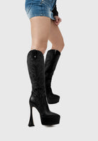 SALOON Nero – Stivali stile western plateau a punta tacco alto