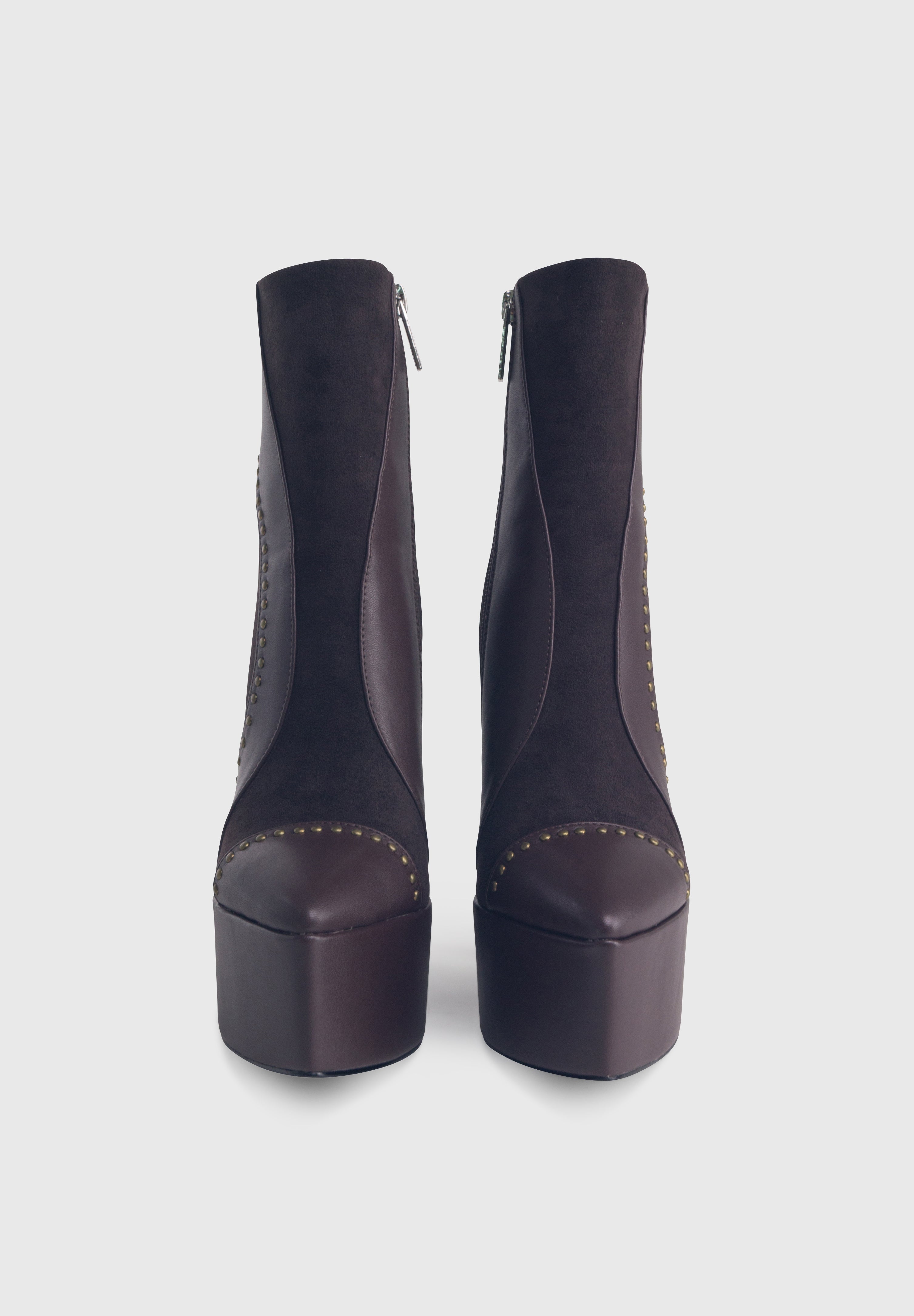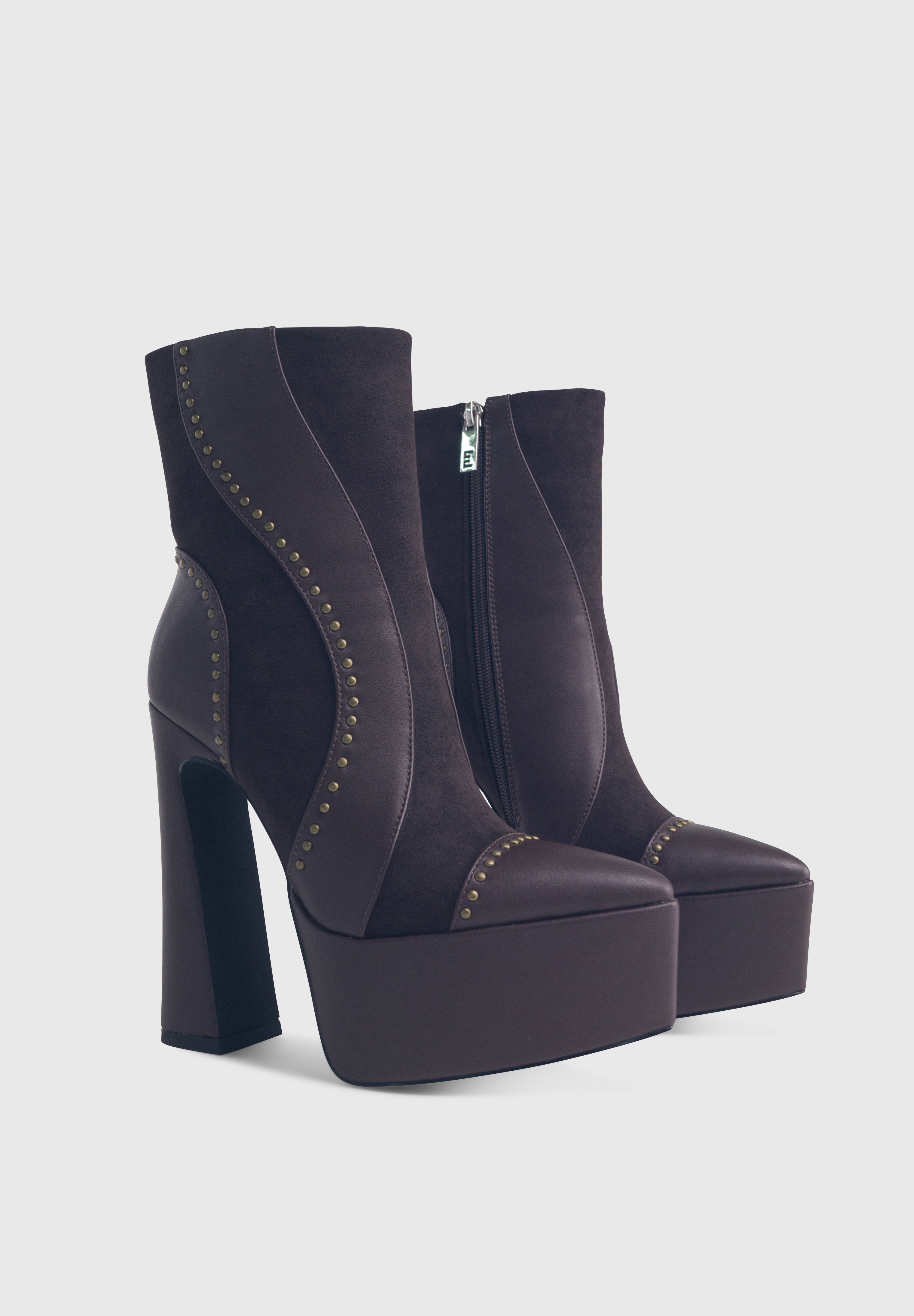 AMBER Marrone Cioccolato - Stivaletti alla caviglia plateau alto tacco largo borchie
