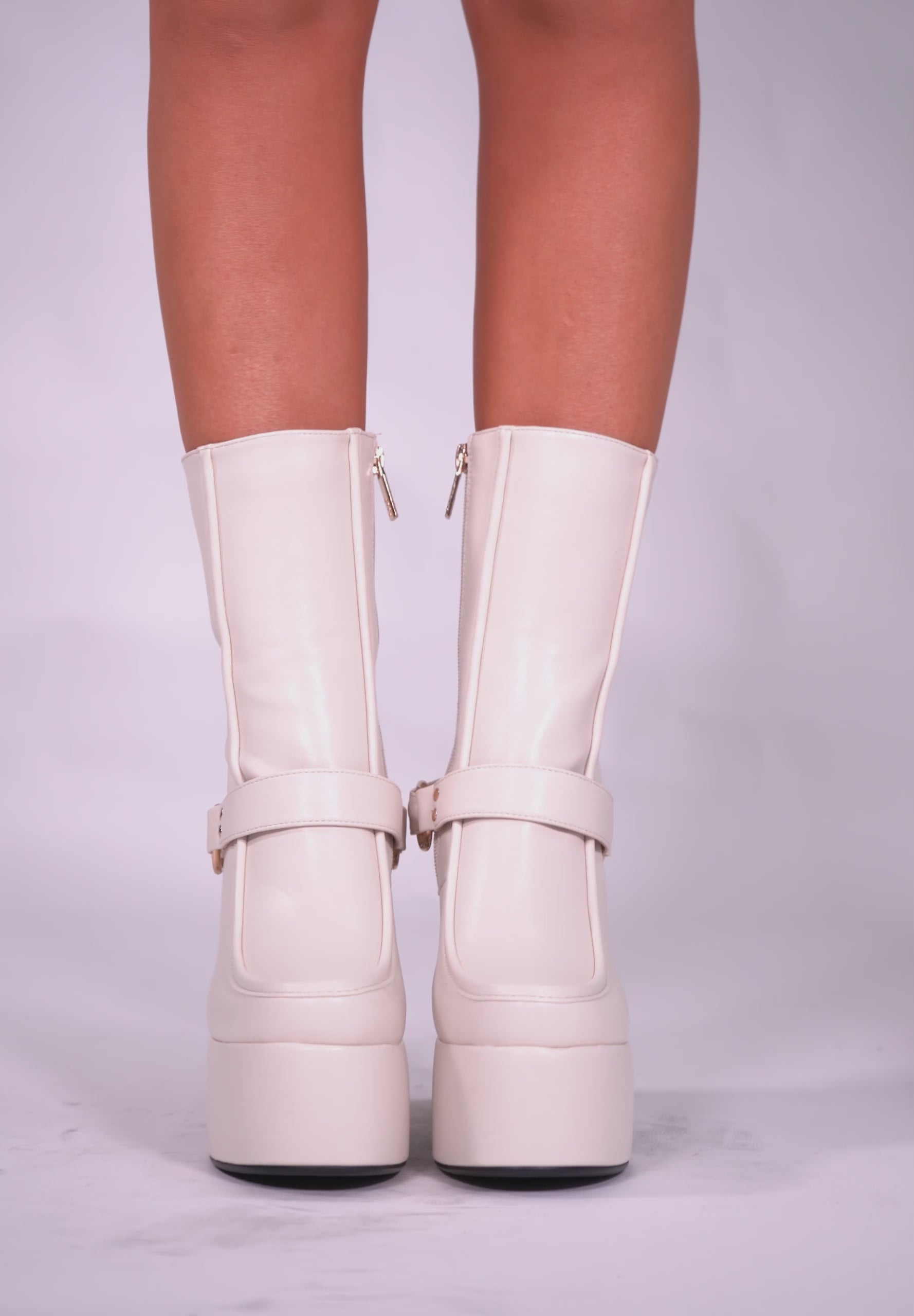 ECLIPSE Bianco - Stivaletti al polpaccio plateau alto similpelle