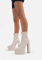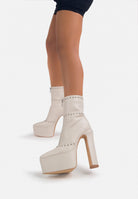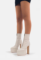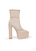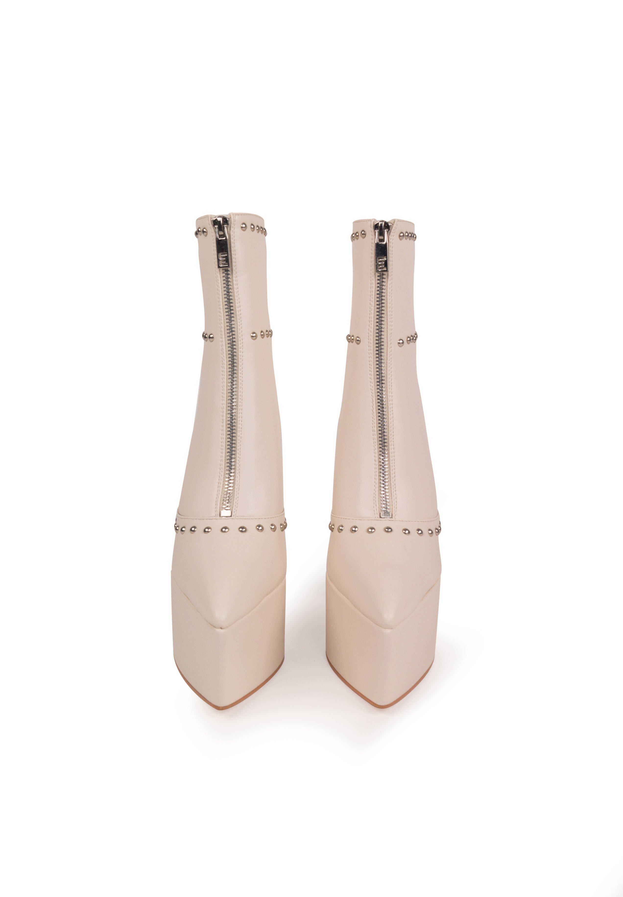 KENDRA Bianco Crema - Stivali tacchi alti plateau a punta con borchie