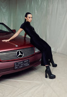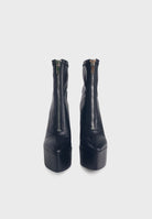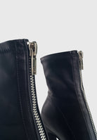 Il plateau alto e il tacco largo e angolare, già protagonisti nei nostri modelli di punta, offrono stabilità e un look deciso. La tomaia in similpelle vegana elasticizzata avvolge la caviglia, mentre la cerniera centrale logata aggiunge un dettaglio distintivo e pratico. Questi stivaletti sono ideali per creare outfit casual con un twist contemporaneo e grintoso.