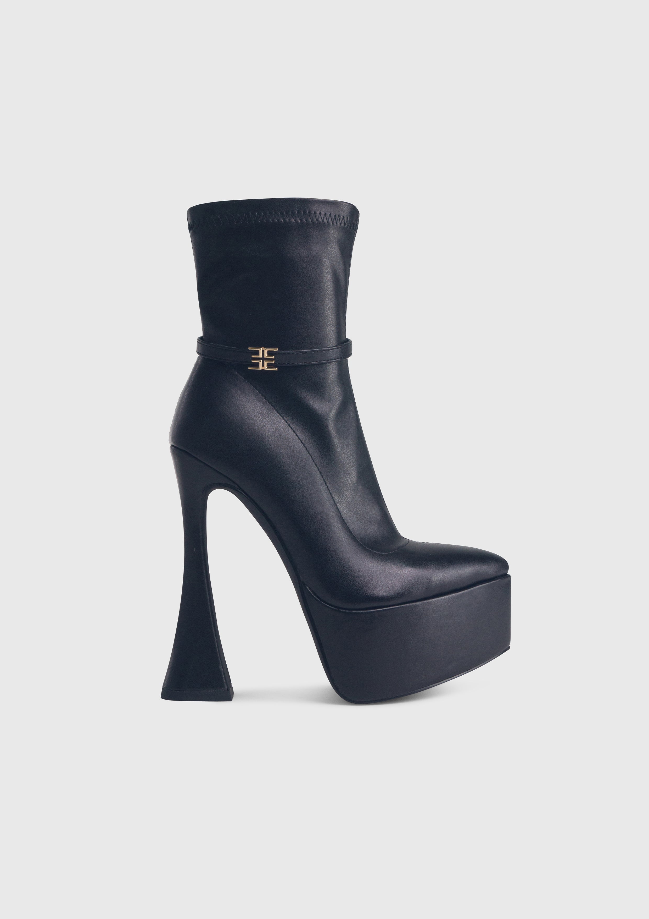 Ophelia, il nostro stivaletto plateau elasticizzato a punta con tacco sottile a clessidra dal design elegante e contemporaneo. Un equilibrio perfetto tra stile ricercato e linee sinuose.