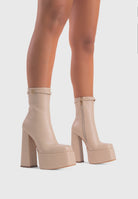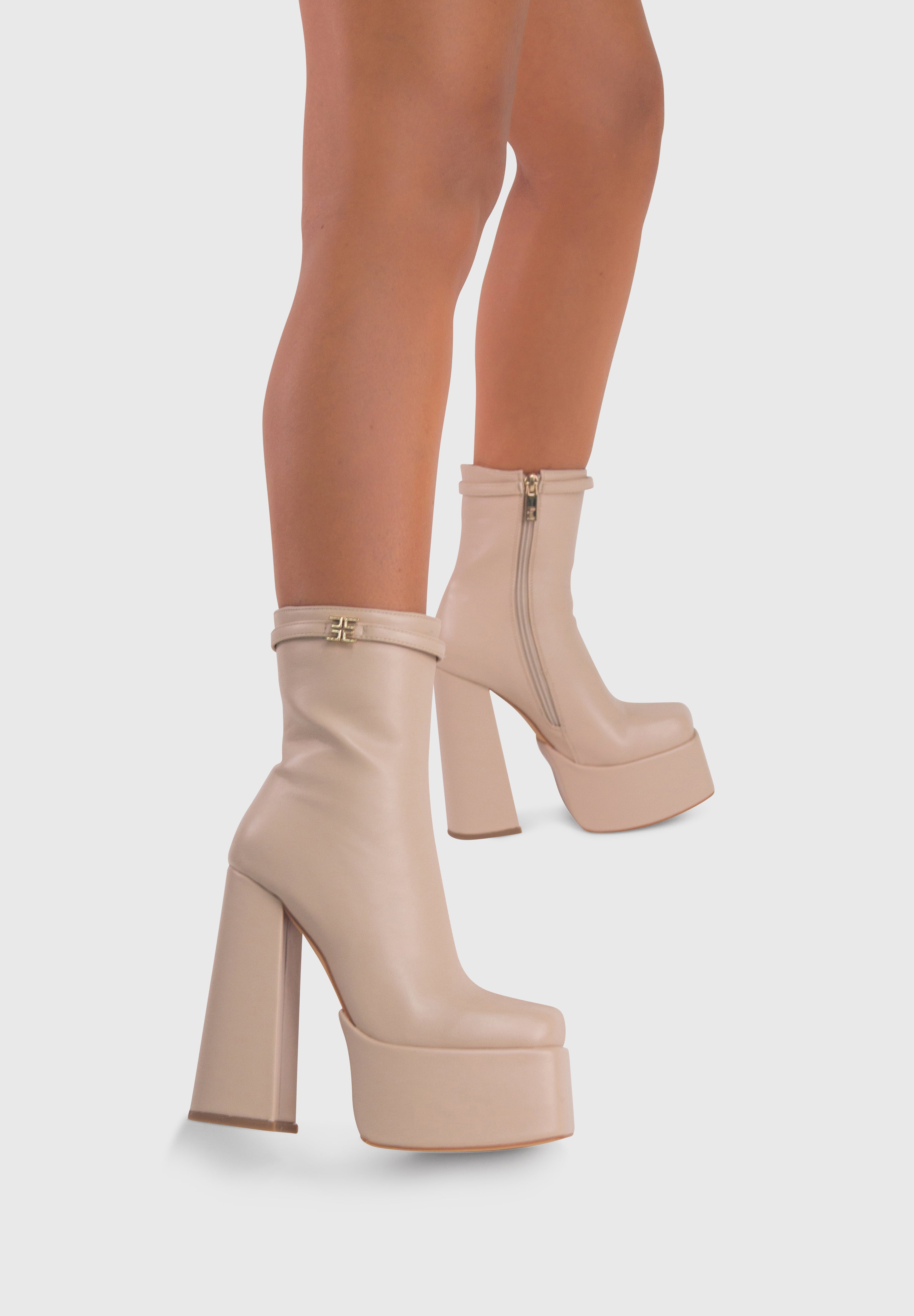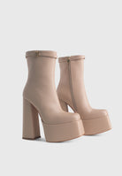 SAVANNAH Nude - Stivaletti al polpaccio plateau alto punta quadrata tacco largo