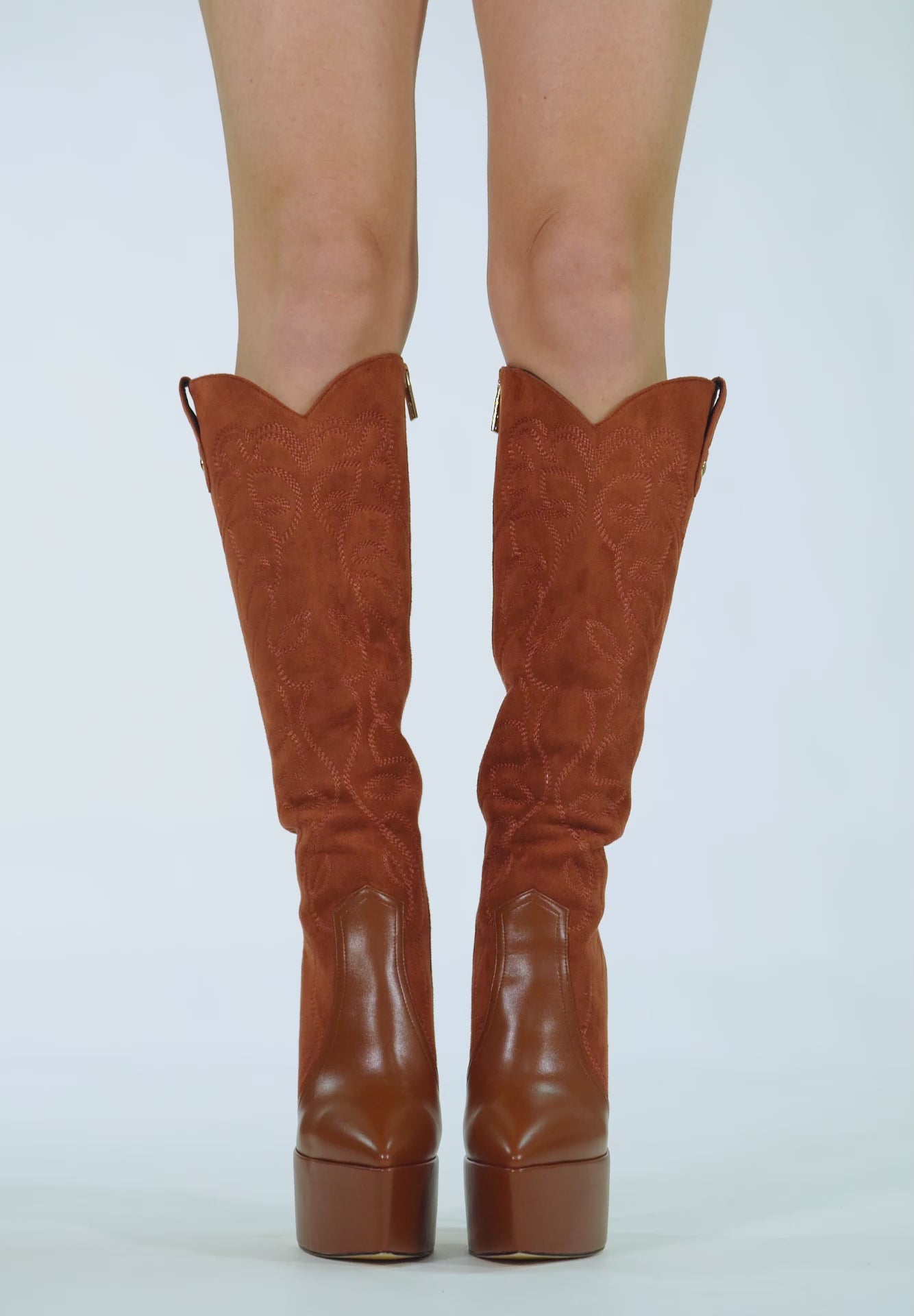 SALOON Cammello – Stivali stile western plateau a punta tacco alto