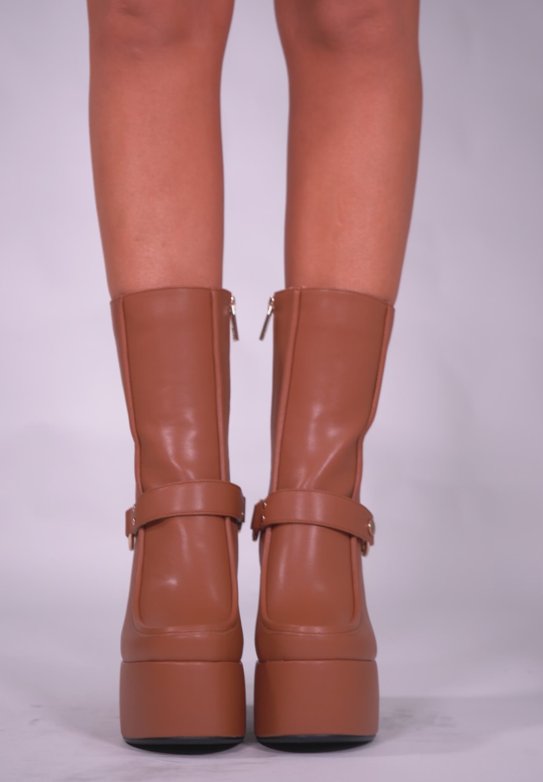 ECLIPSE Cammello - Stivaletti al polpaccio plateau alto similpelle