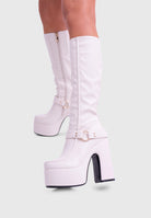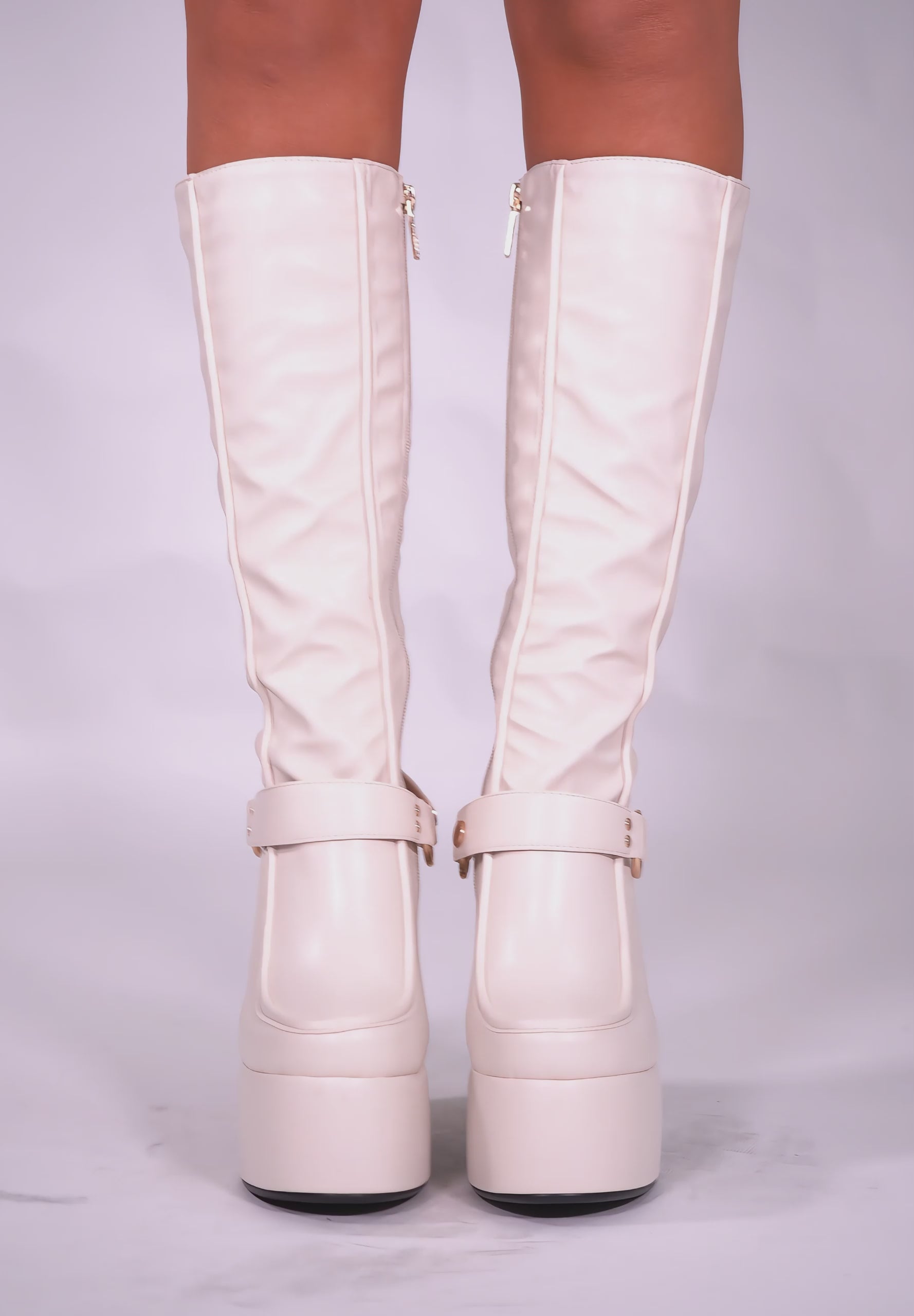 FLAMMA Bianco - Stivali al ginocchio plateau alto similpelle con fibbia rimovibile