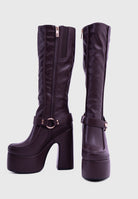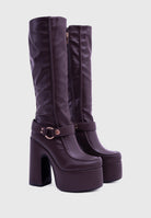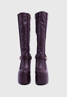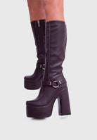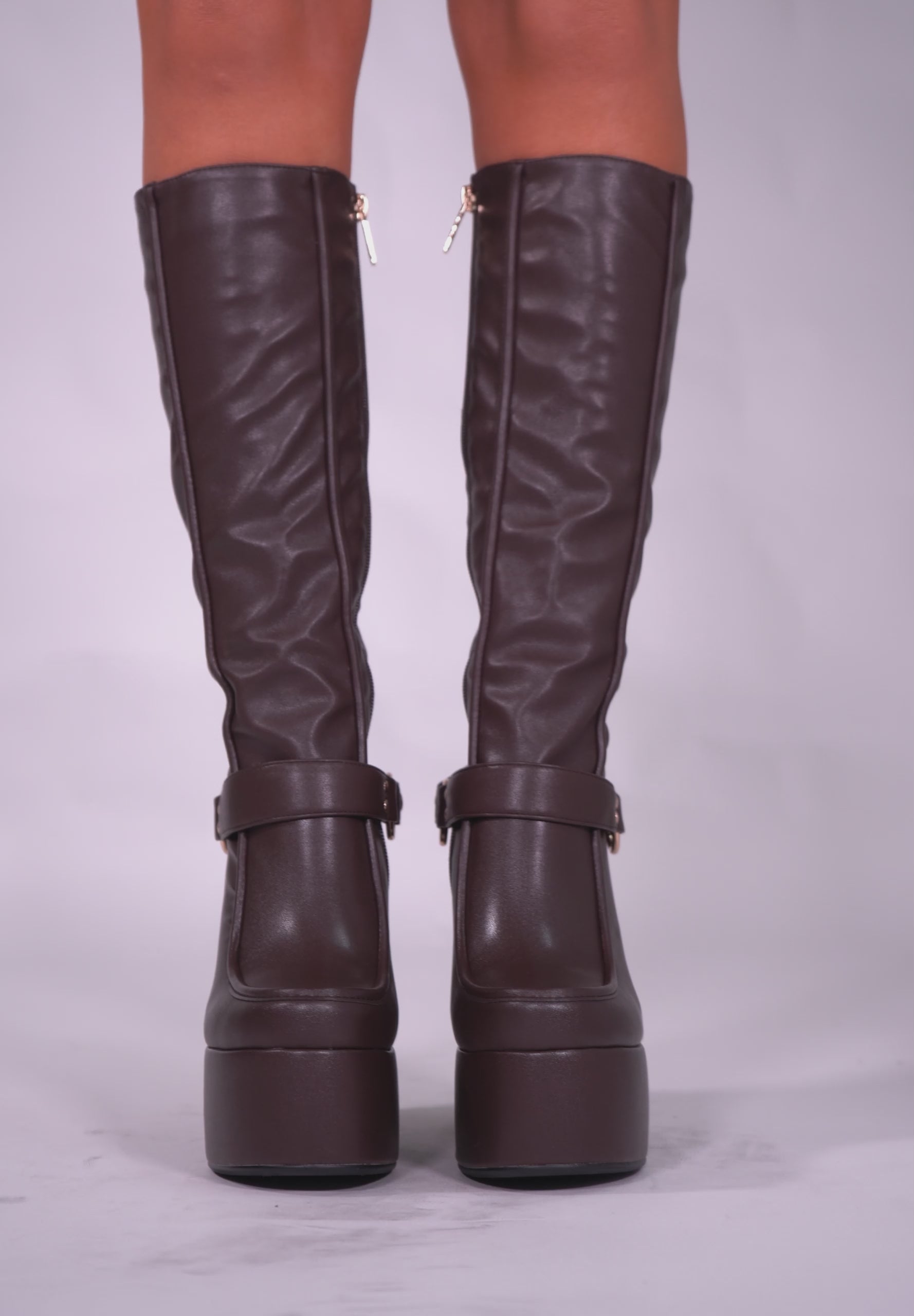 FLAMMA Marrone - Stivali al ginocchio plateau alto similpelle con fibbia rimovibile