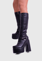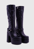 FLAMMA Nero - Stivali al ginocchio plateau alto similpelle con fibbia rimovibile