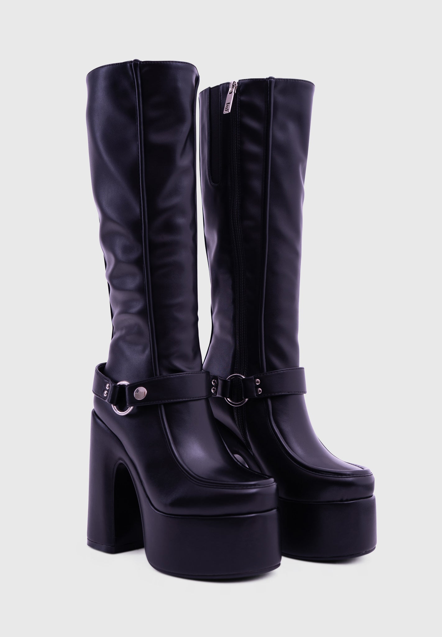 Realizzati in morbida similpelle vegana premium, avvolgono la gamba fino al sotto ginocchio, slanciando la figura con un design deciso e sensuale. La tomaia morbida presenta inserto elastico laterale in modo da agevolare la calzata a tutti i tipi di fisico, anche a chi ha delle linee più curvy.