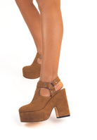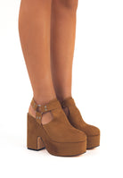 Mivelle Cammello - Scarpe con Tacco Largo e Plateau