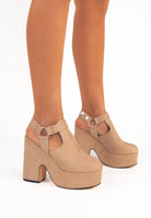 Mivelle Nude - Scarpe con Tacco Largo e Plateau