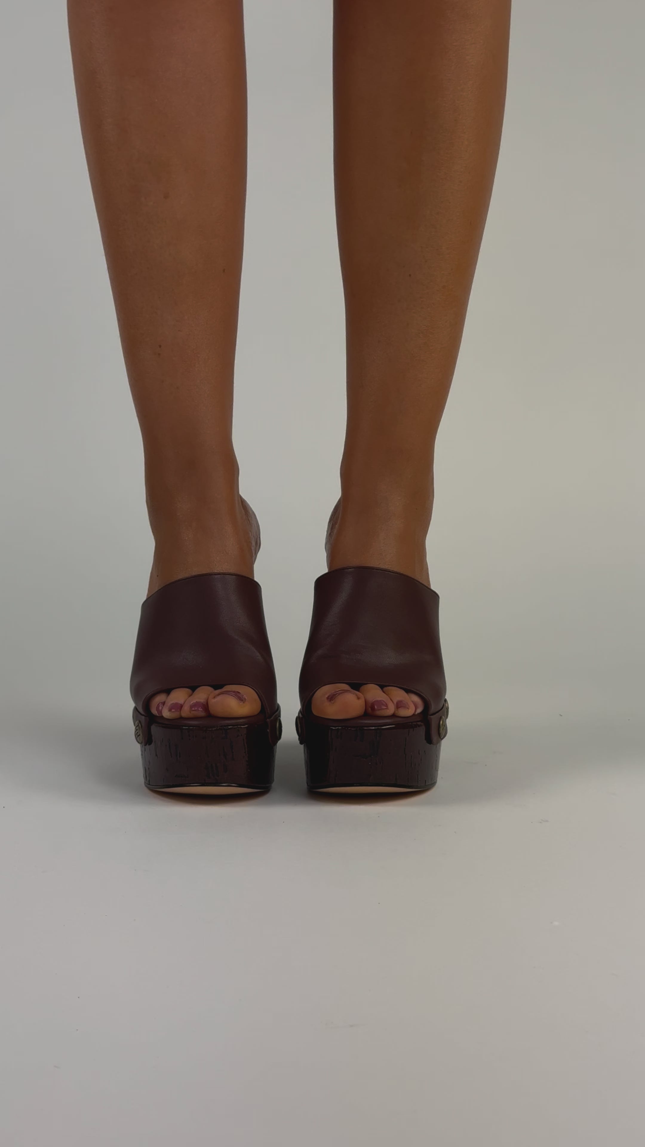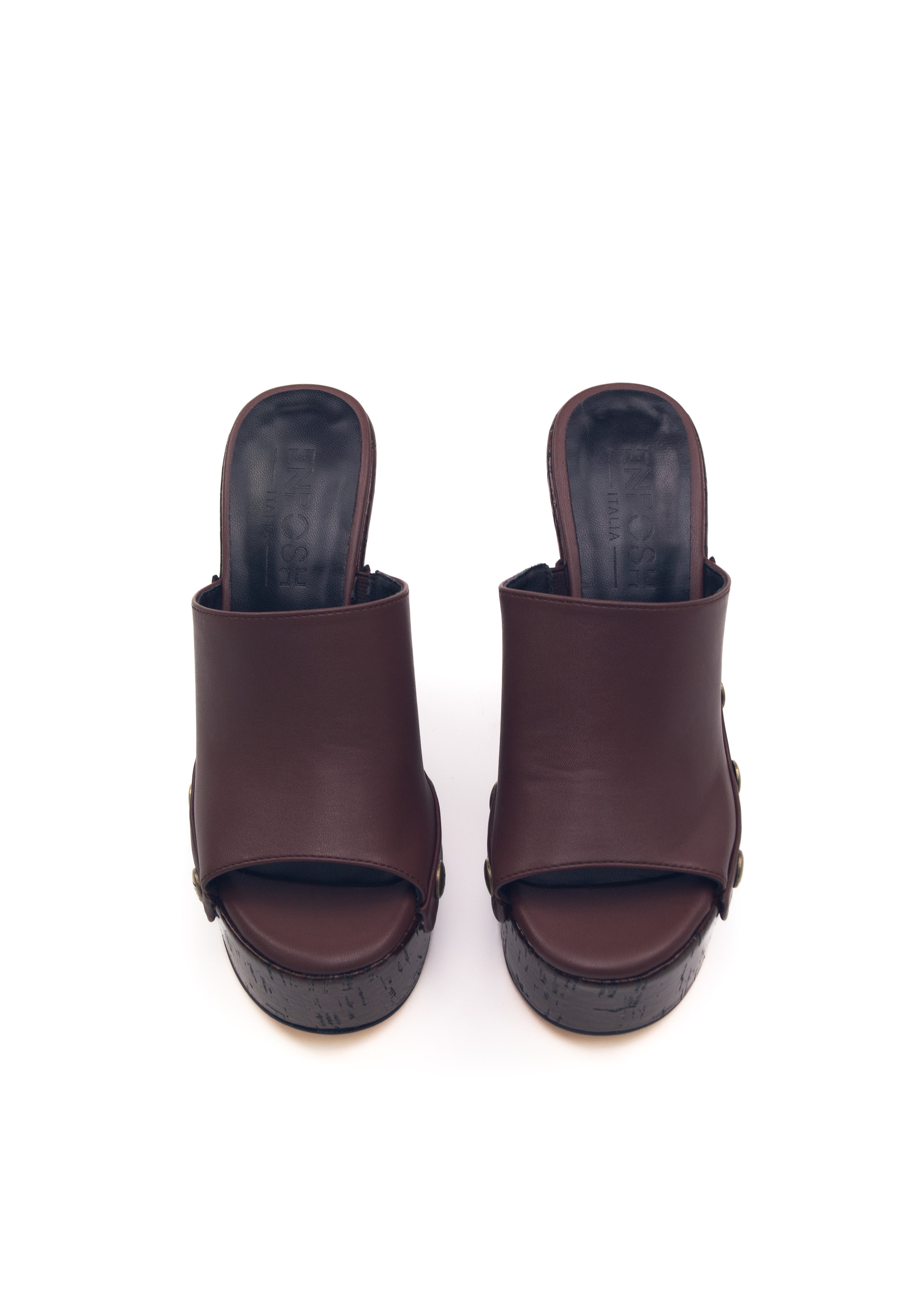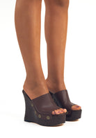 Il marrone moka couture con la zeppa laccata marrone rende questi zoccoli ancora più versatili e abbinabili letteramente con tutto.