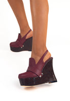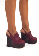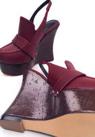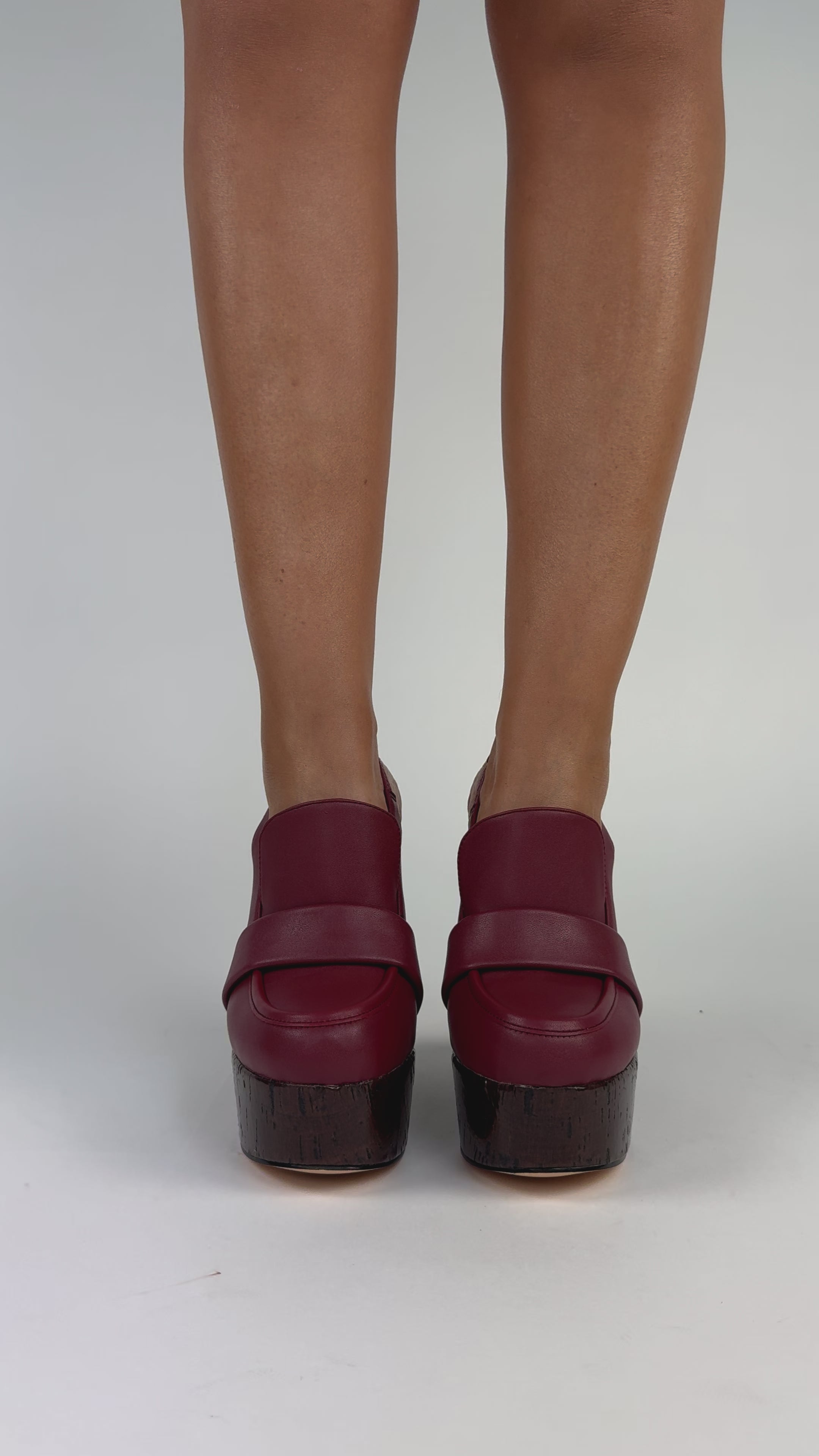 Seryn Bordeaux Rubino Scuro - Sabot Mocassino con zeppa effetto legno