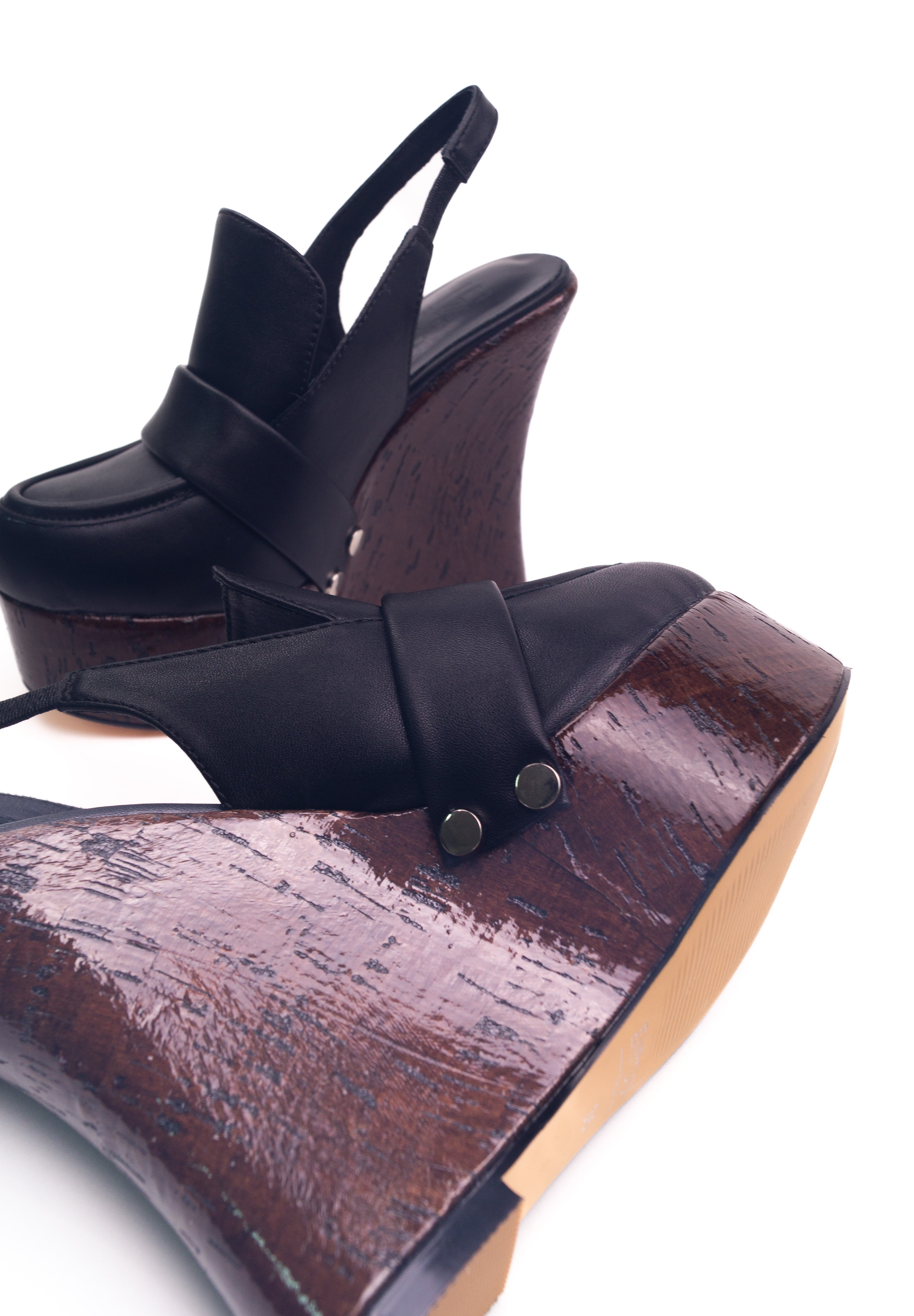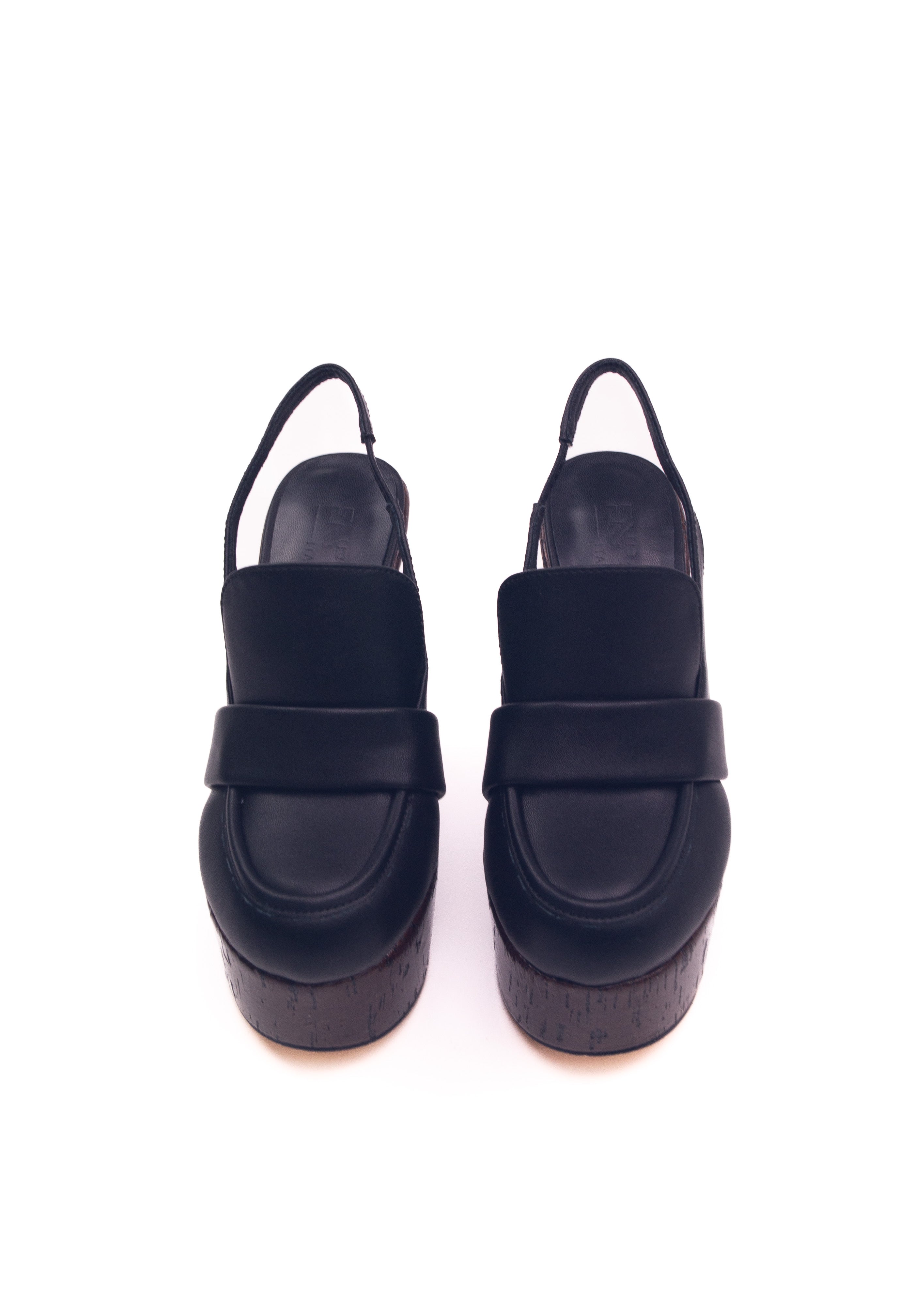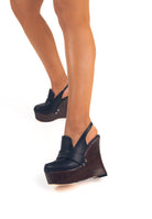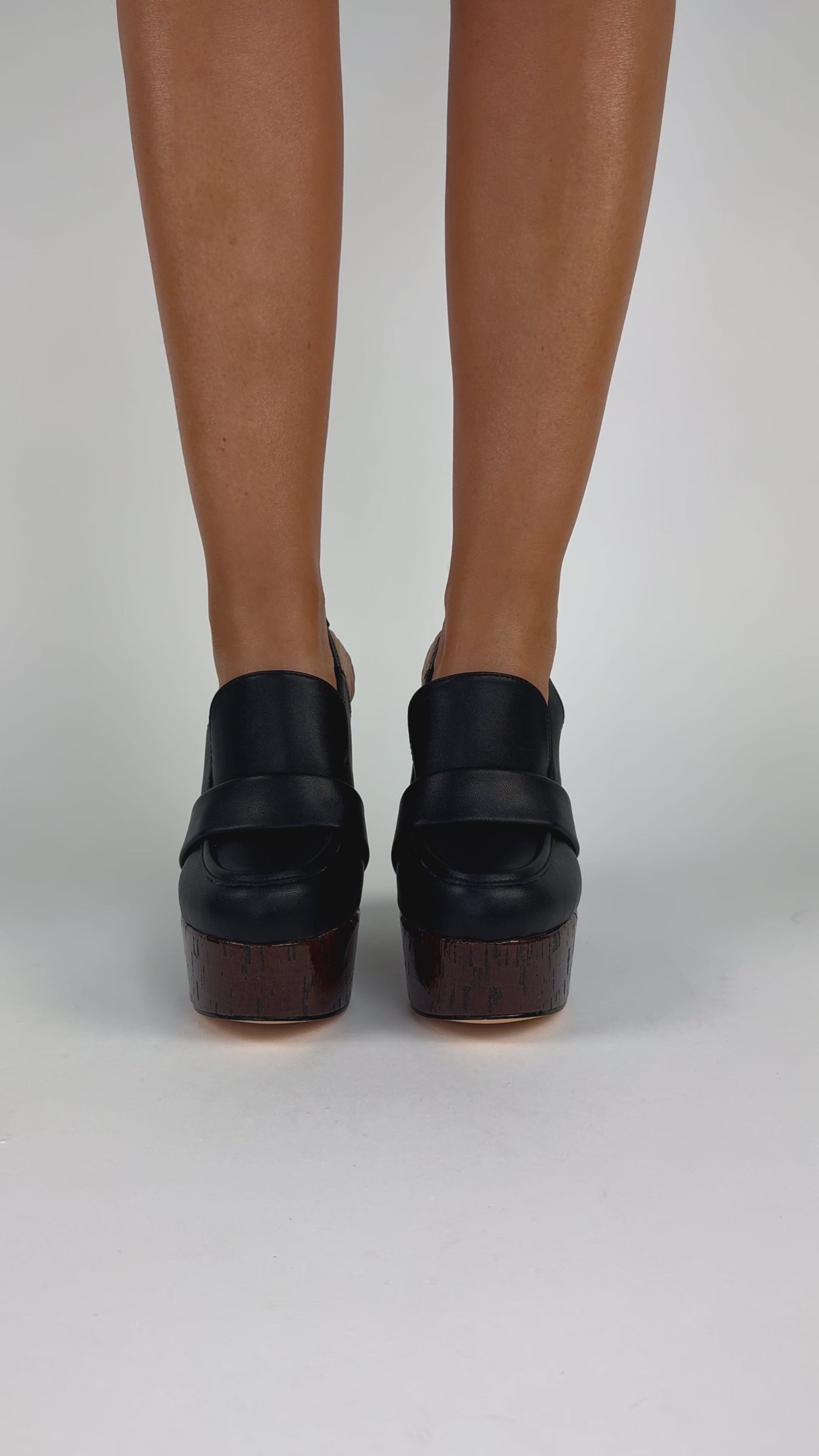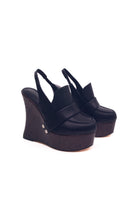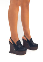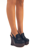 Seryn Nero - Sabot Mocassino con zeppa effetto legno