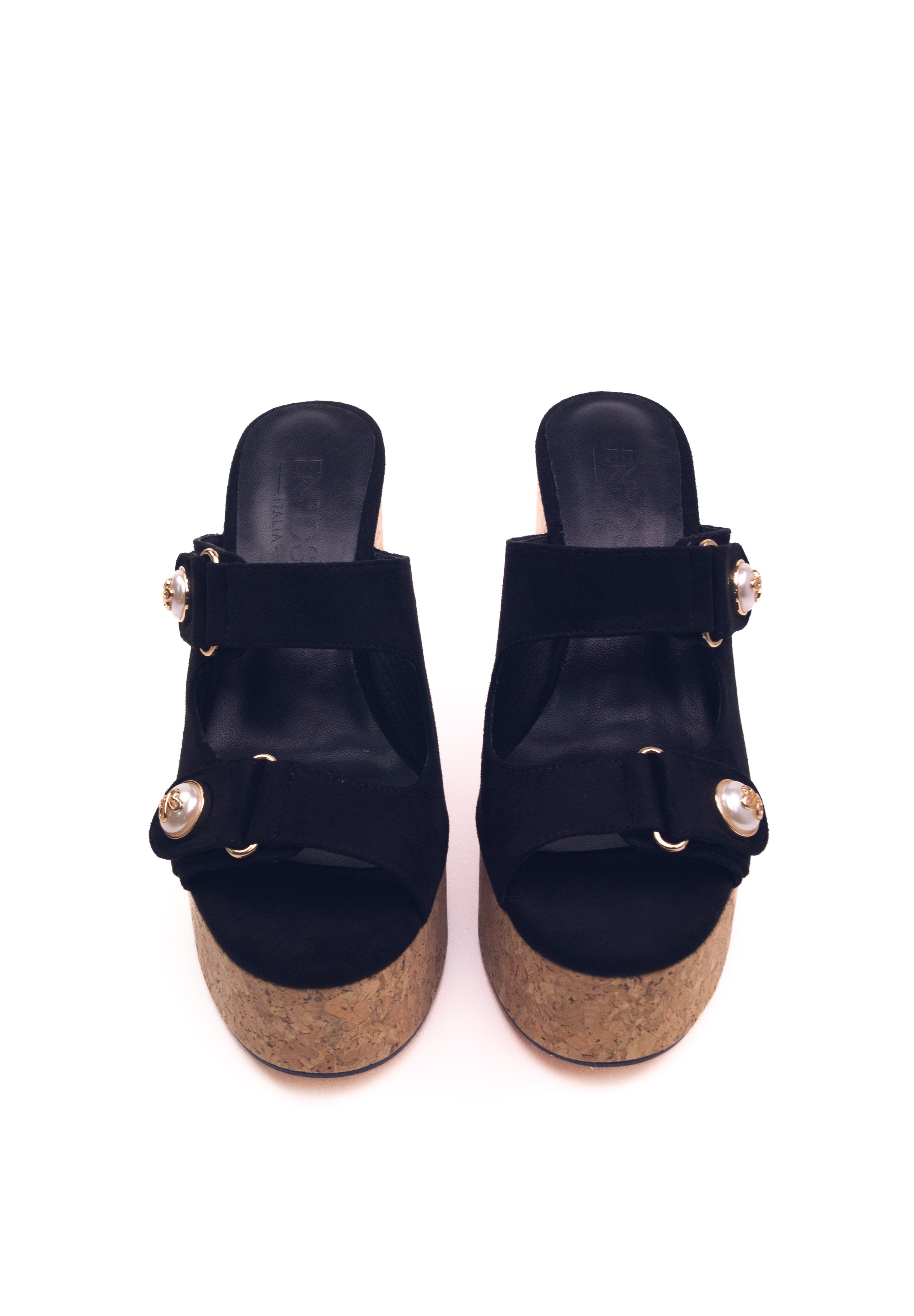 Zaluna Nero - Scarpe platform donna con plateau tacco largo e perla decorativa