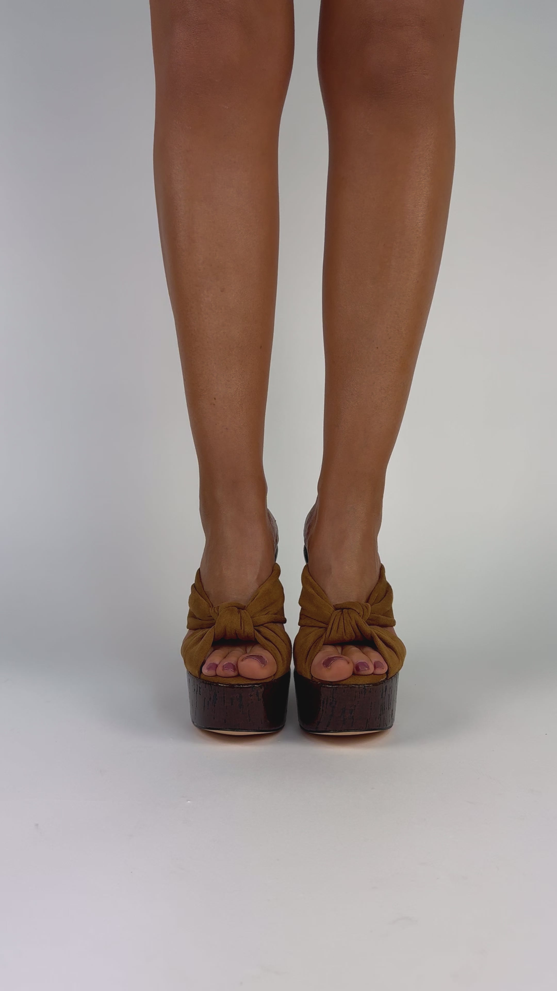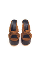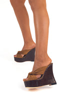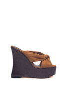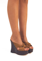 Selena Cammello - Sandali con zeppa effetto legno