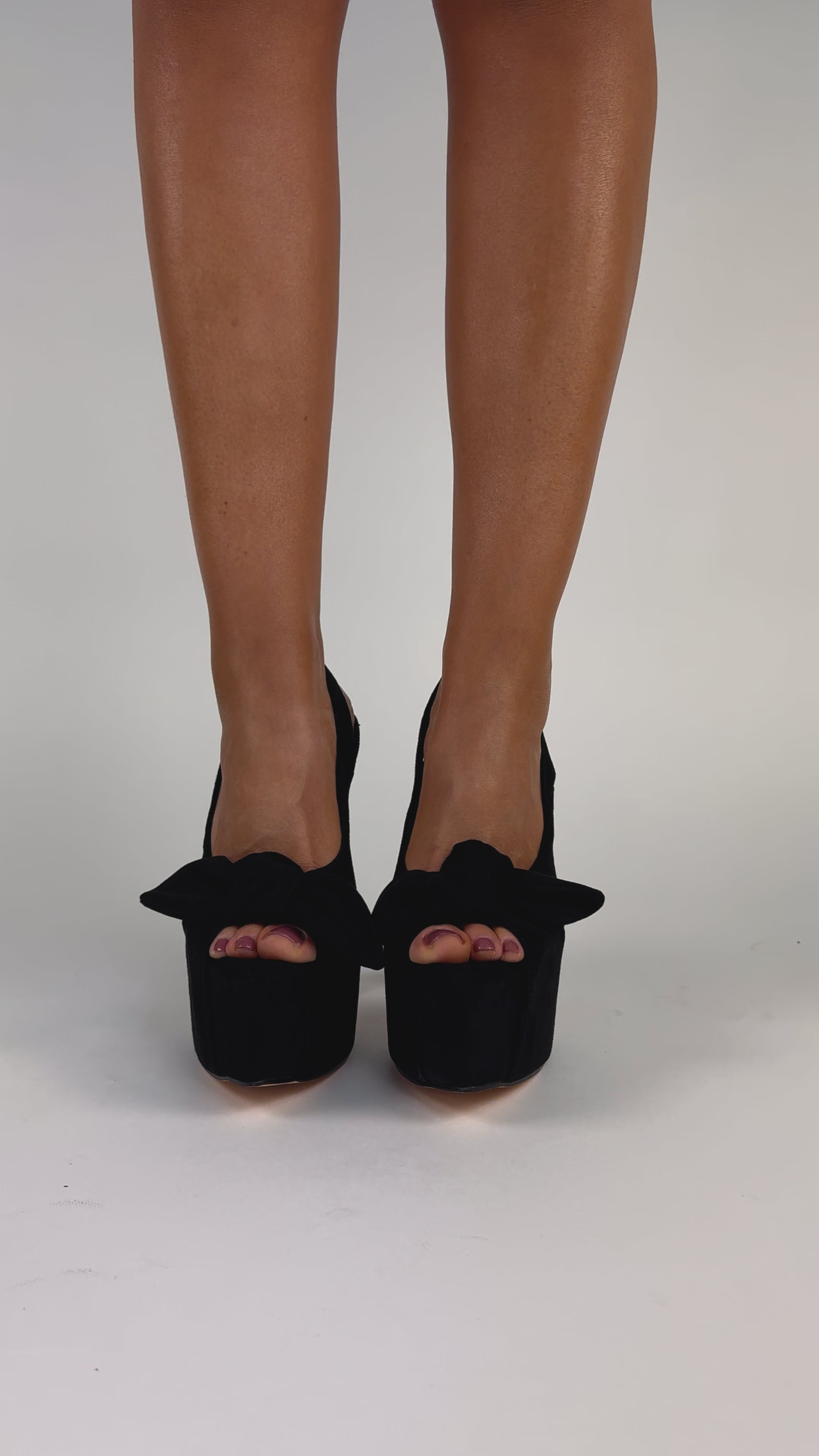 Con il tacco a clessidra e plateau a punta slanciato, i Vayla sono impreziositi dal fiocco sul davanti, simbolo di carattere e femminilità. Il colore nero è la scelta perfetta per cerimonie, eventi speciali e per dare un twist sofisticato a ogni outfit.