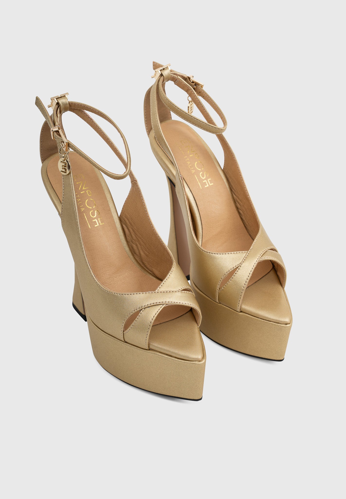 The ankle strap with ENPOSH charm adds a distinctive signature detail.