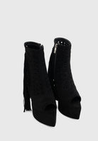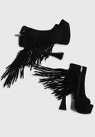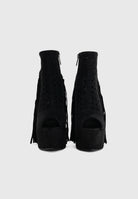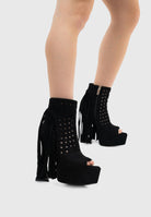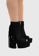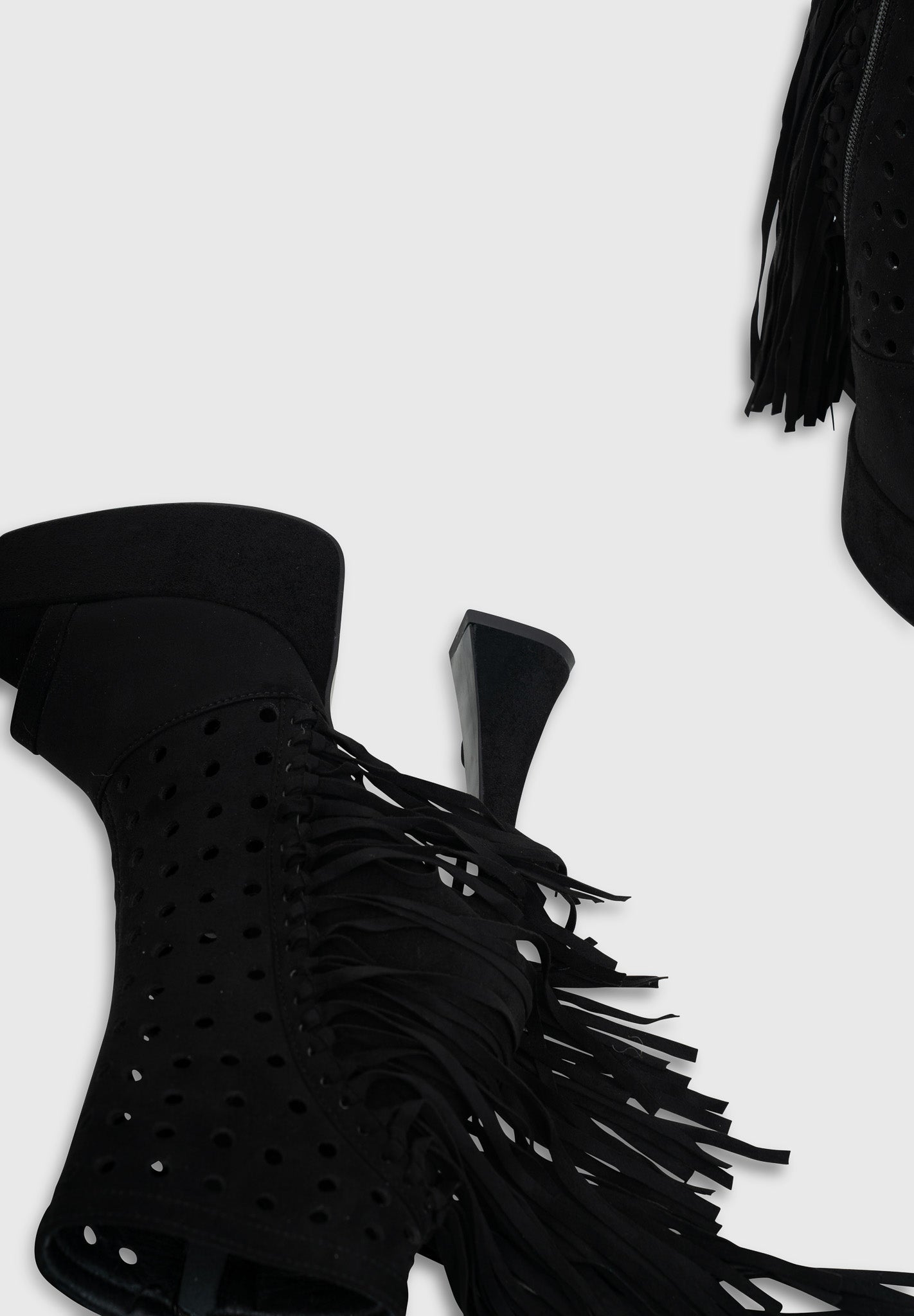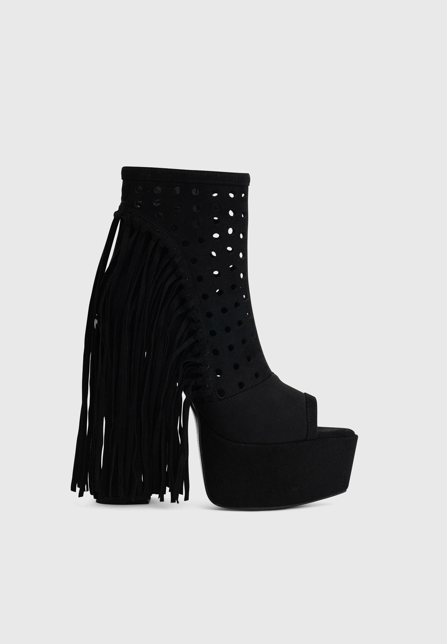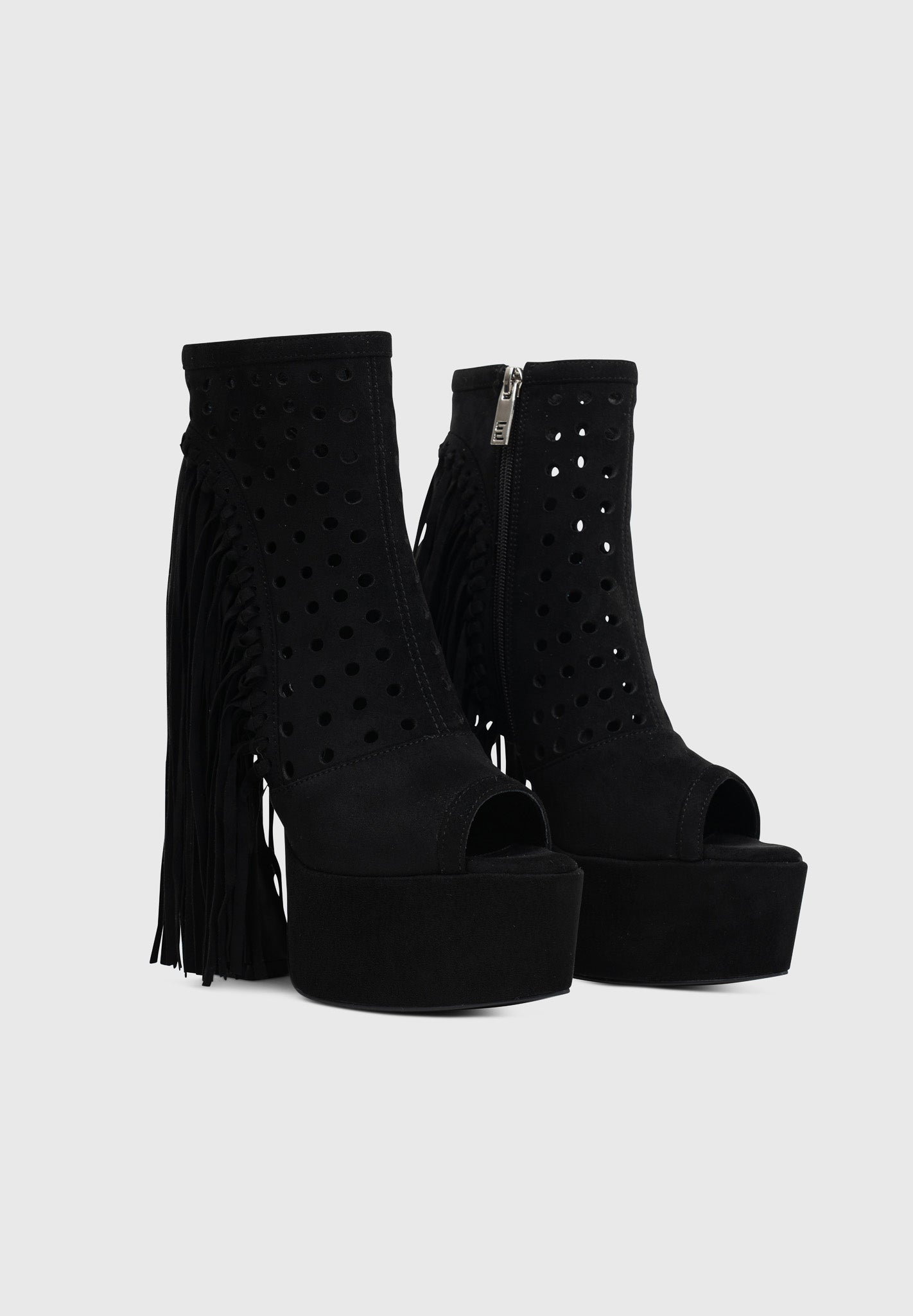 SAHARA Negro – Botines plataforma con flecos y tacón reloj de arena