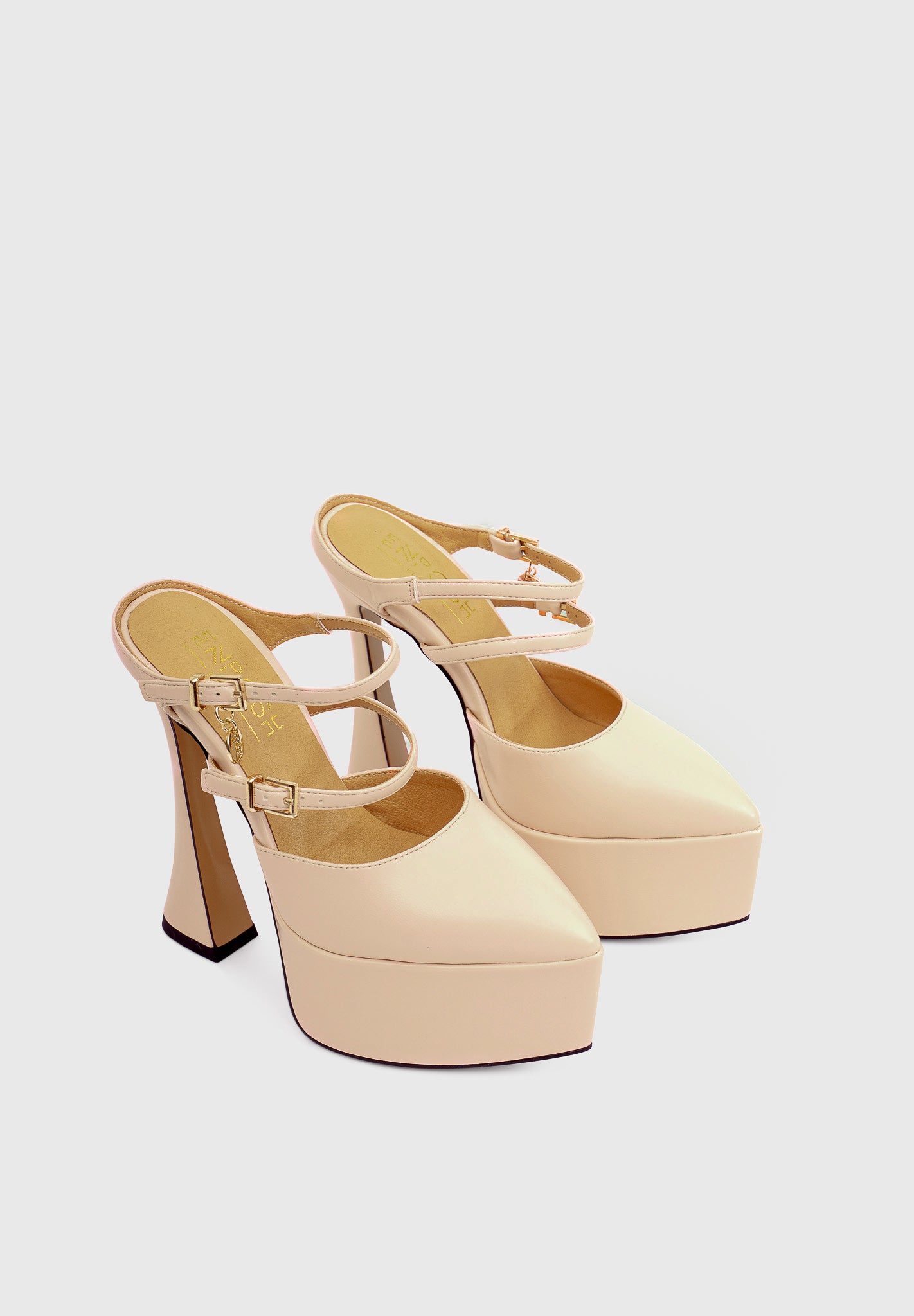 SILA Nude – Zapatos plataforma con doble pulsera y tacón reloj de arena
