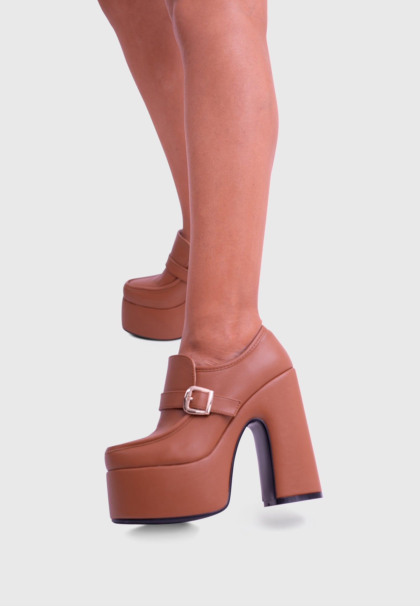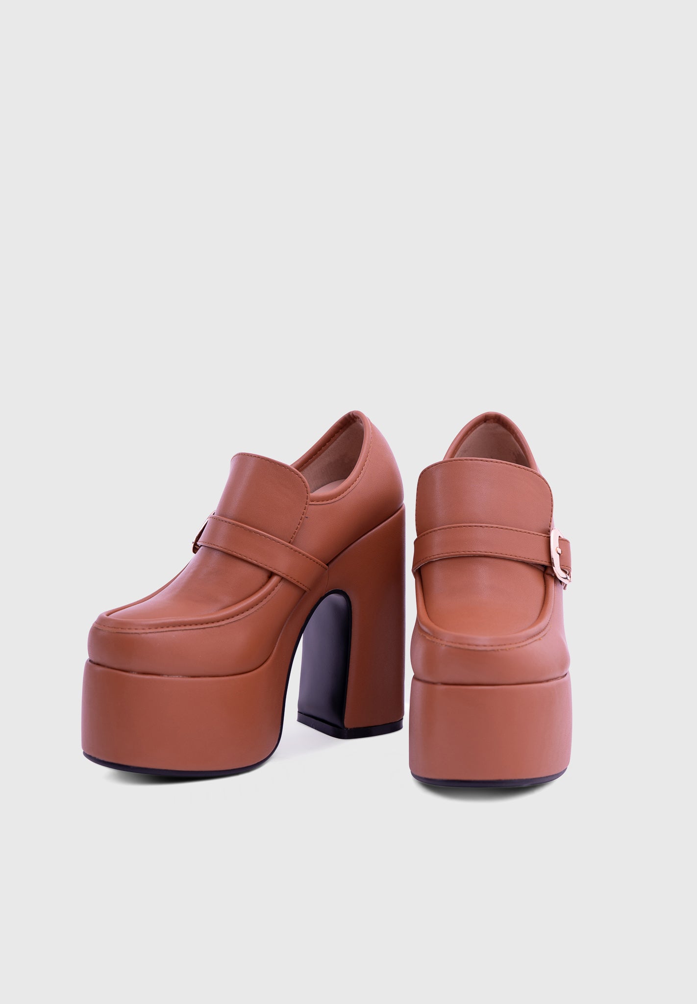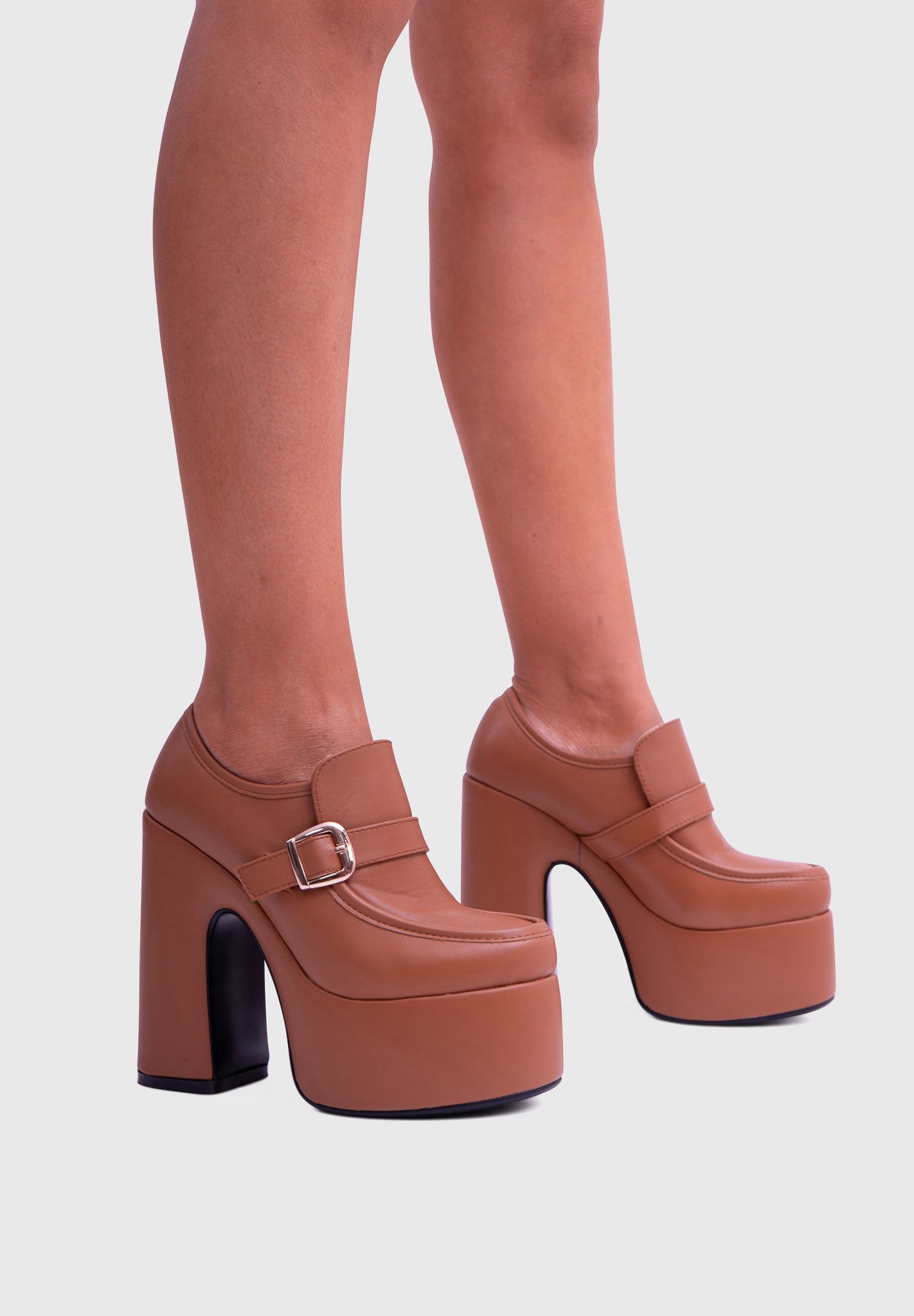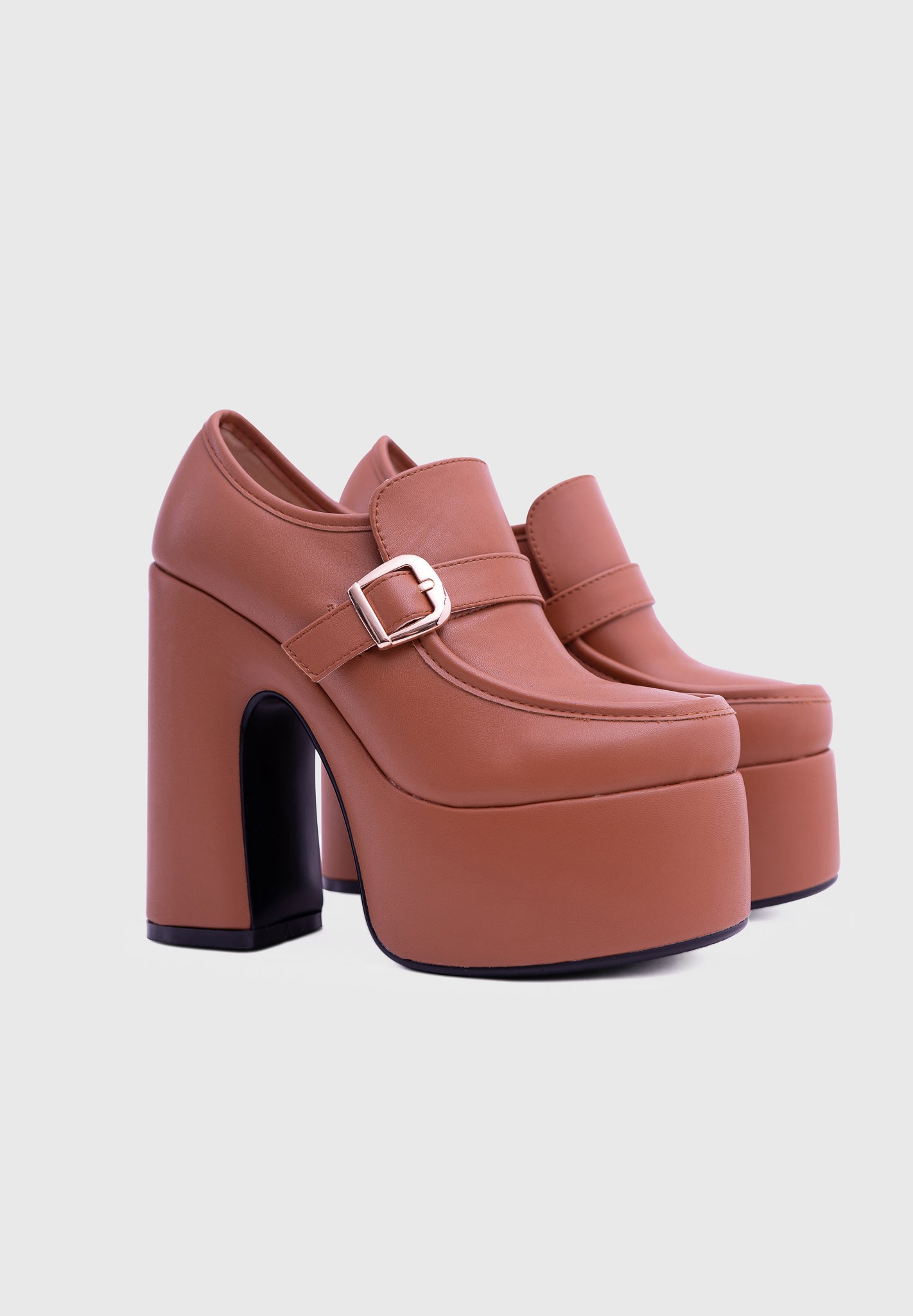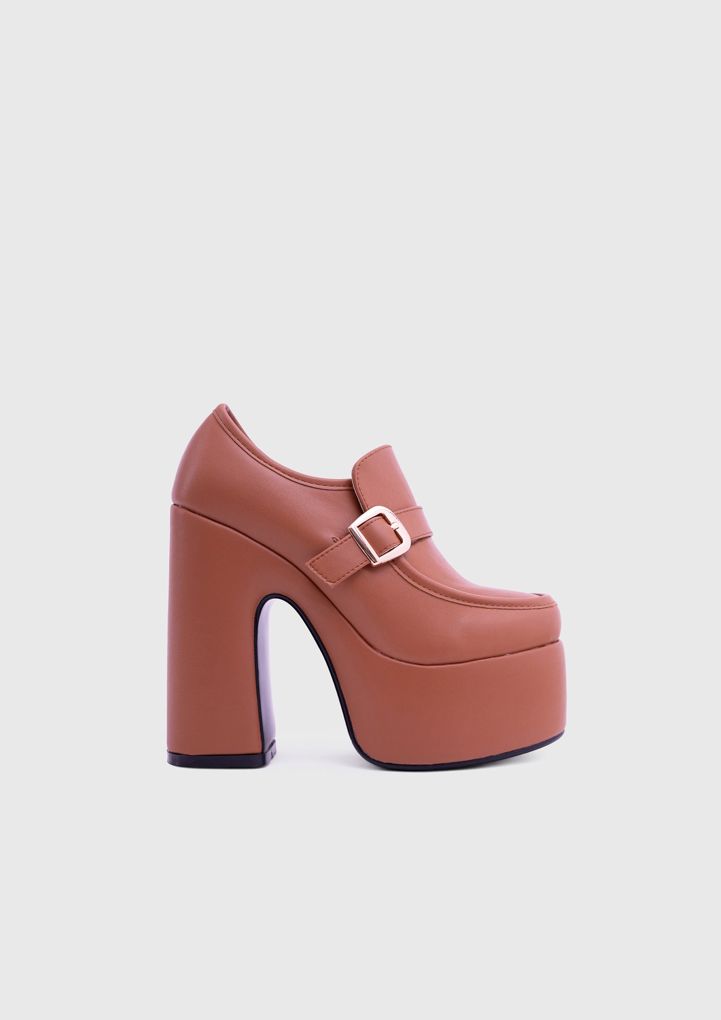 GAZE Camel – Mary Jane à plateforme, talon large, avec boucle carrée