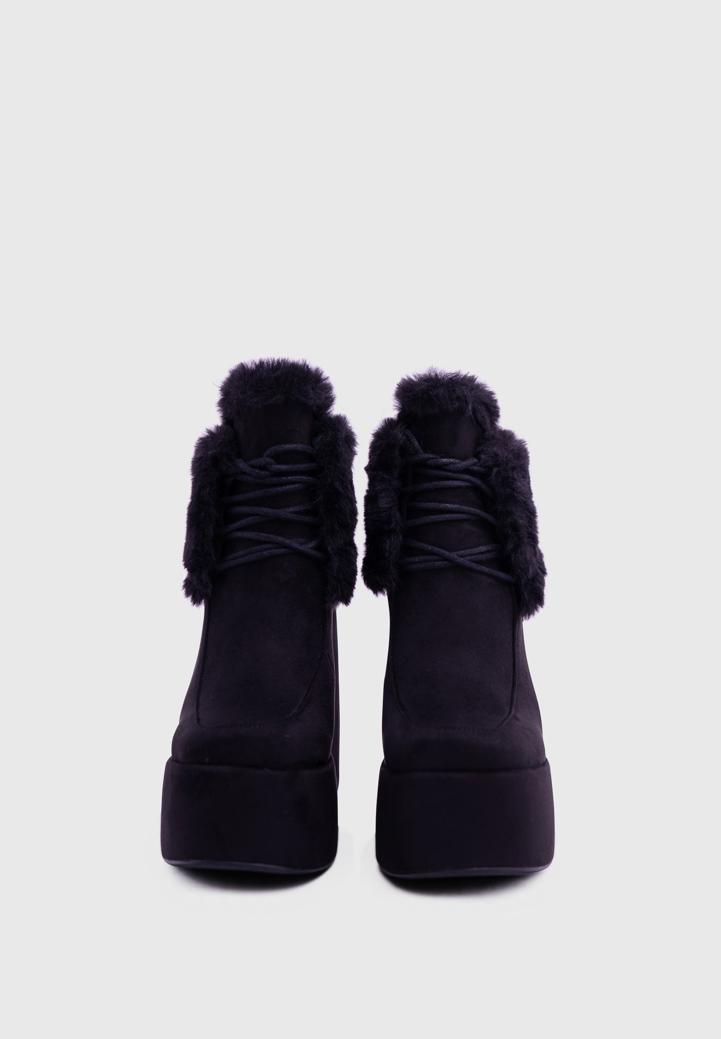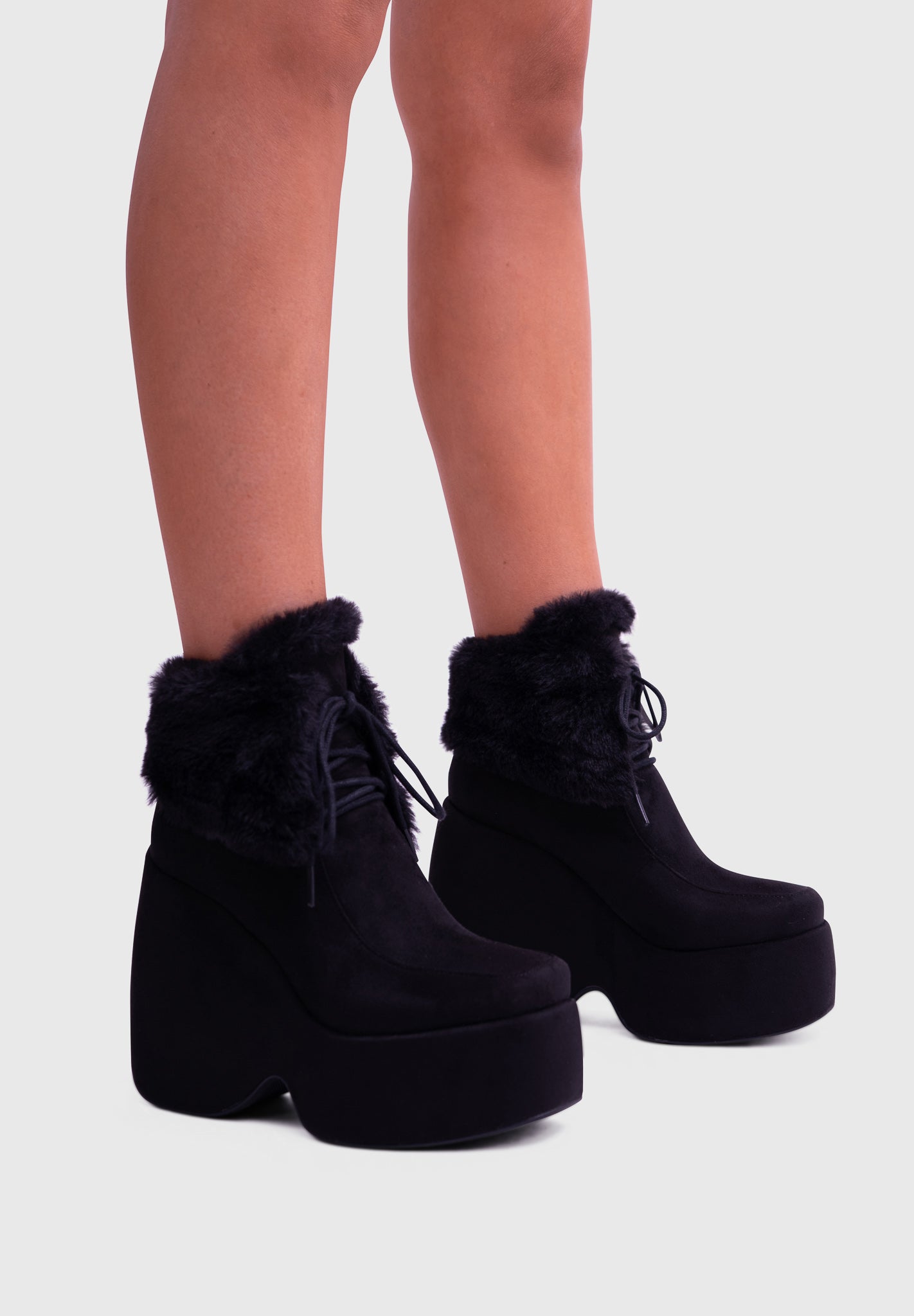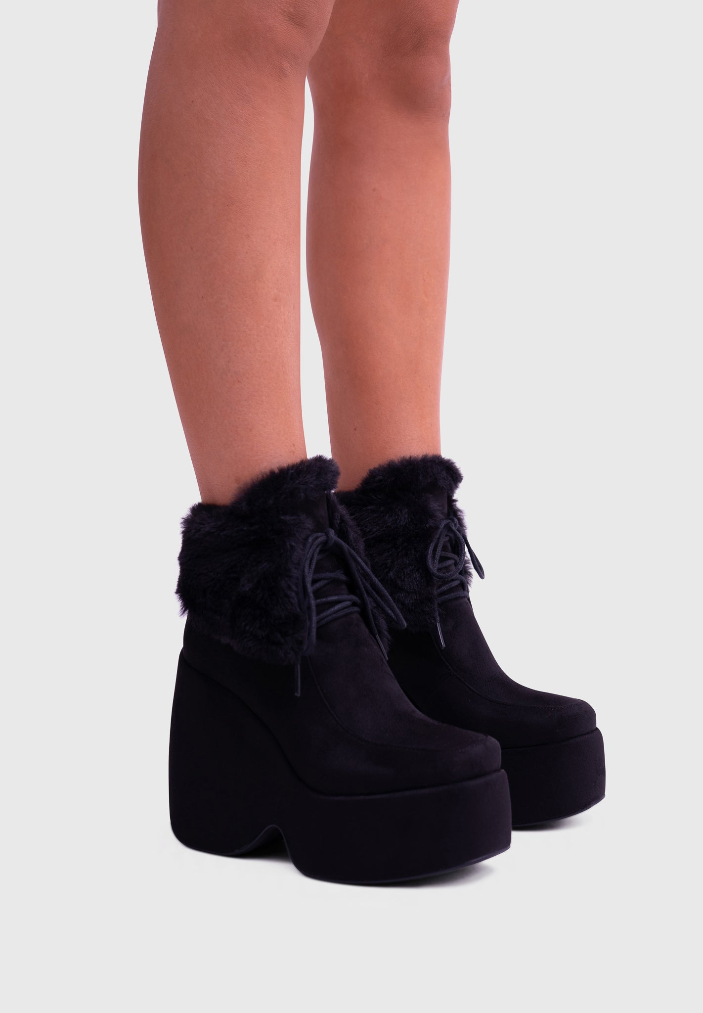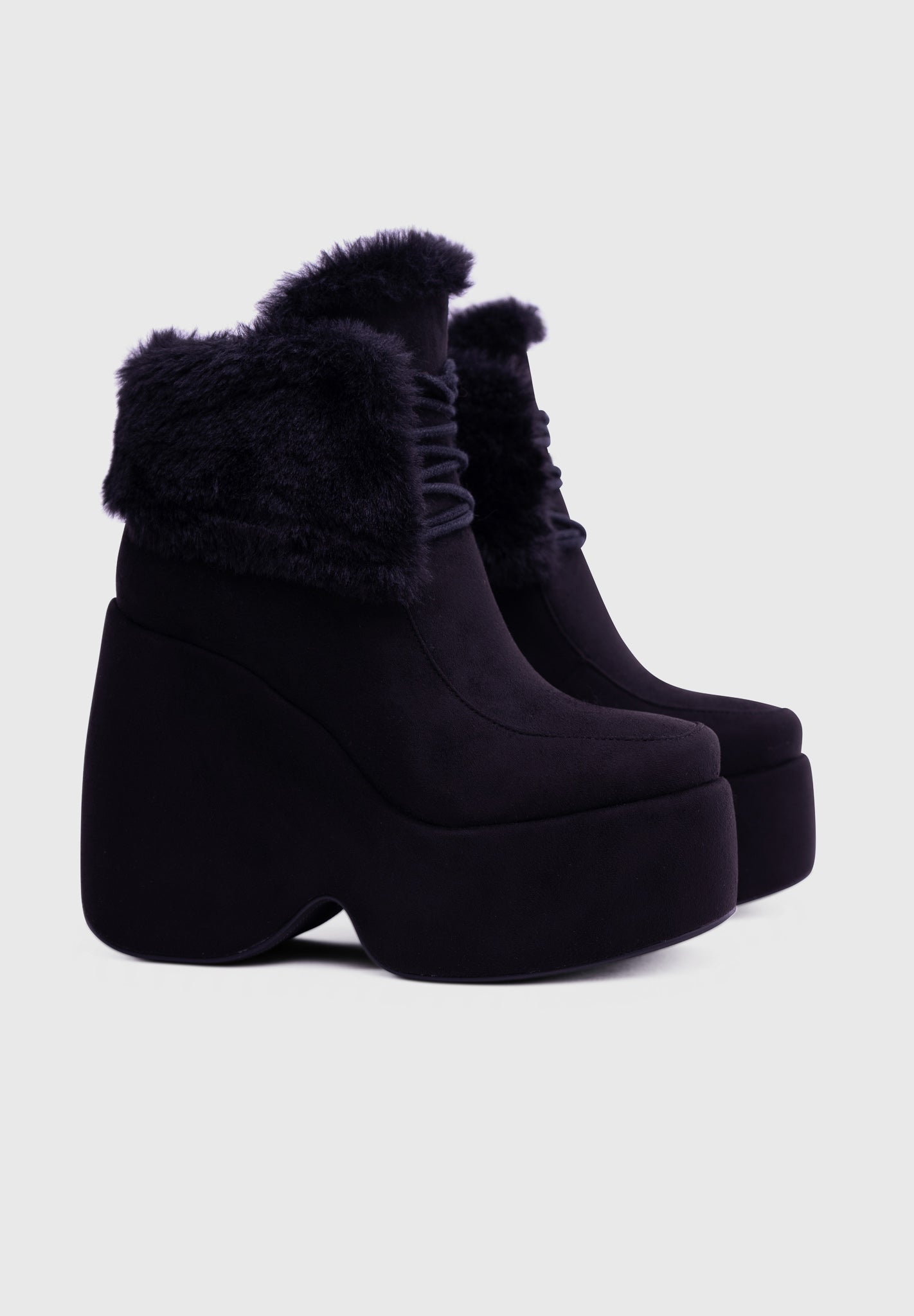 NOIRÉ Noir – Bottines compensées en suédine à lacets avec col en fausse fourrure douce