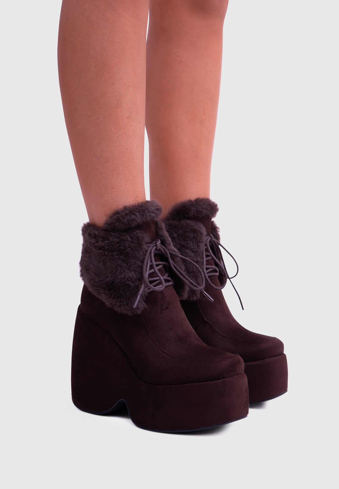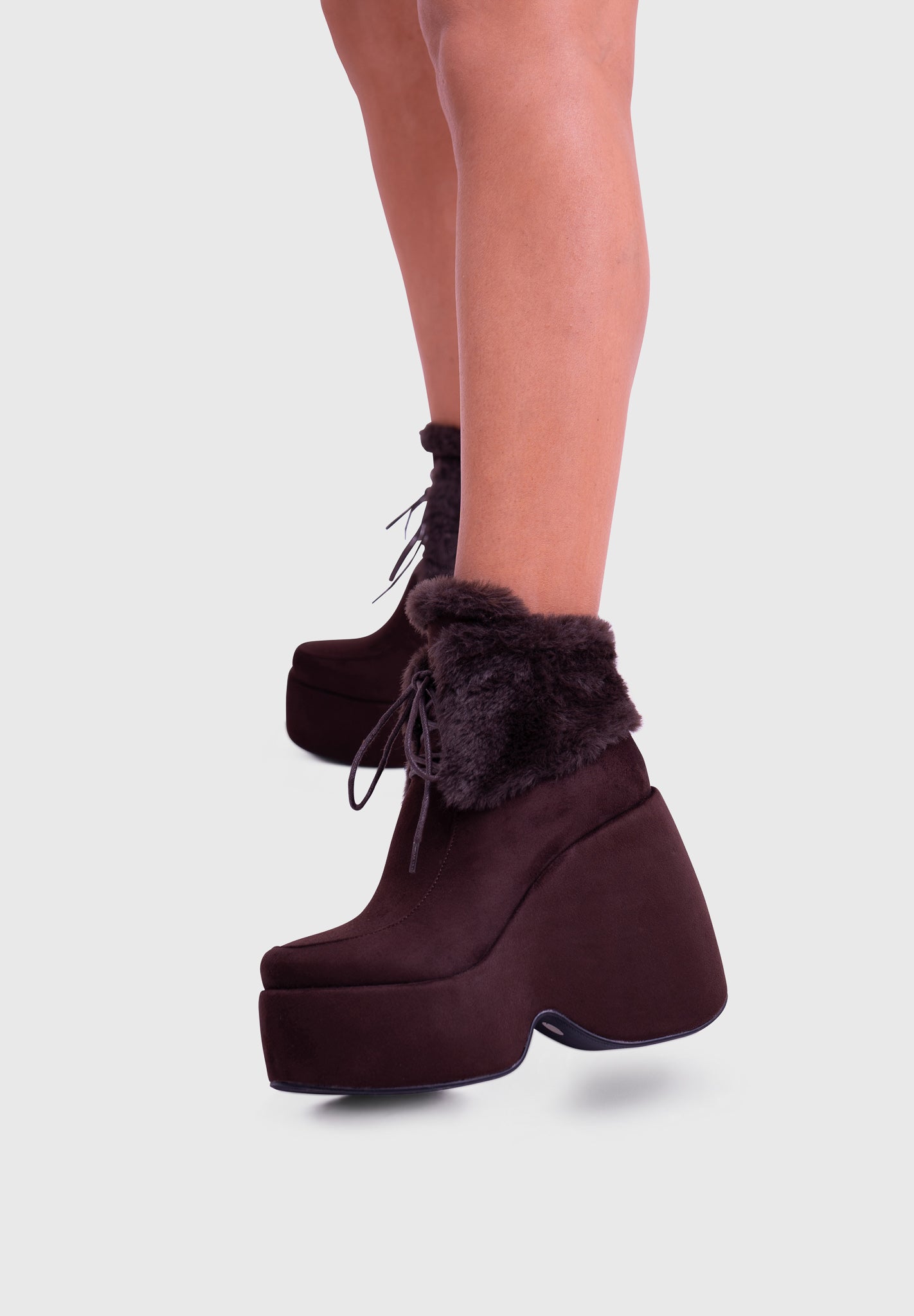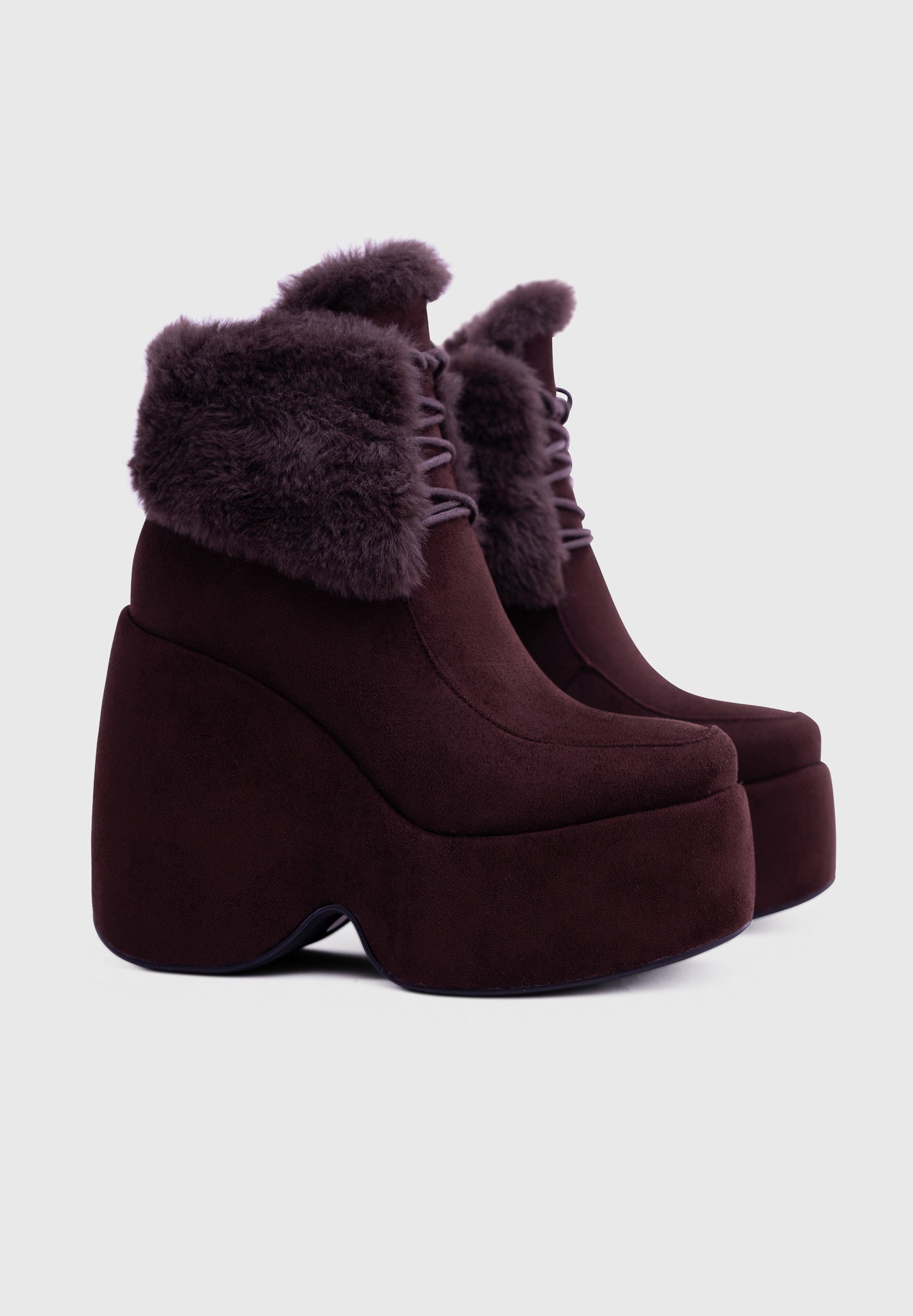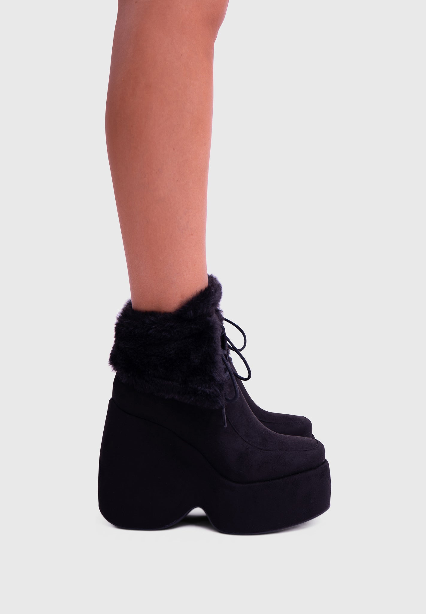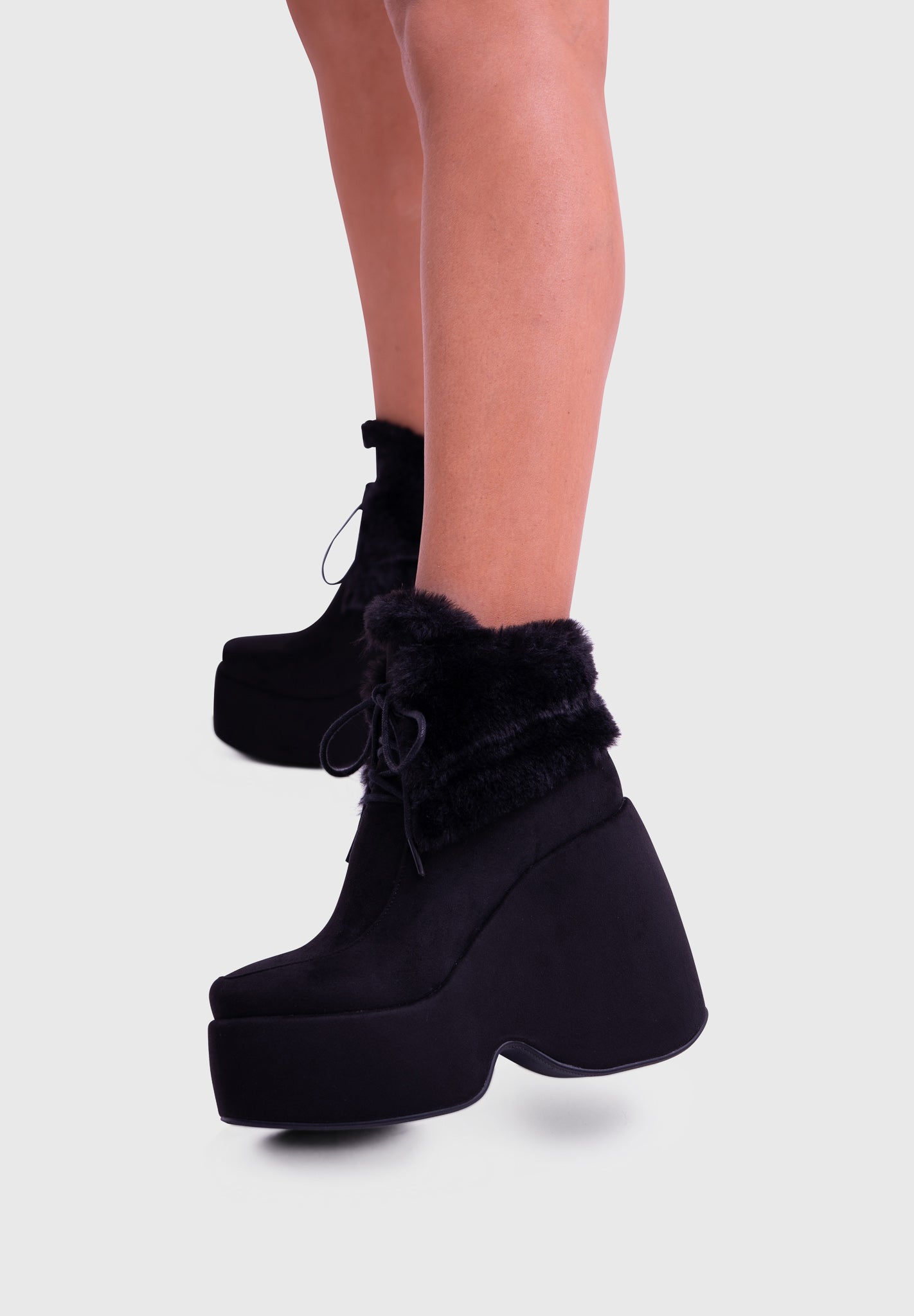 NOIRÉ Noir – Bottines compensées en suédine à lacets avec col en fausse fourrure douce