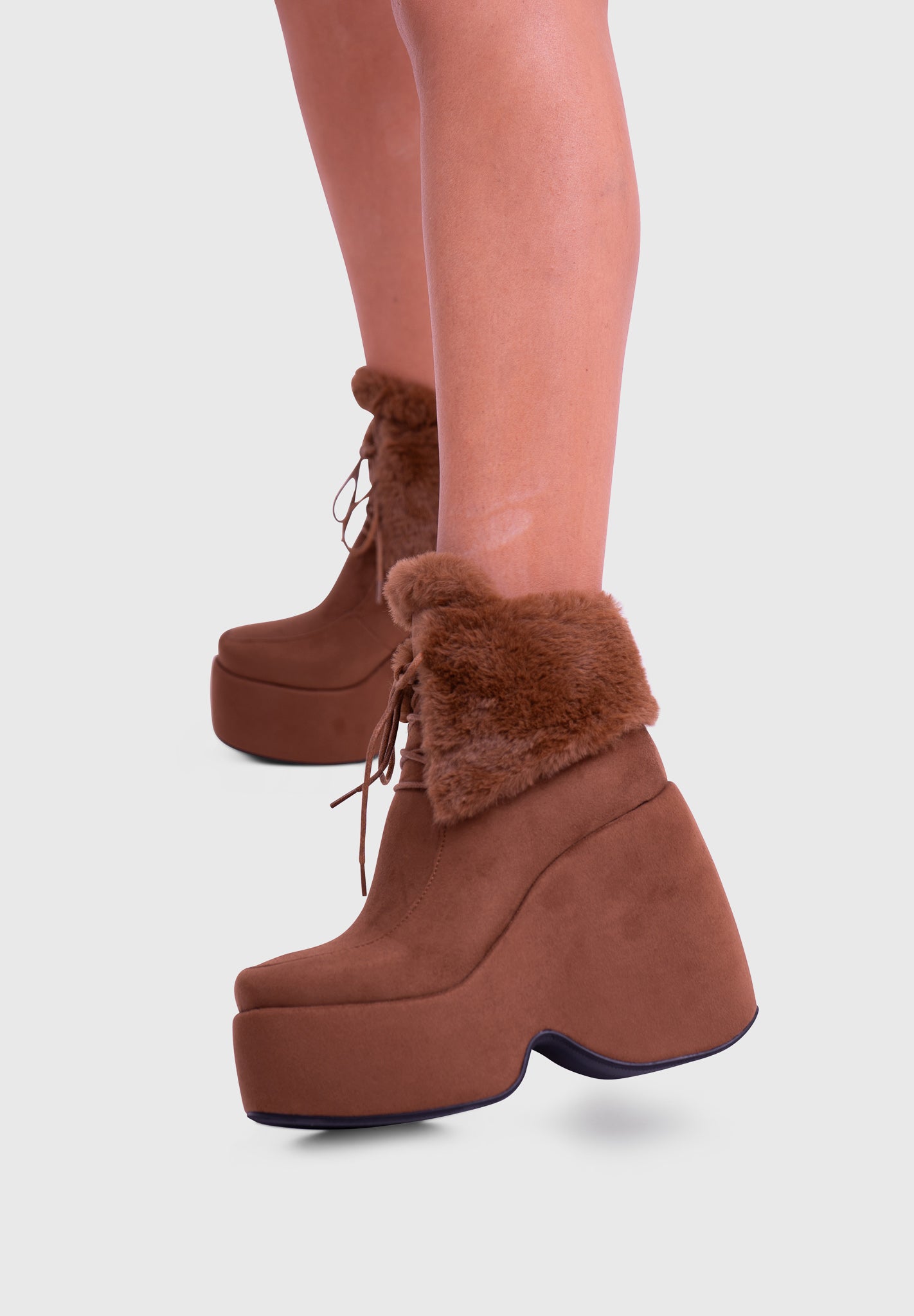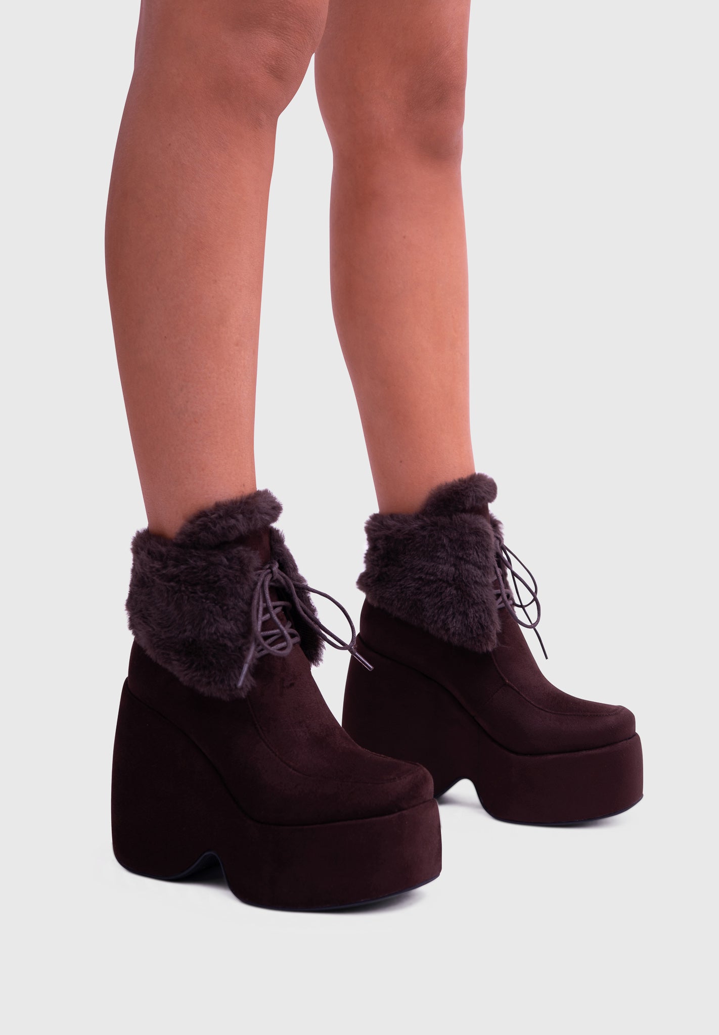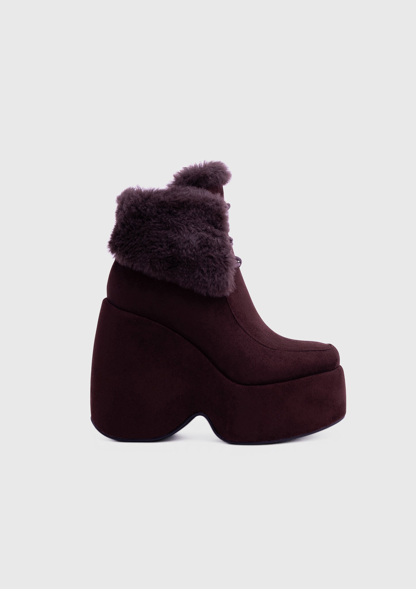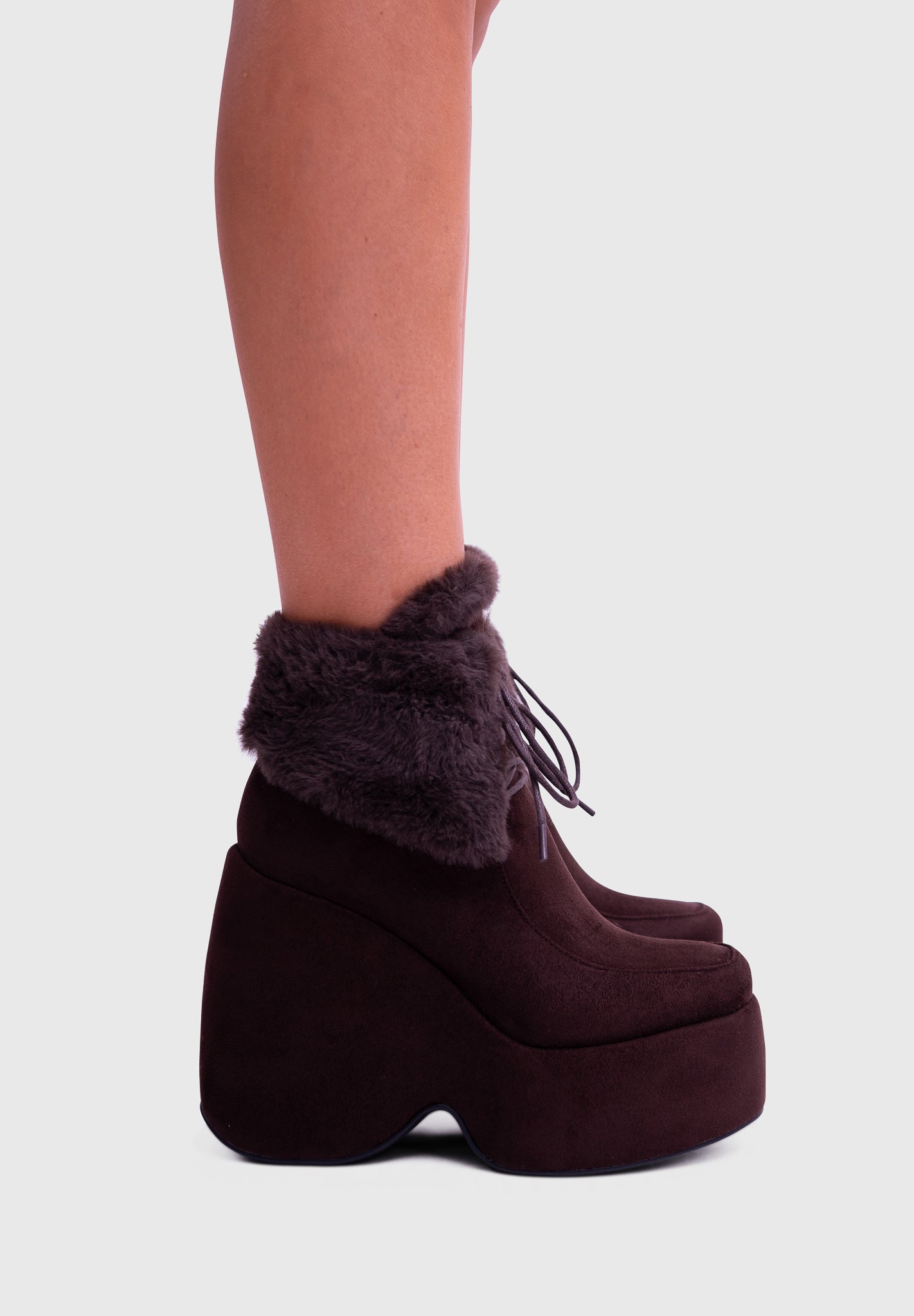NOIRÉ Noir – Bottines compensées en suédine à lacets avec col en fausse fourrure douce