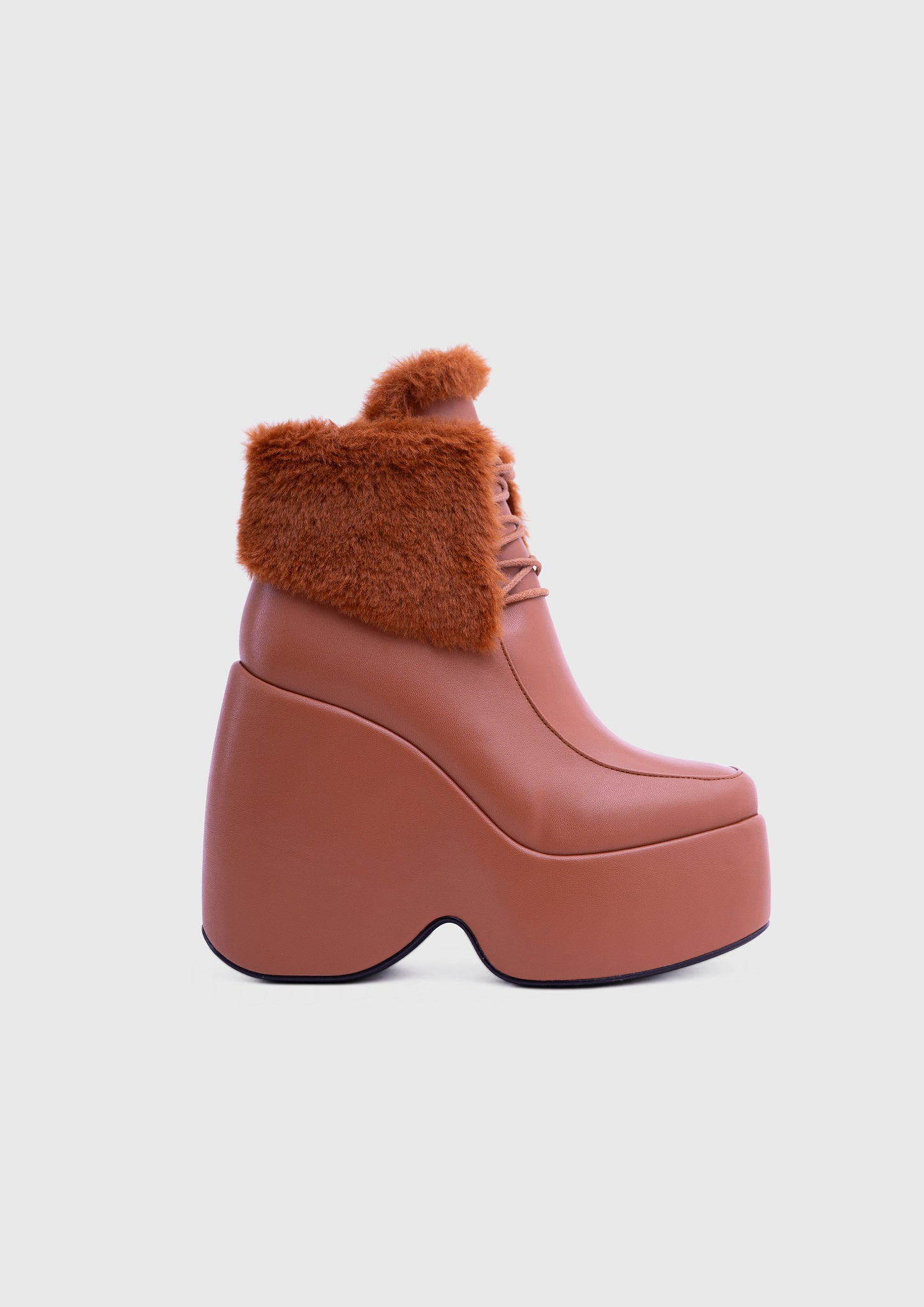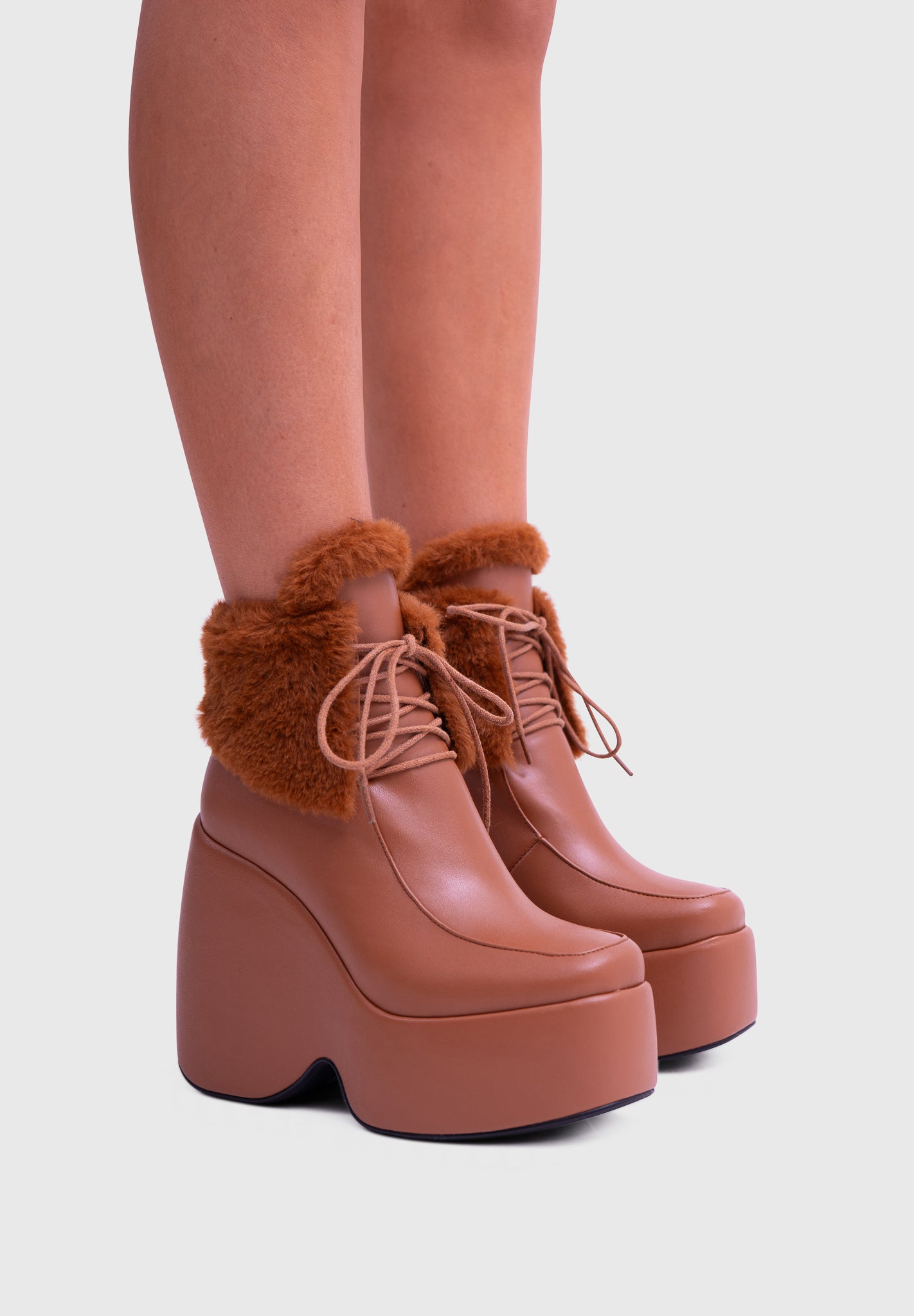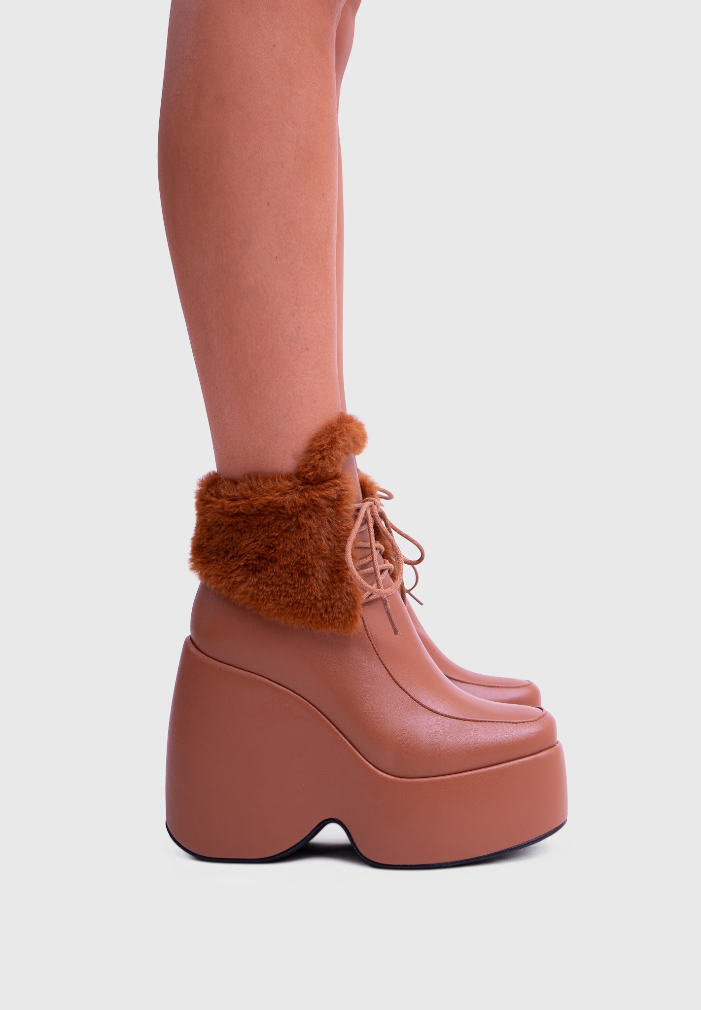 NOIRÉ Camel – Bottines compensées en similicuir à lacets avec col en fausse fourrure douce