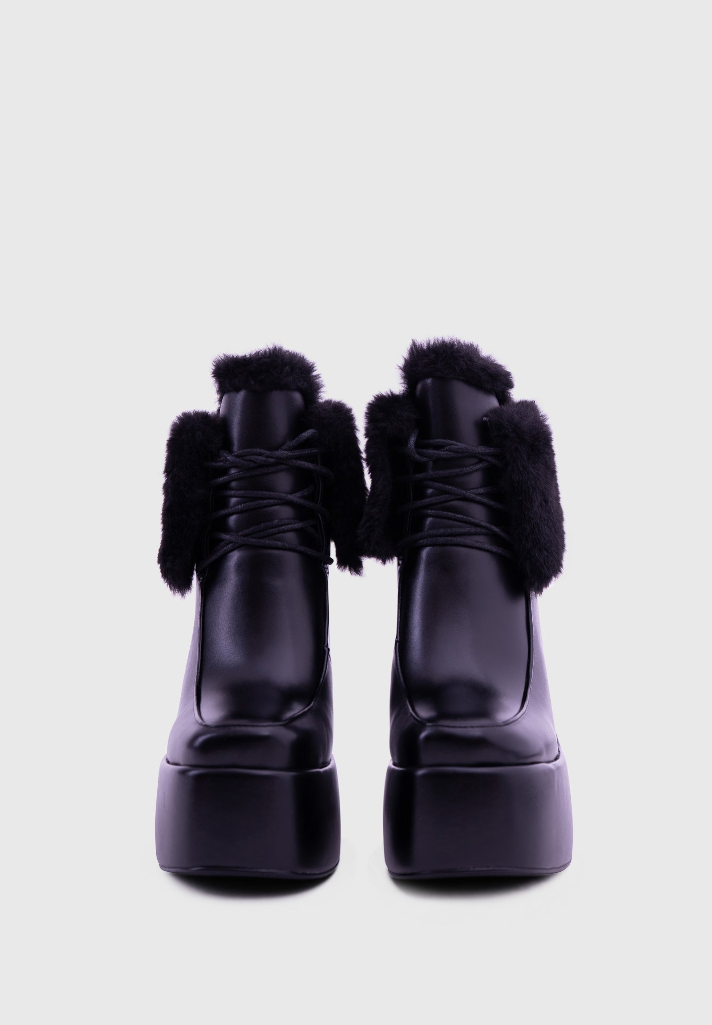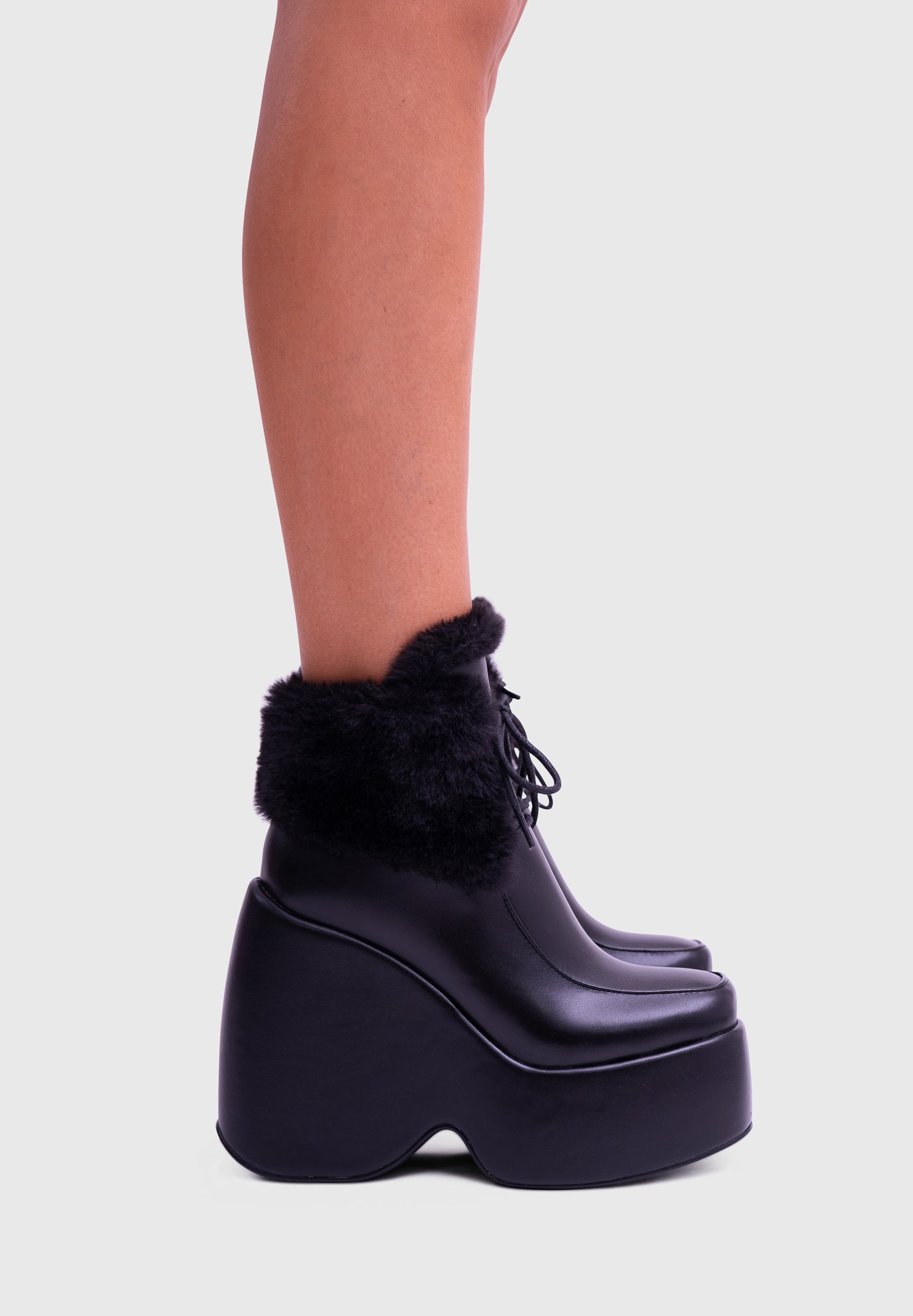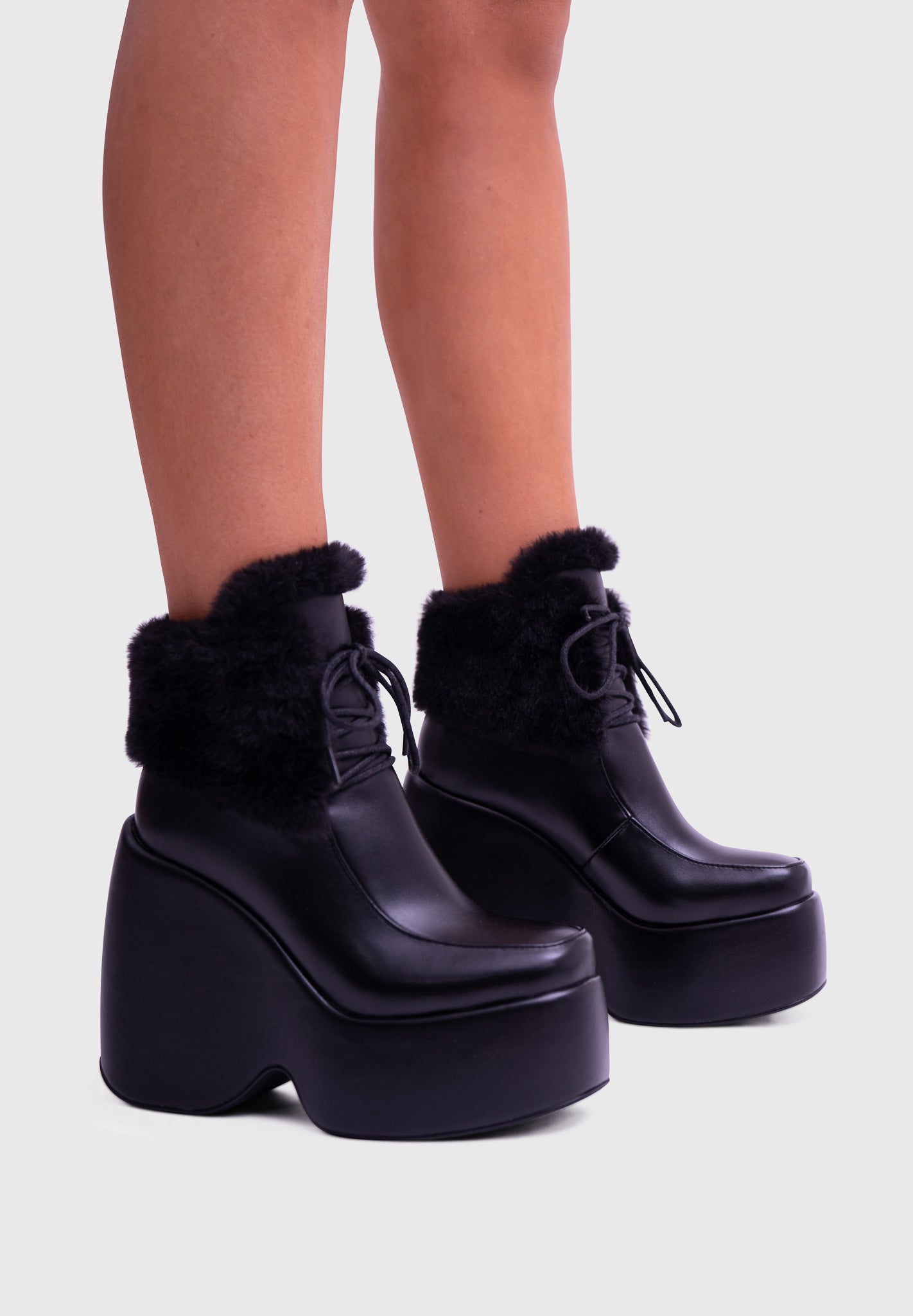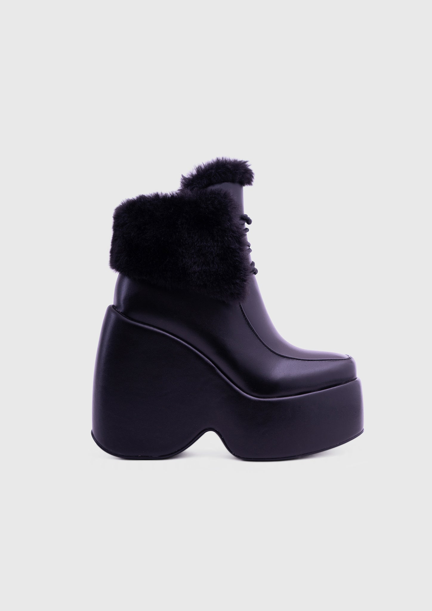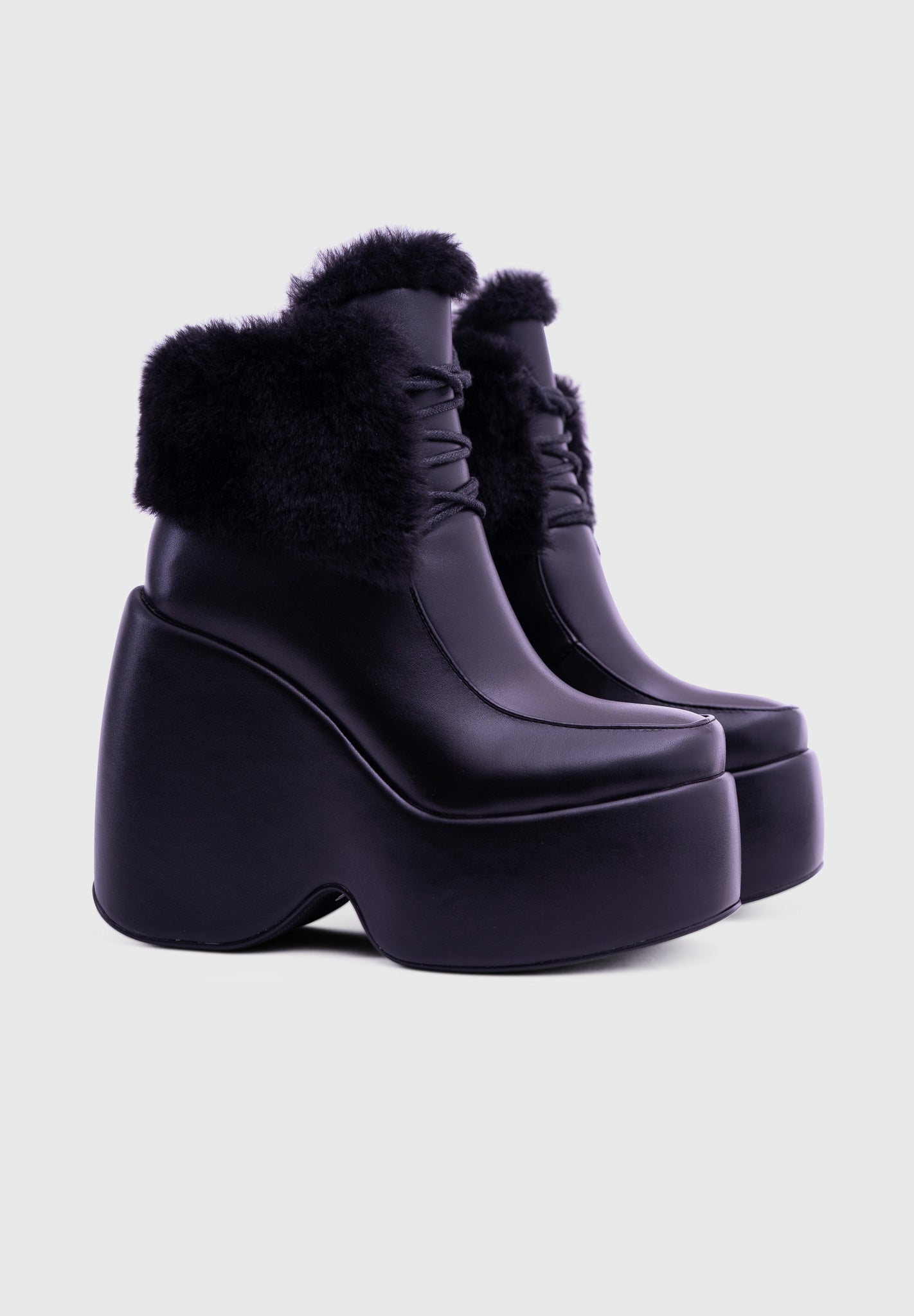 NOIRÉ Noir – Bottines compensées à lacets avec col en fausse fourrure douce