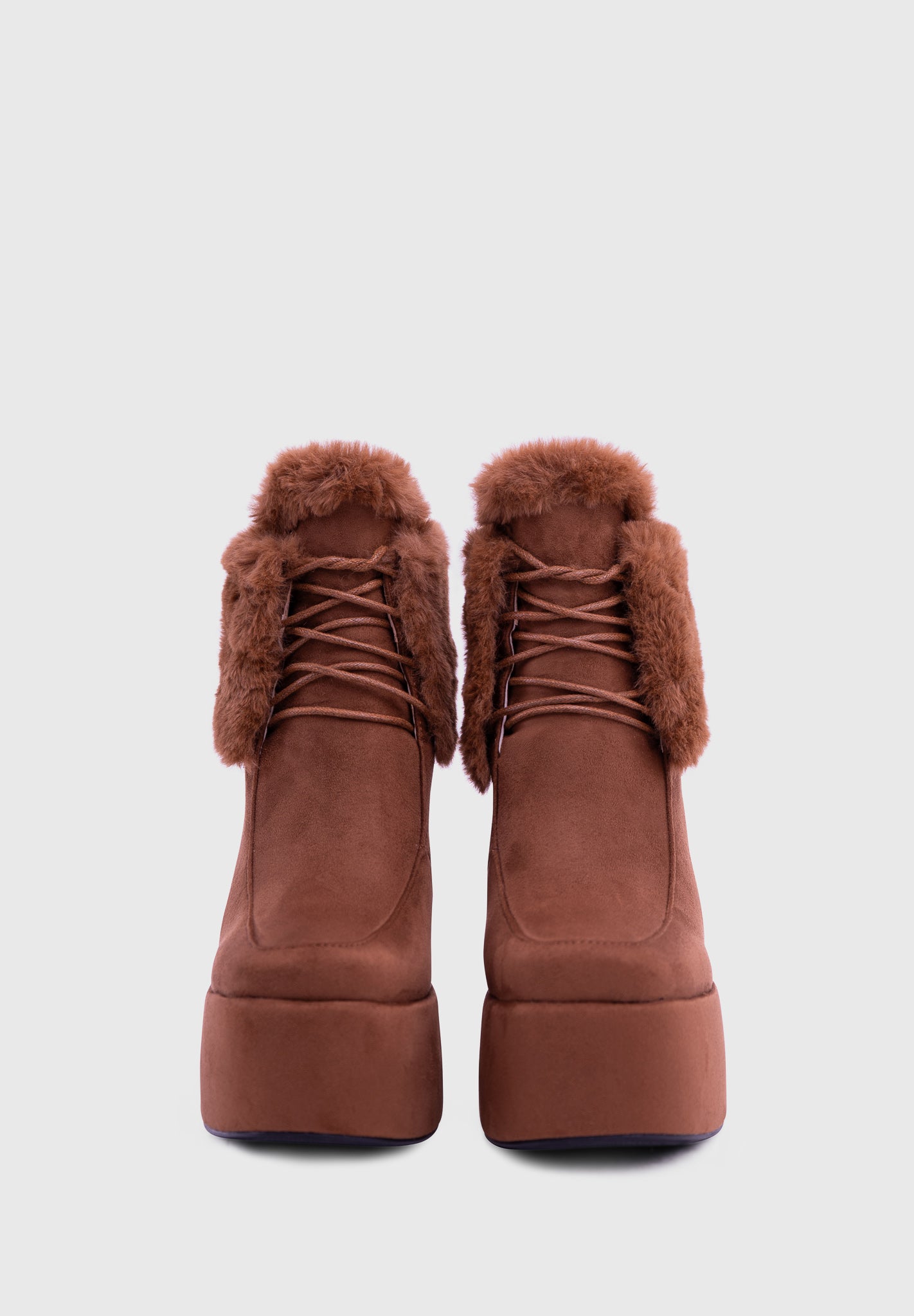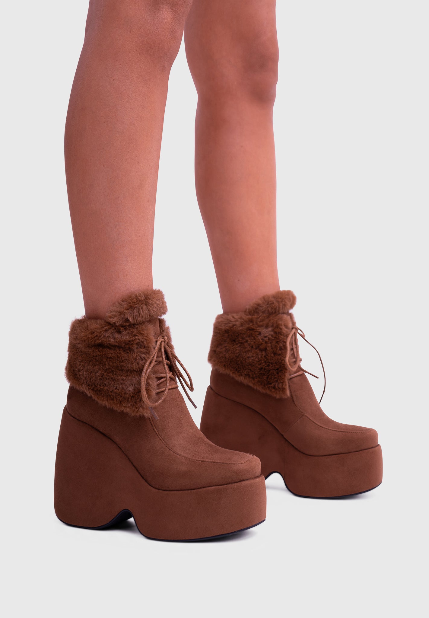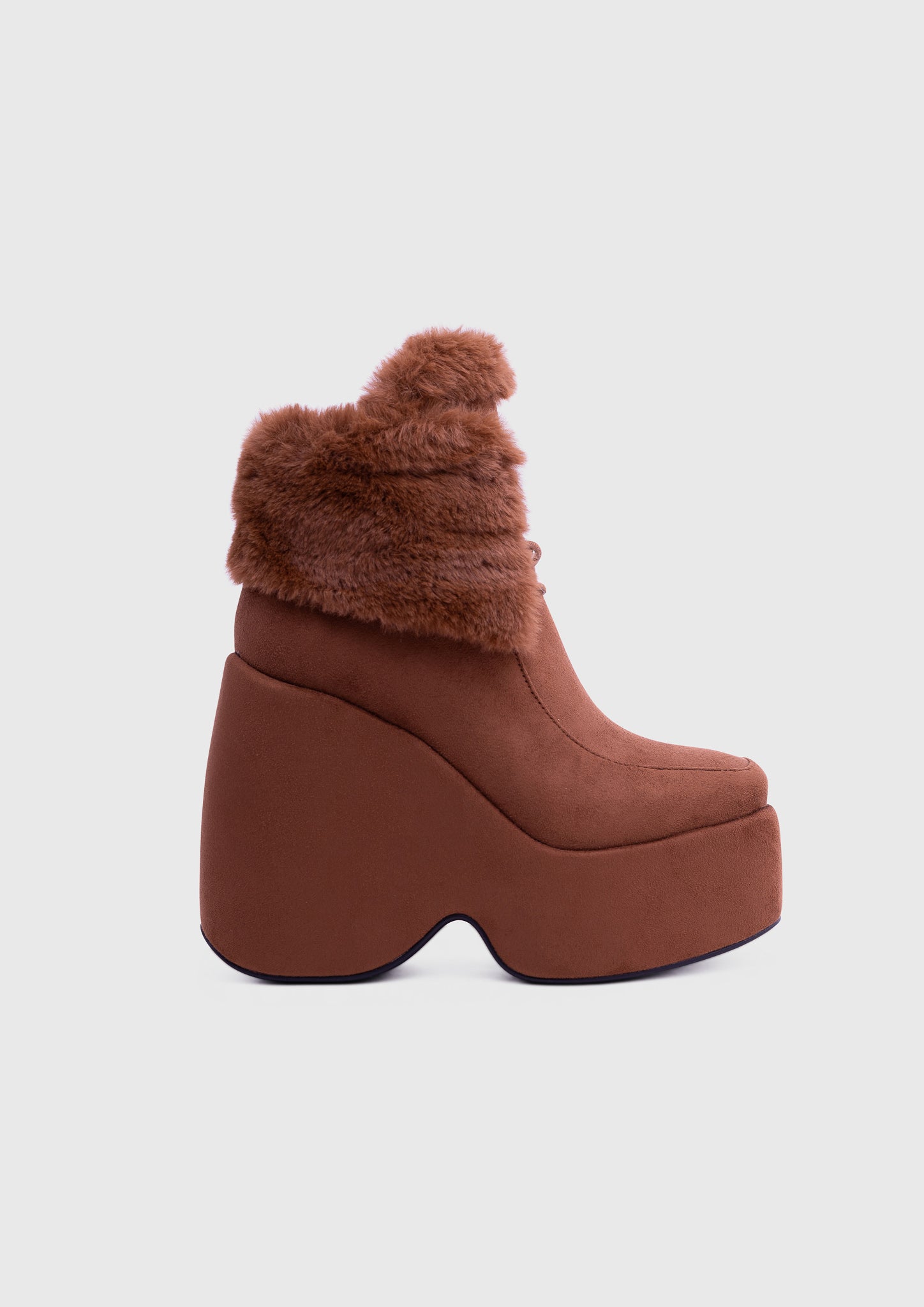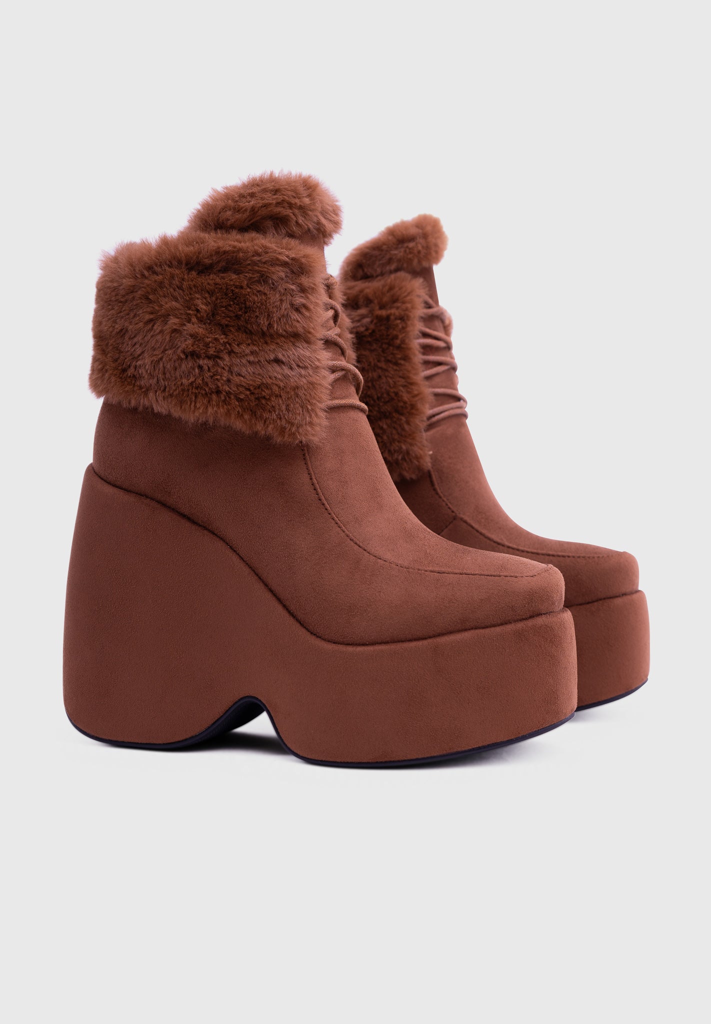 NOIRÉ Marron – Bottines compensées en suédine à lacets avec col en fausse fourrure douce