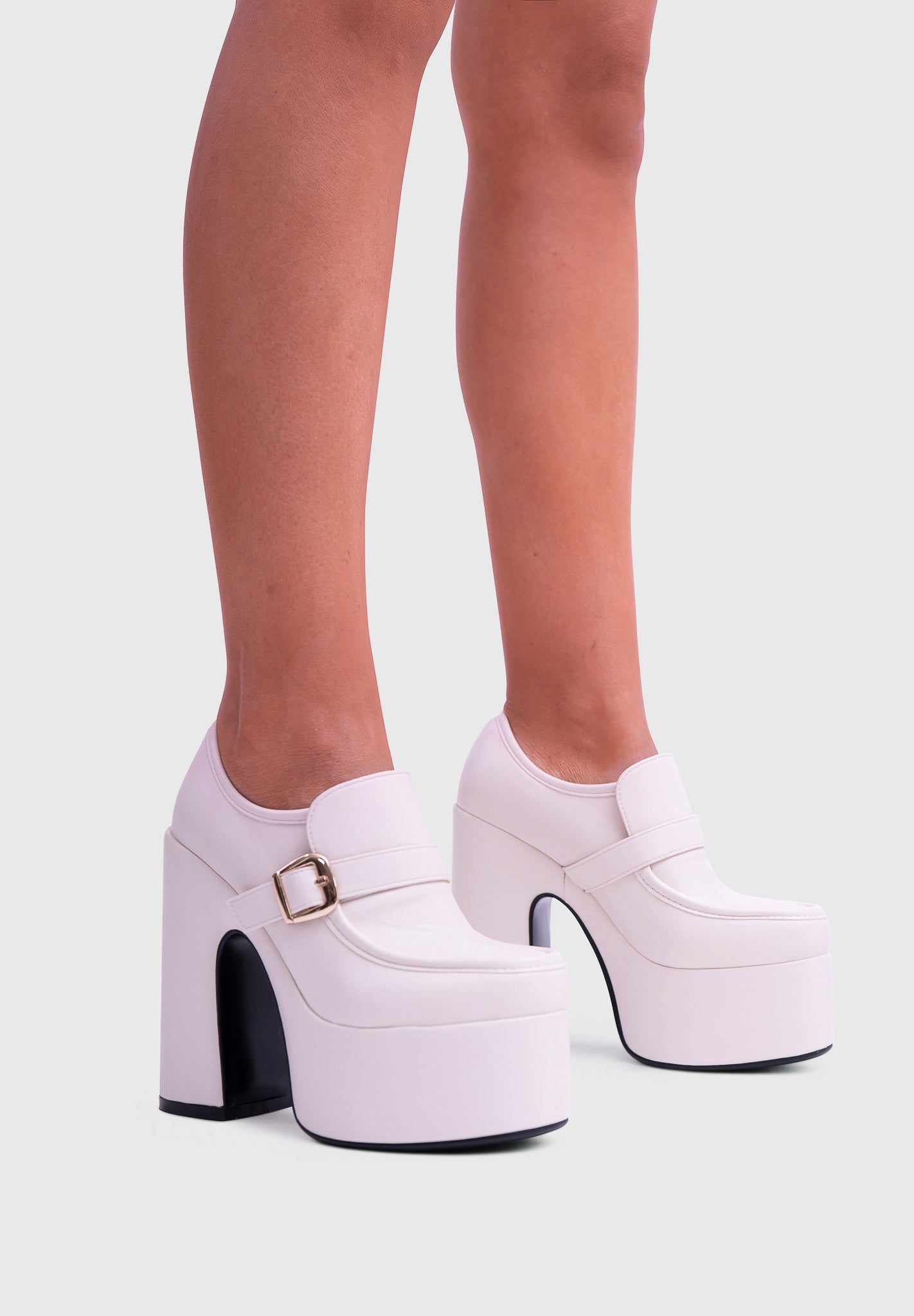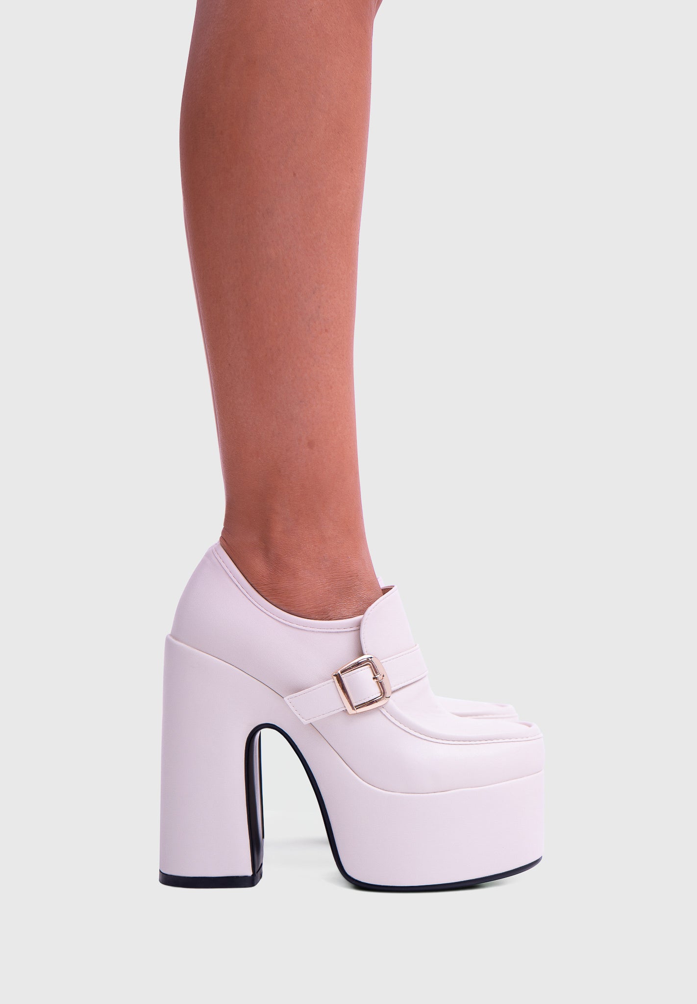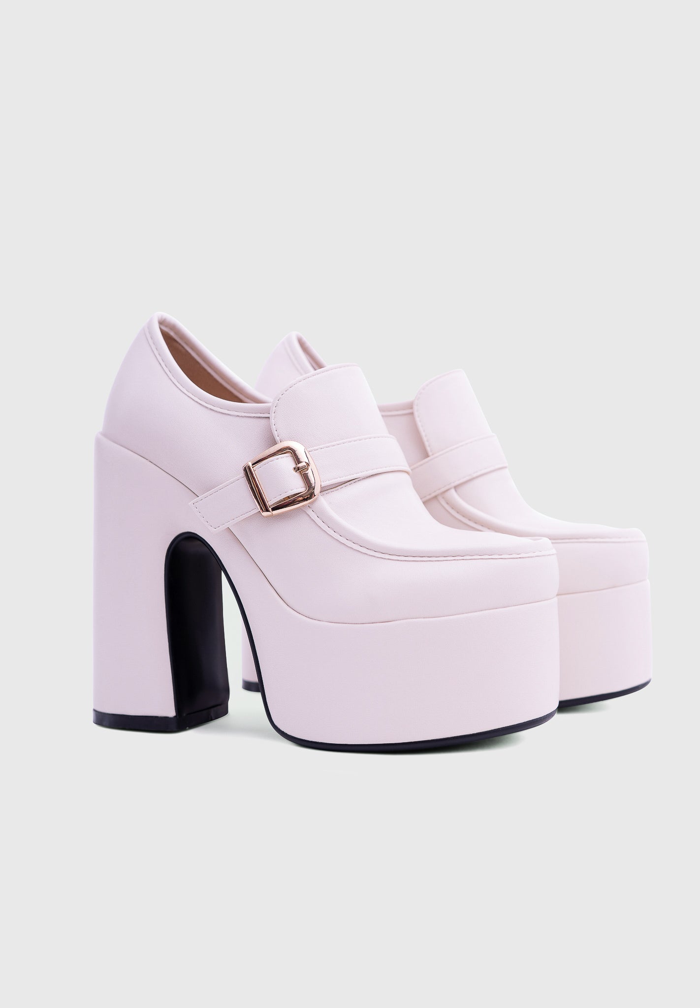 GAZE Blanc nacré – Mary Jane à plateforme, talon large, avec boucle carrée