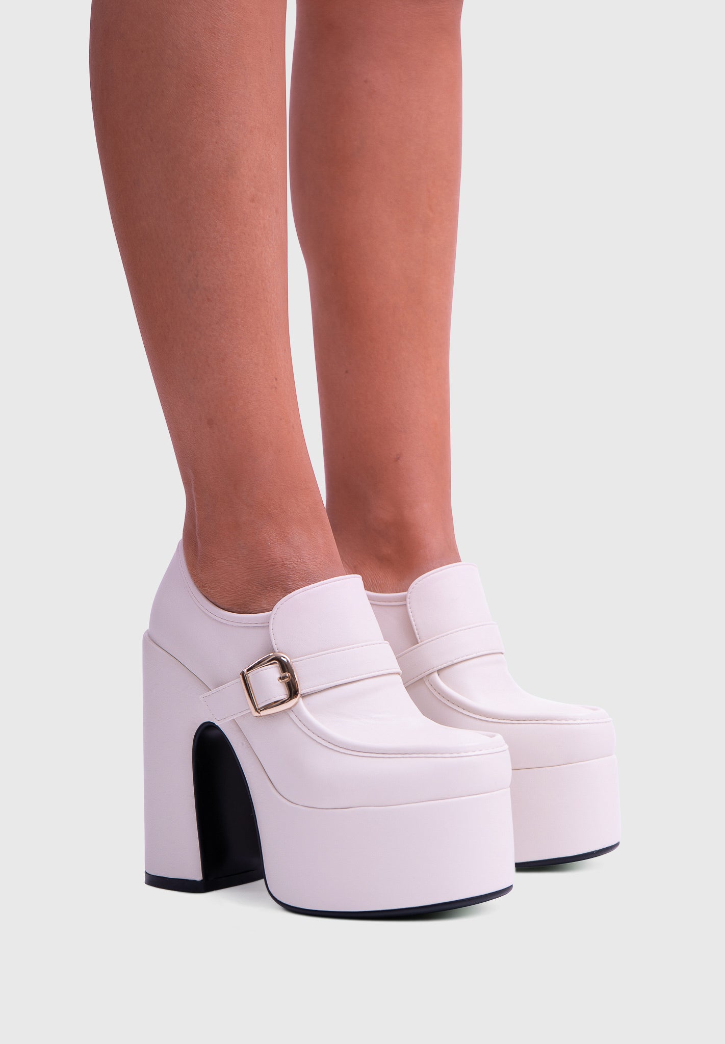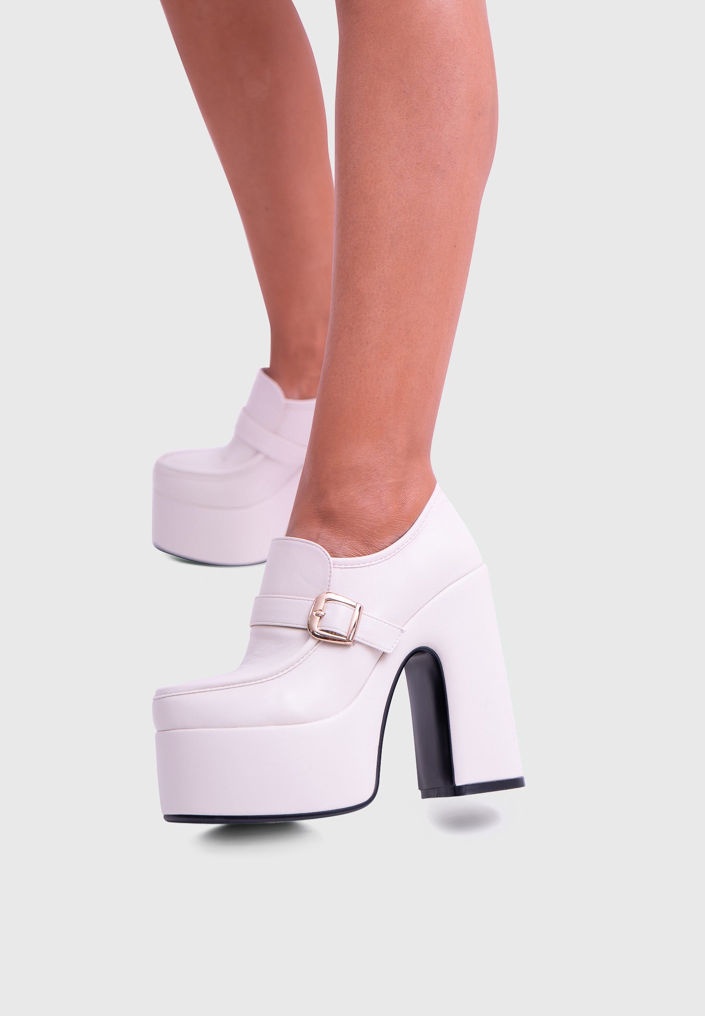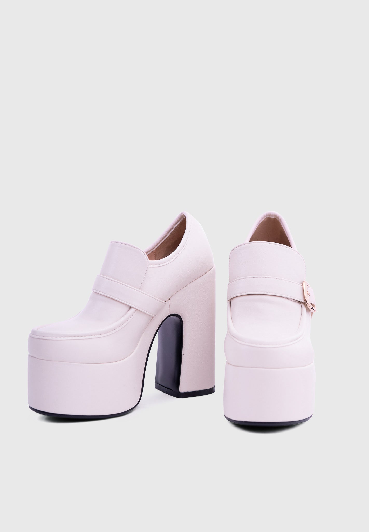 GAZE Blanc nacré – Mary Jane à plateforme, talon large, avec boucle carrée