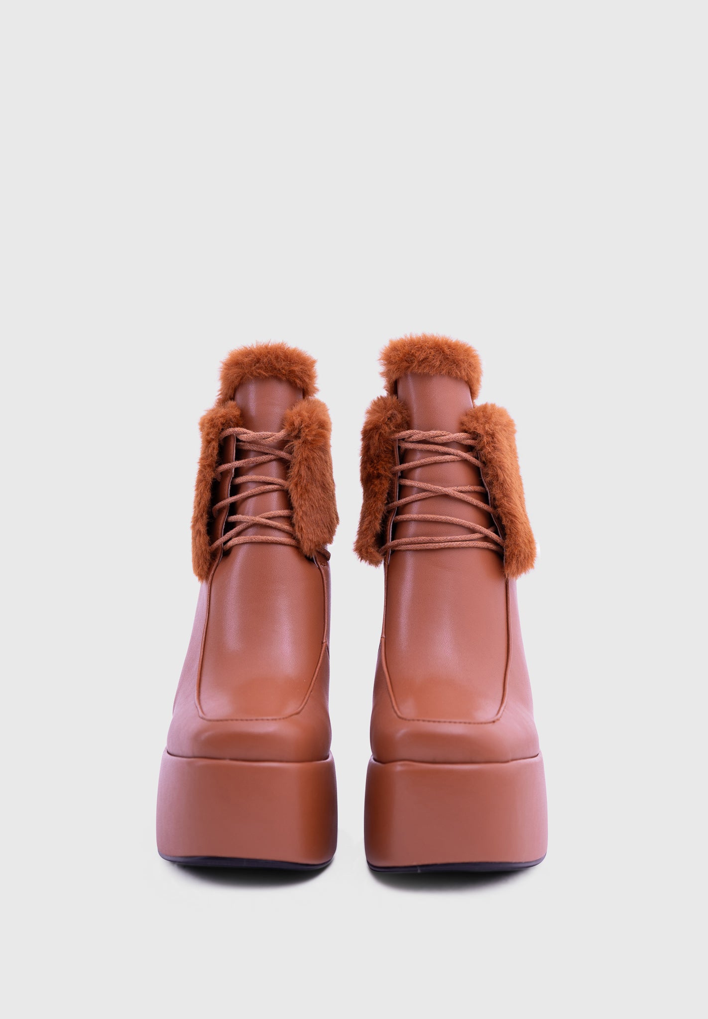 ECLIPSE Marron – Bottines mi-mollet en similicuir à plateforme haute