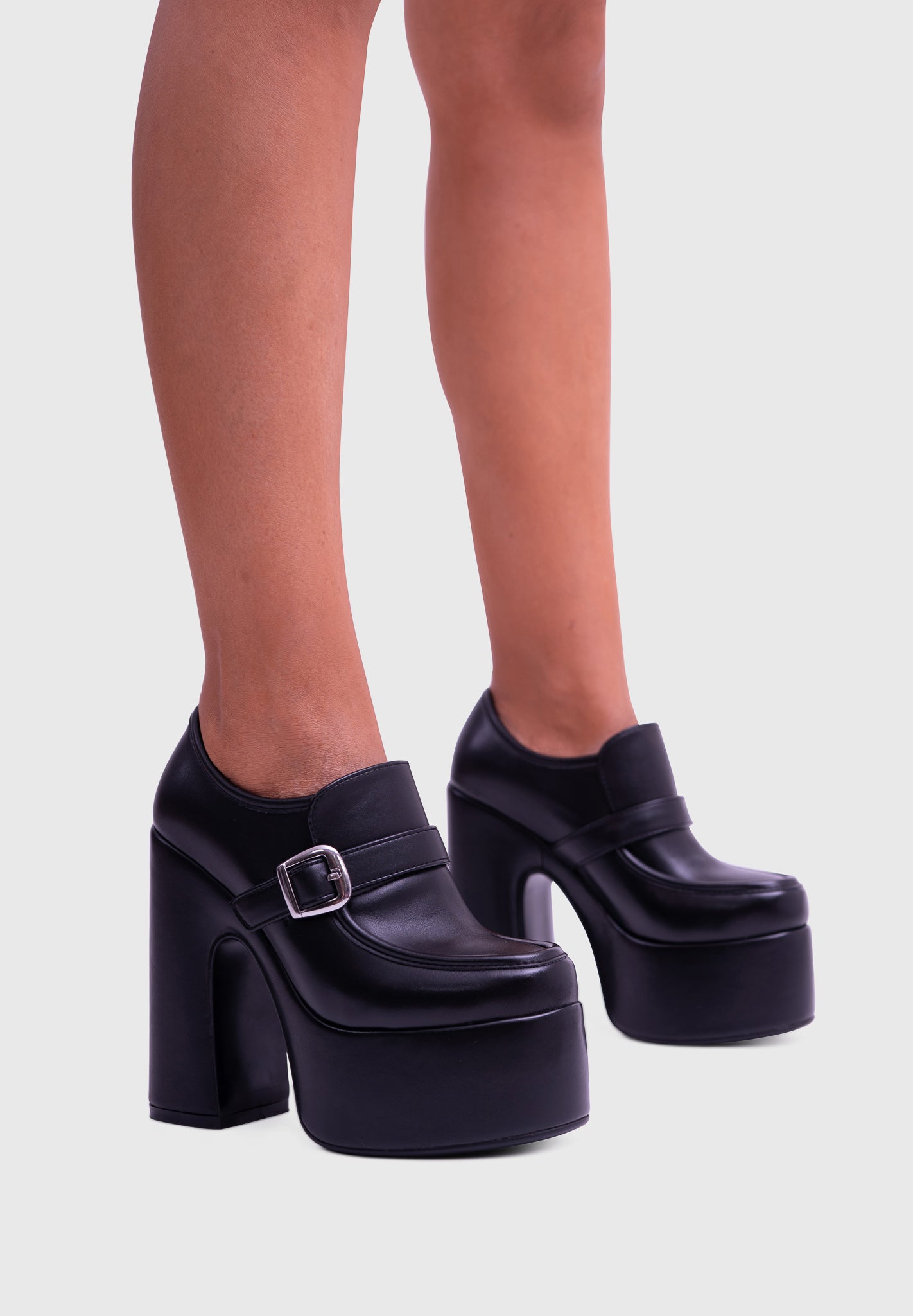 GAZE Noir – Mary Jane à plateforme, talon large, avec boucle carrée