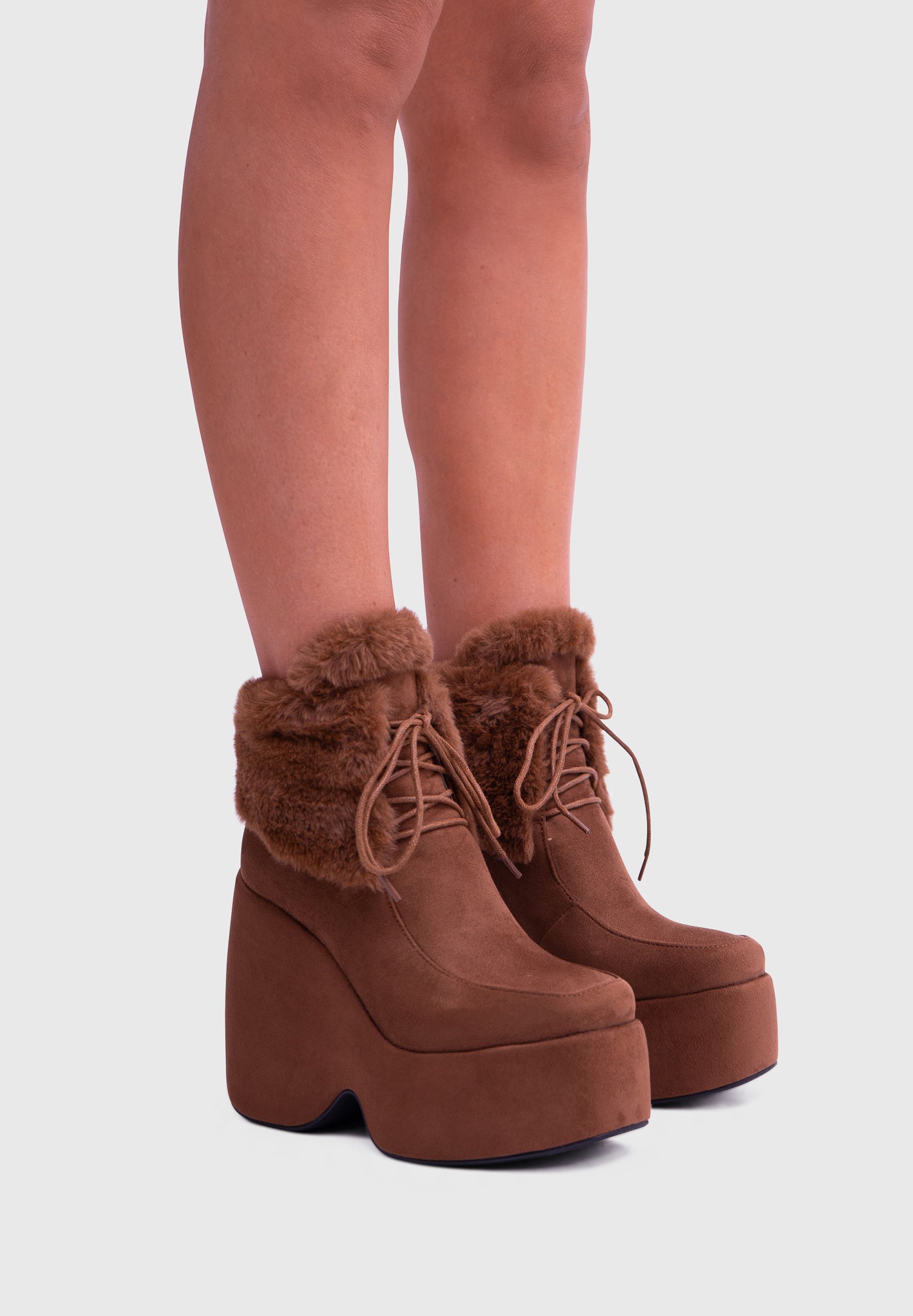 NOIRÉ Camel – Bottines compensées en suédine à lacets avec col en fausse fourrure douce