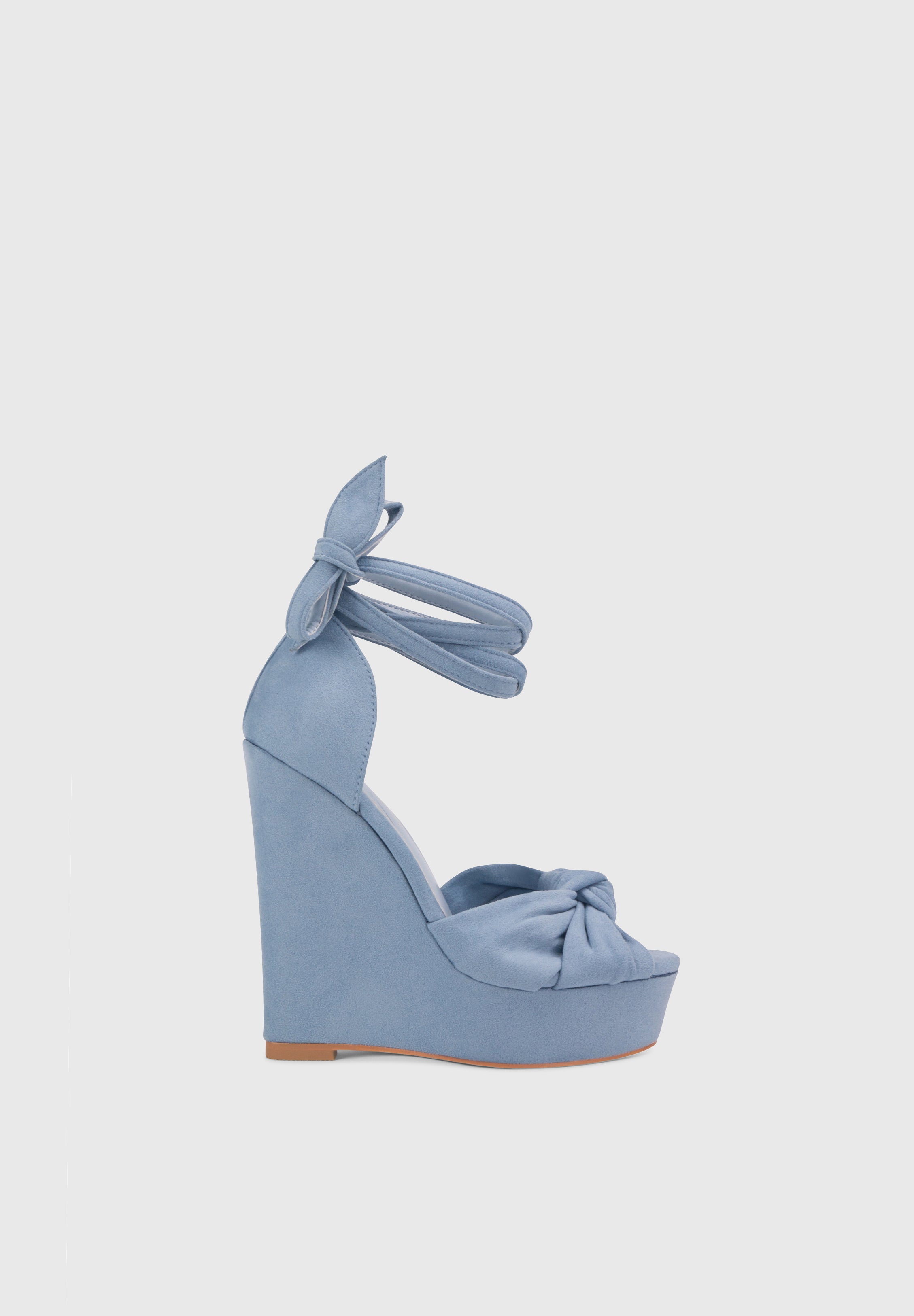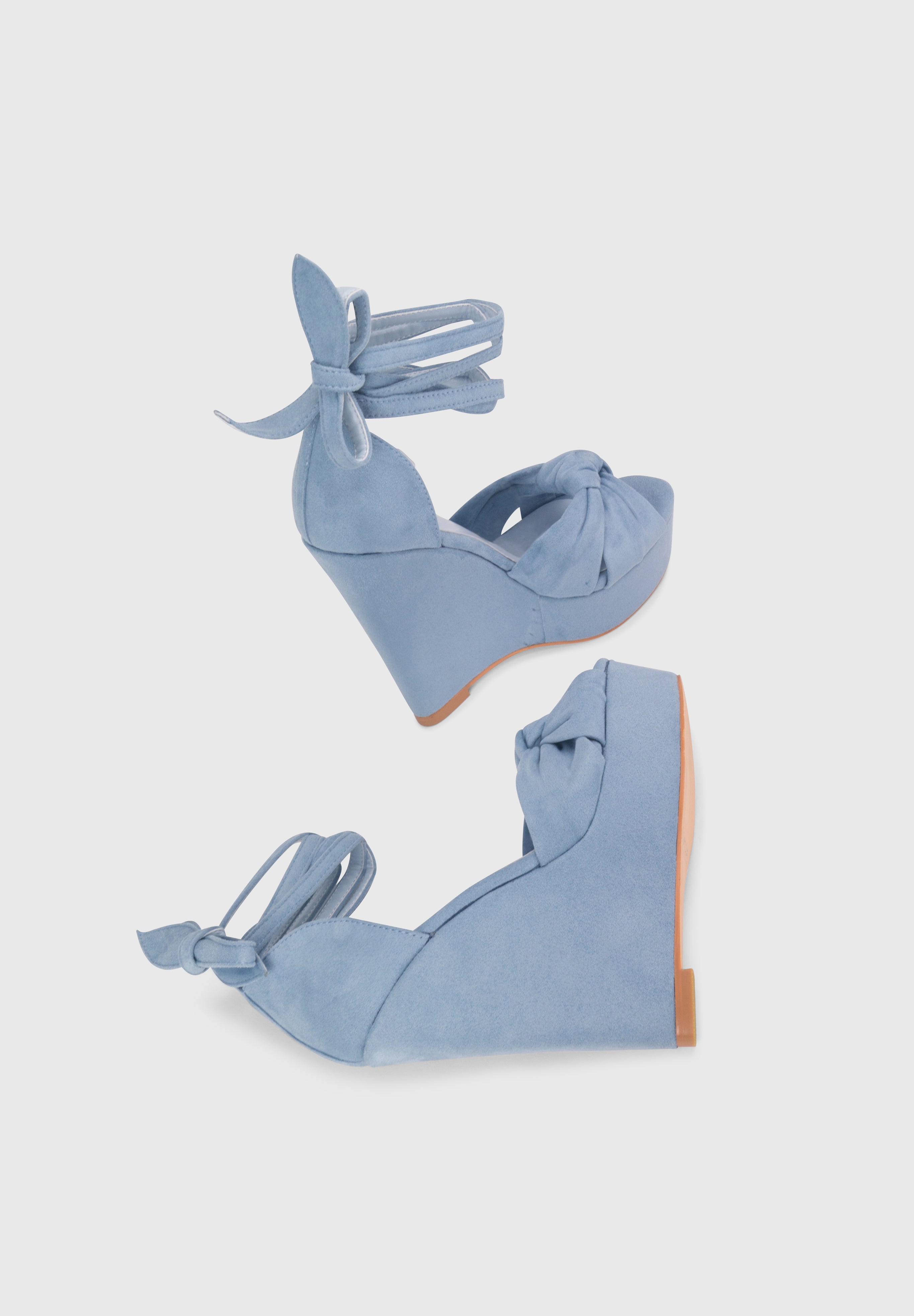 ALARA Baby Blu - Sandali similcamoscio con lacci zeppa tacco 15 cm