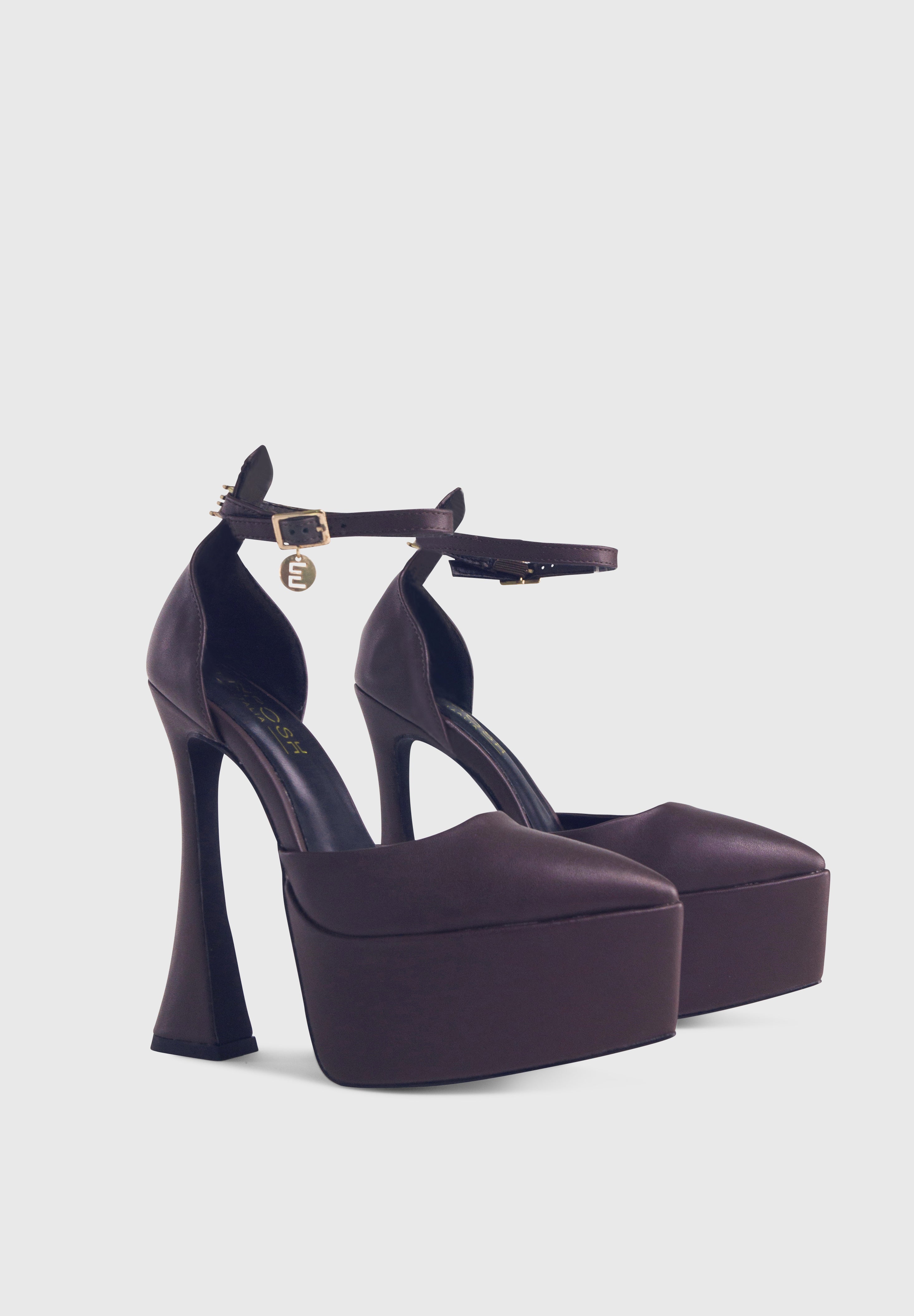 EILY Marron foncé - Escarpins talons hauts plateforme pointue en forme de sablier