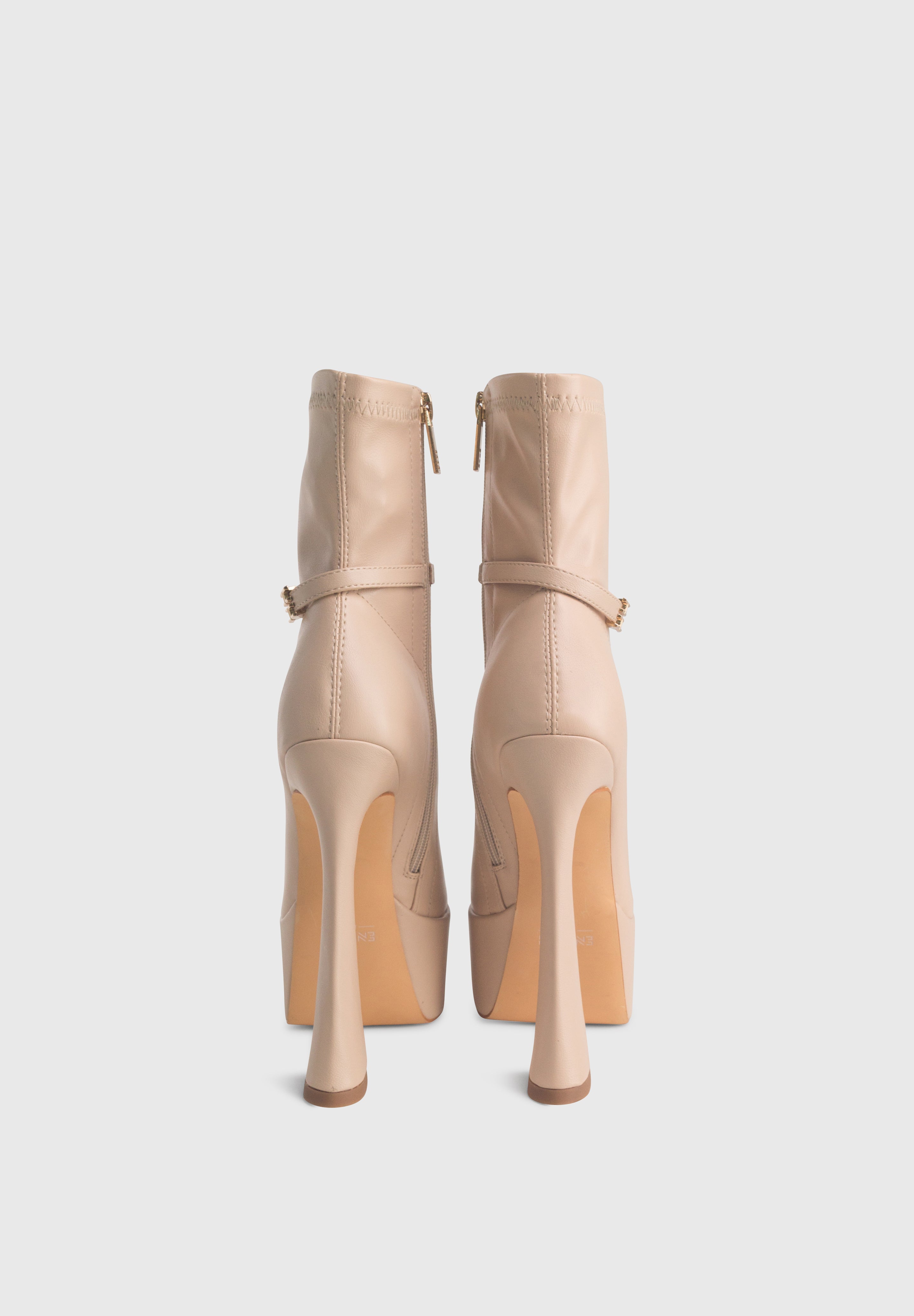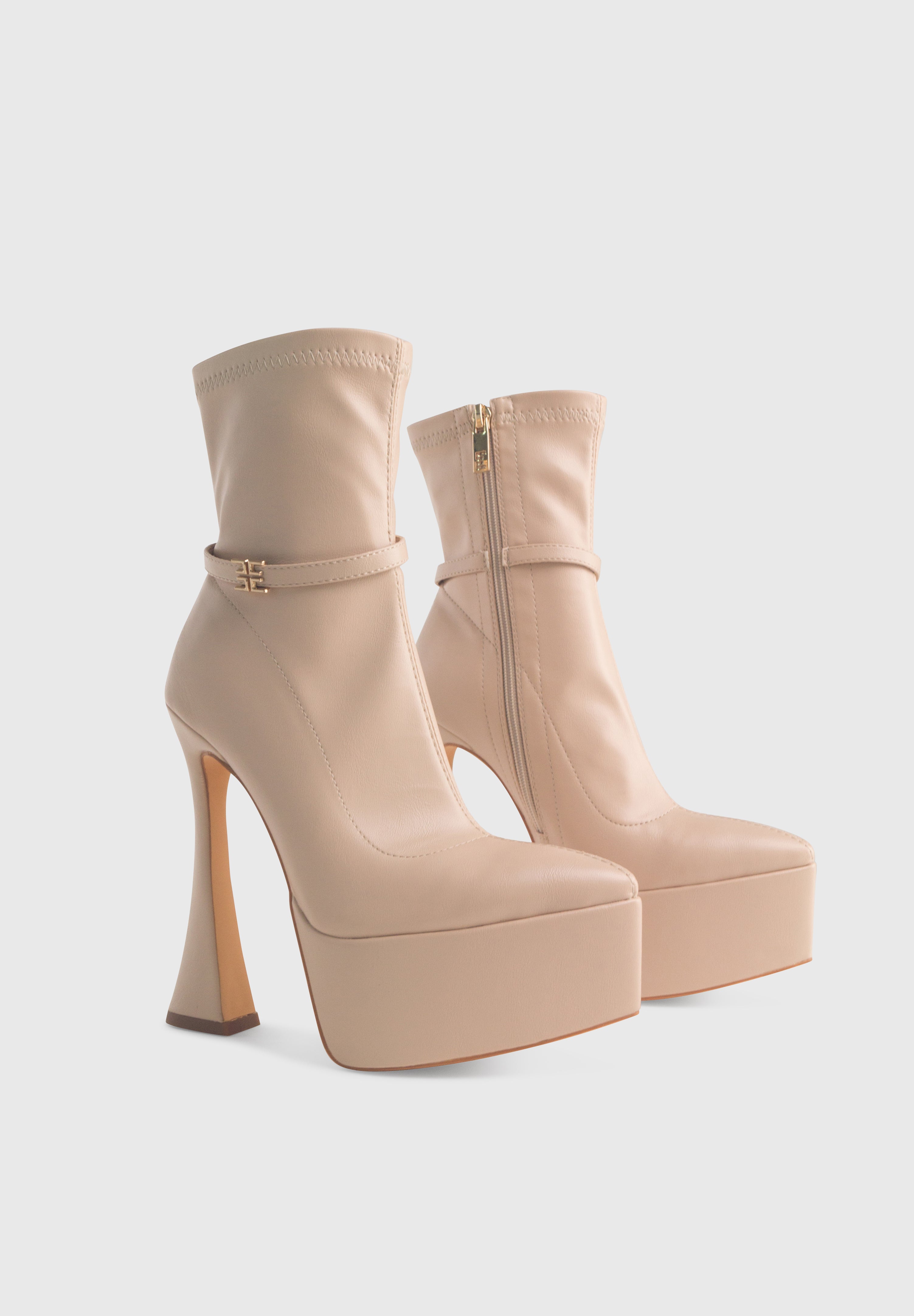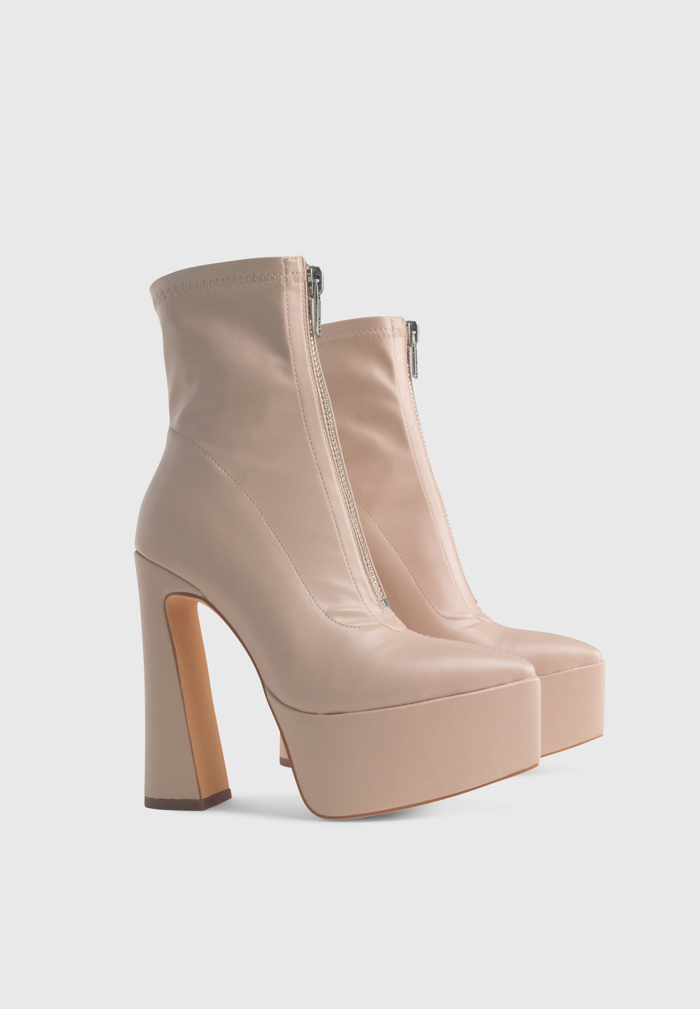 MADISON Beige - Bottines stretch à plateforme haute talon large zip central