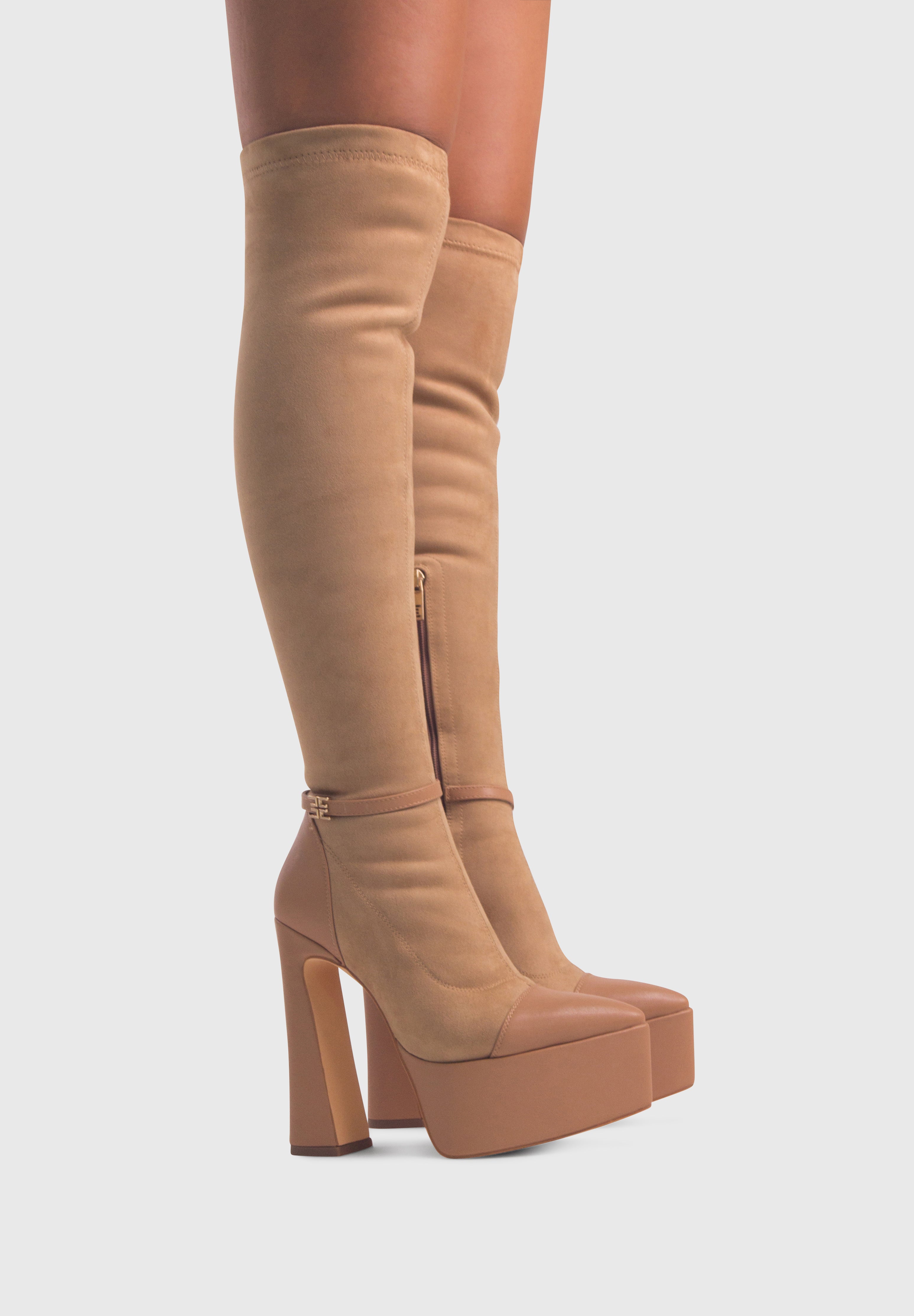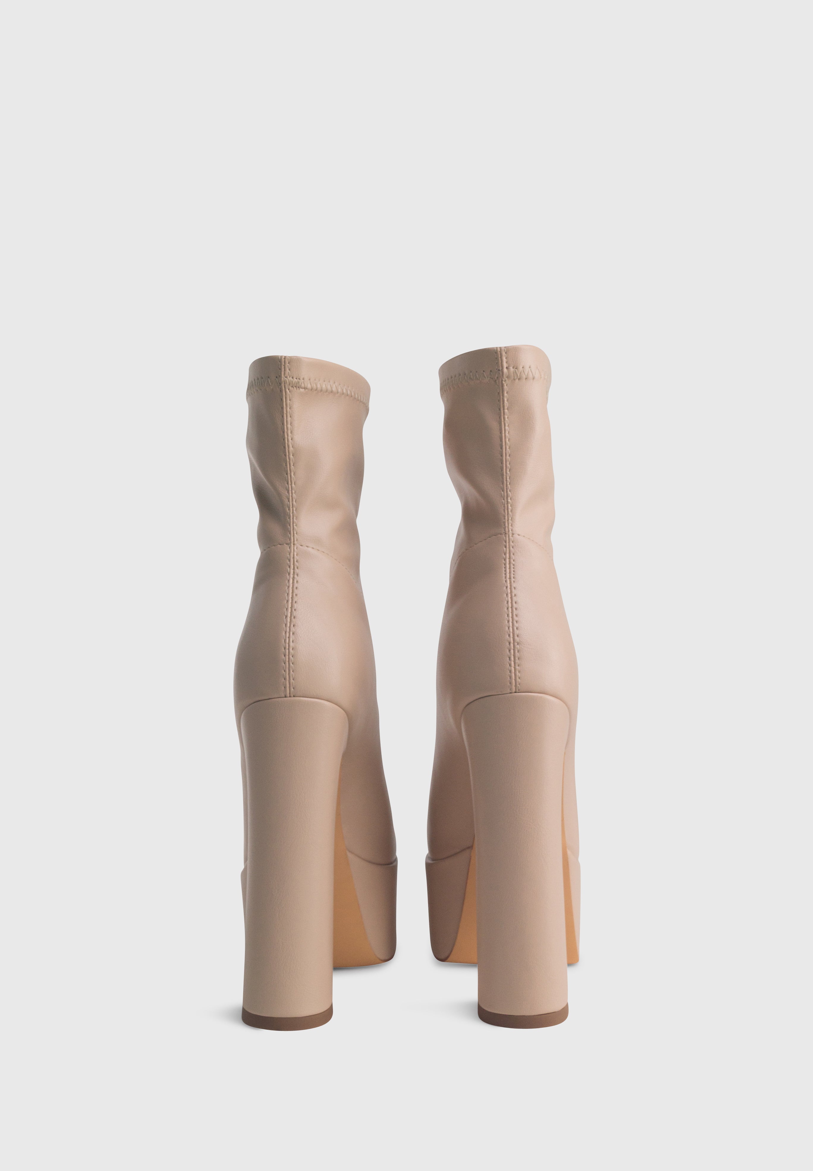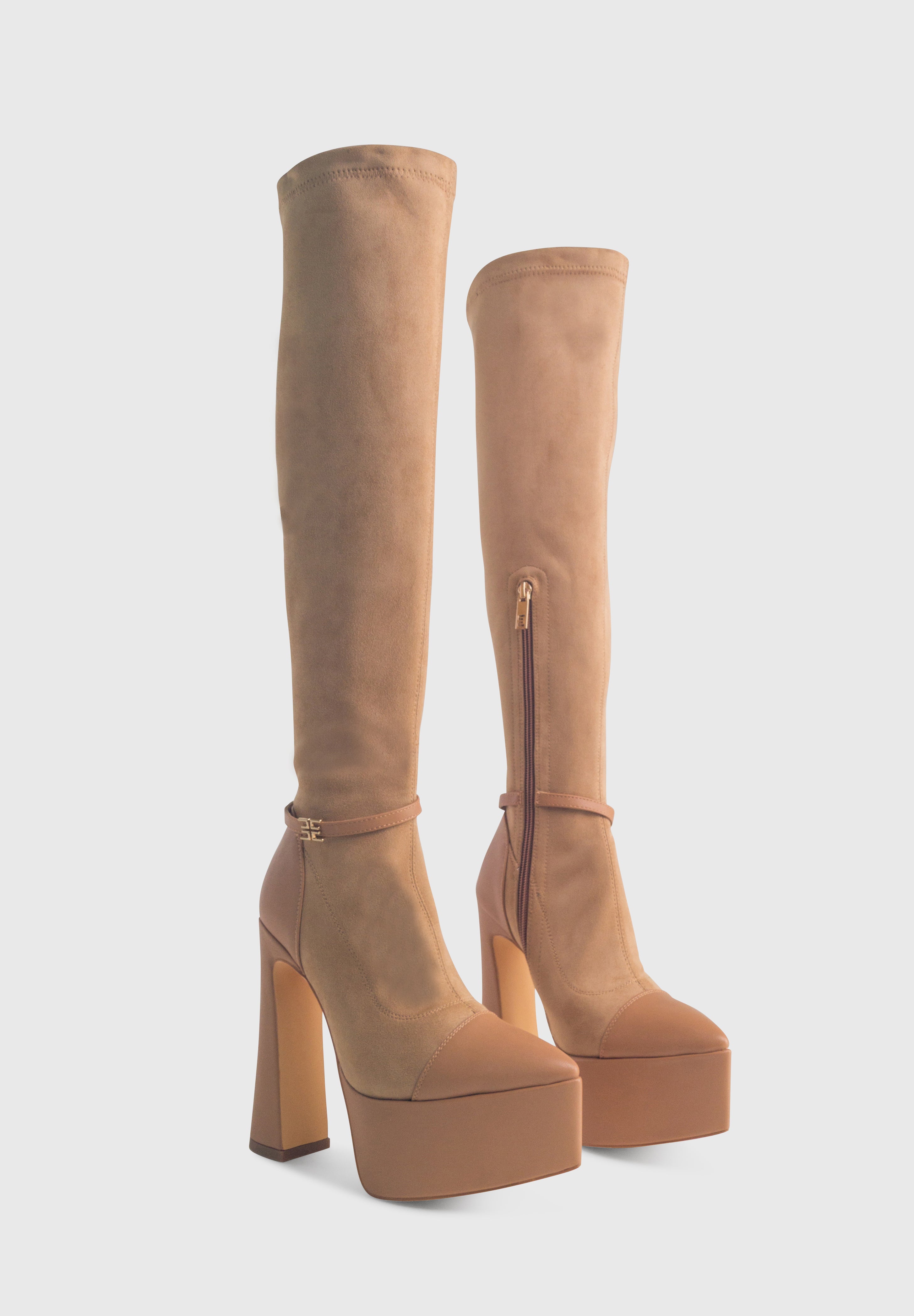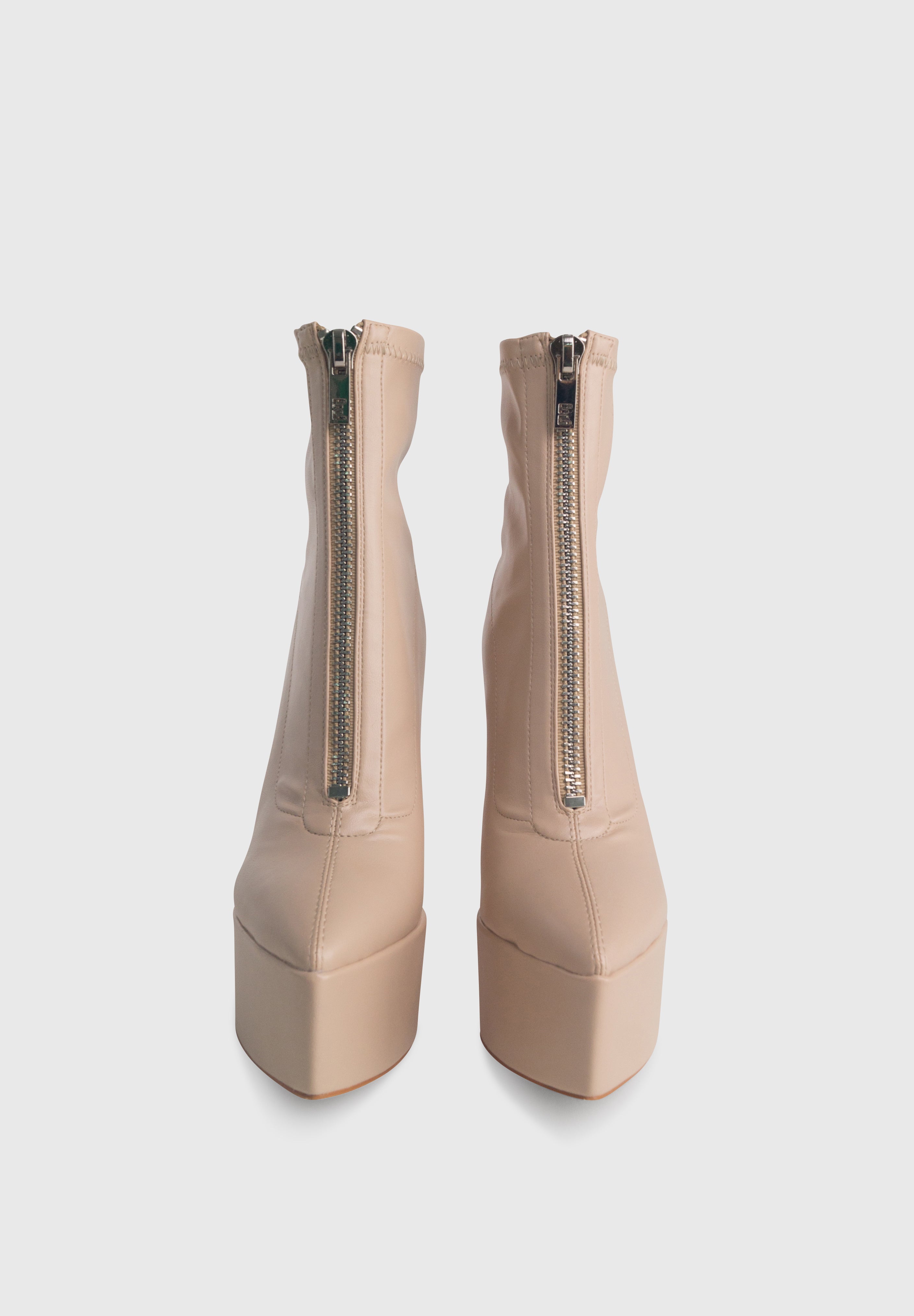 MADISON Beige - Bottines stretch à plateforme haute talon large zip central