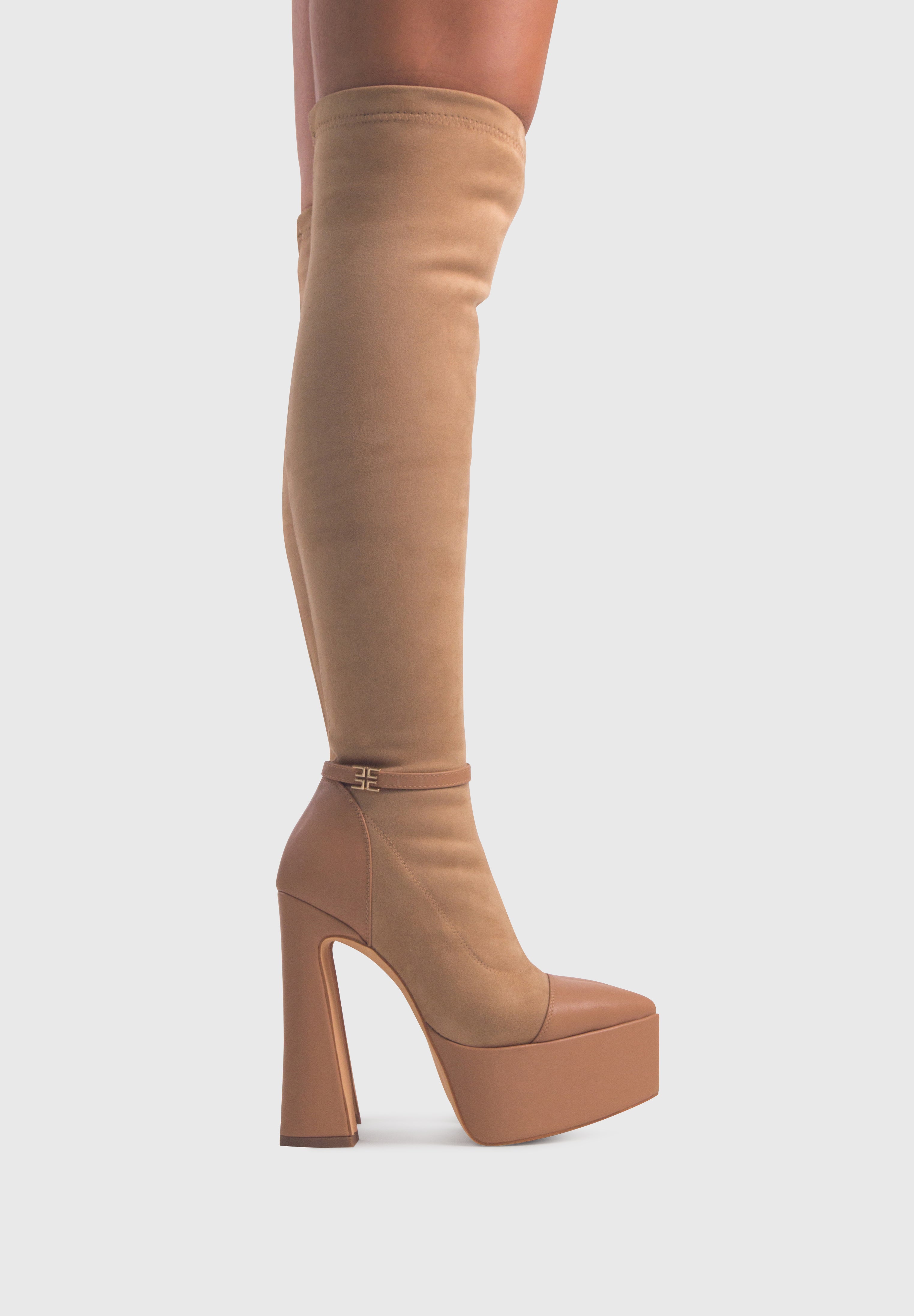 FLAMMA Camel – Bottes jusqu’au genou en similicuir à plateforme haute avec boucle amovible