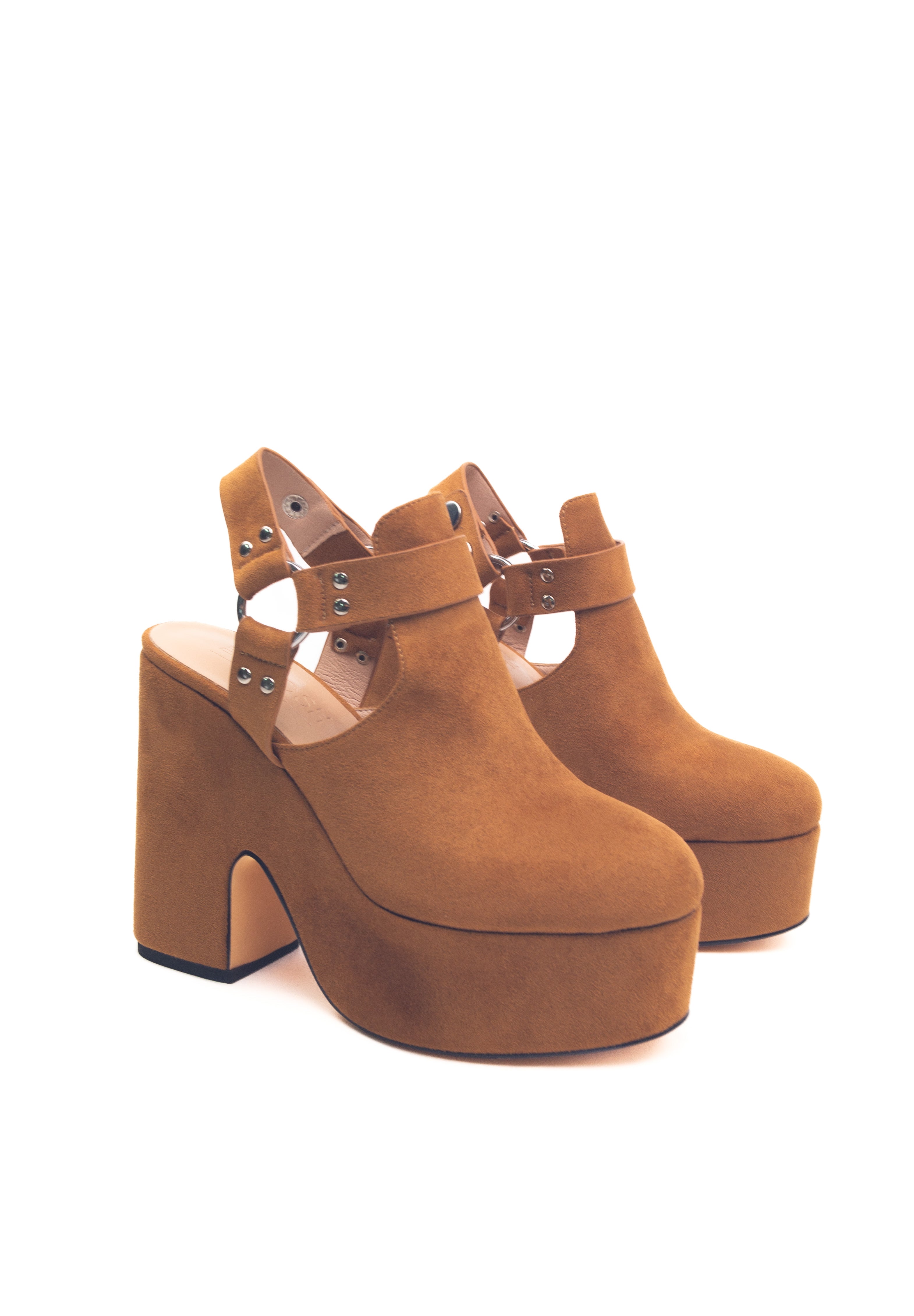 Mivelle Camel – Chaussures à talon large et plateforme