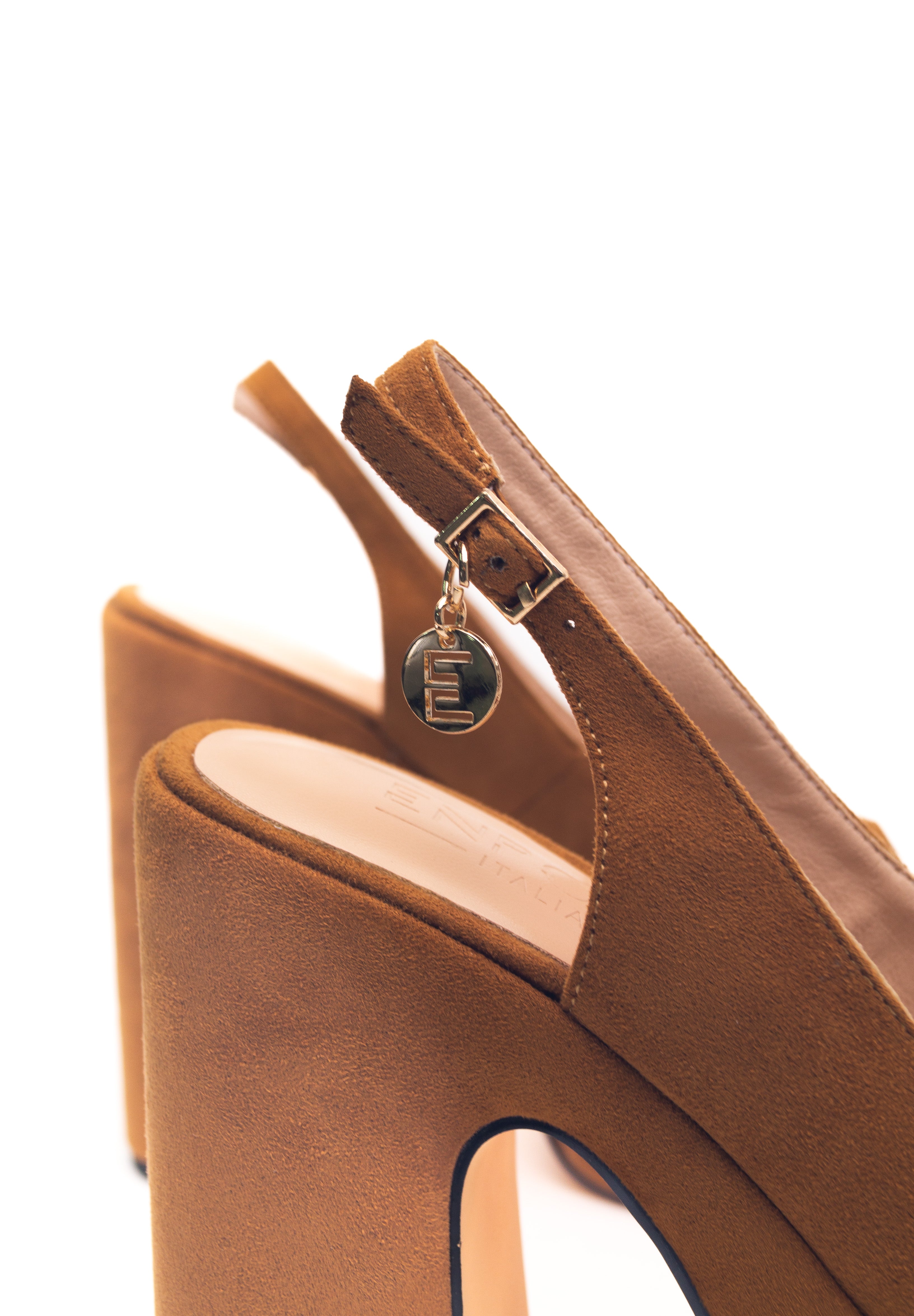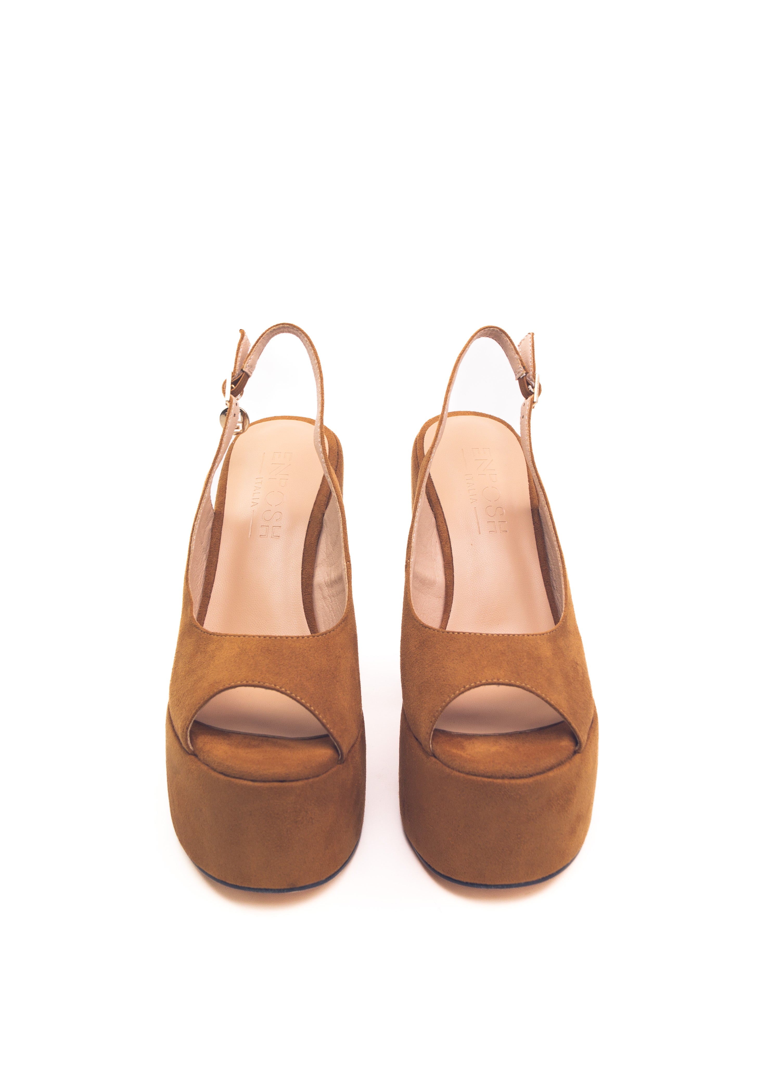 Naylen Camel – Slingback ouverte avec talon large et plateforme