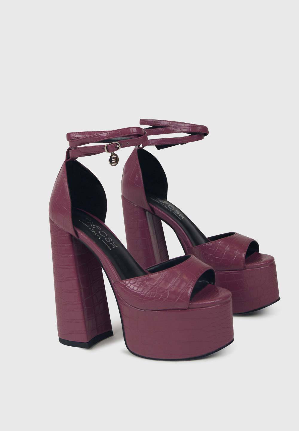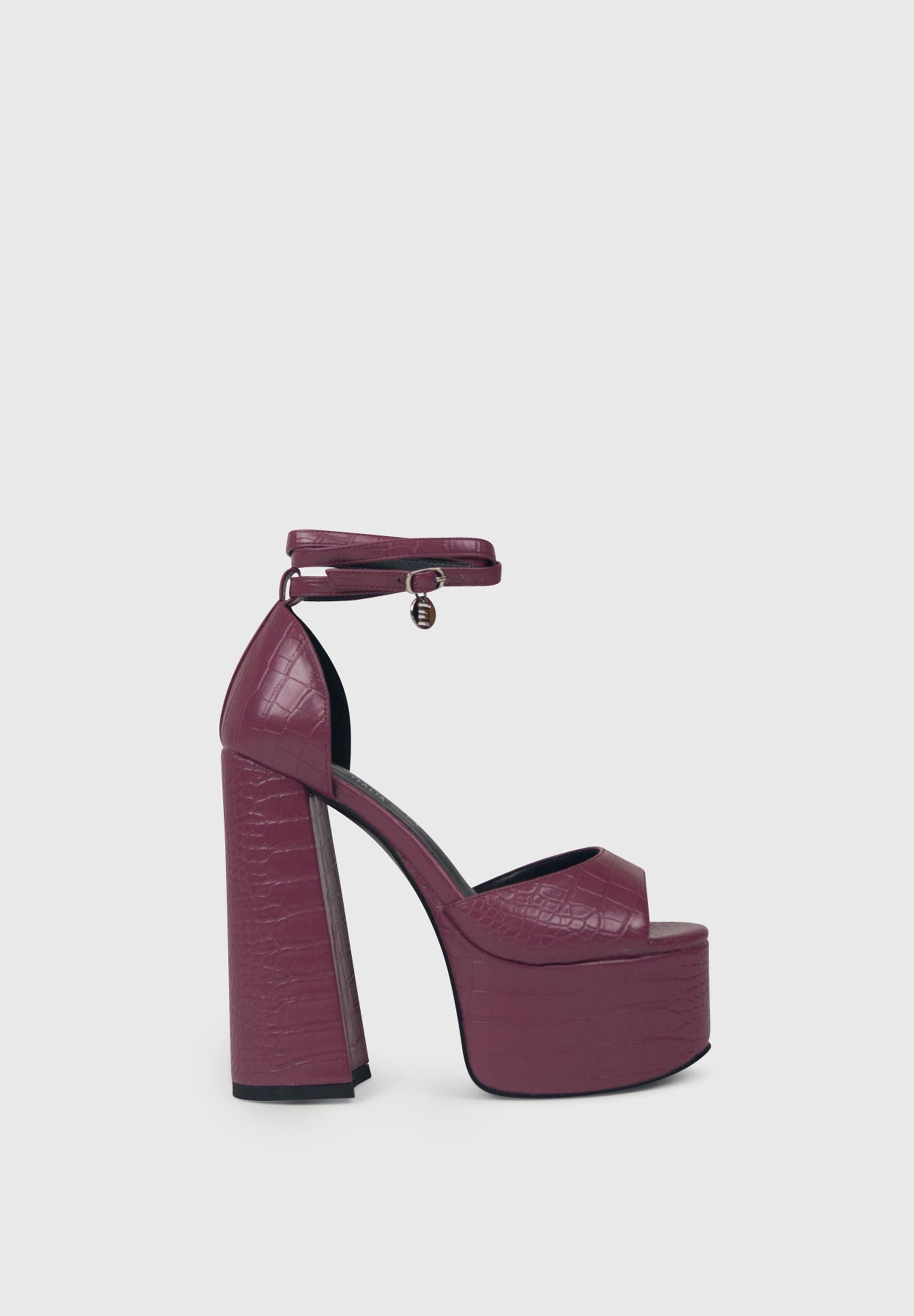 NATY Mauve Croc - Sandales hautes plateforme à lacets cheville