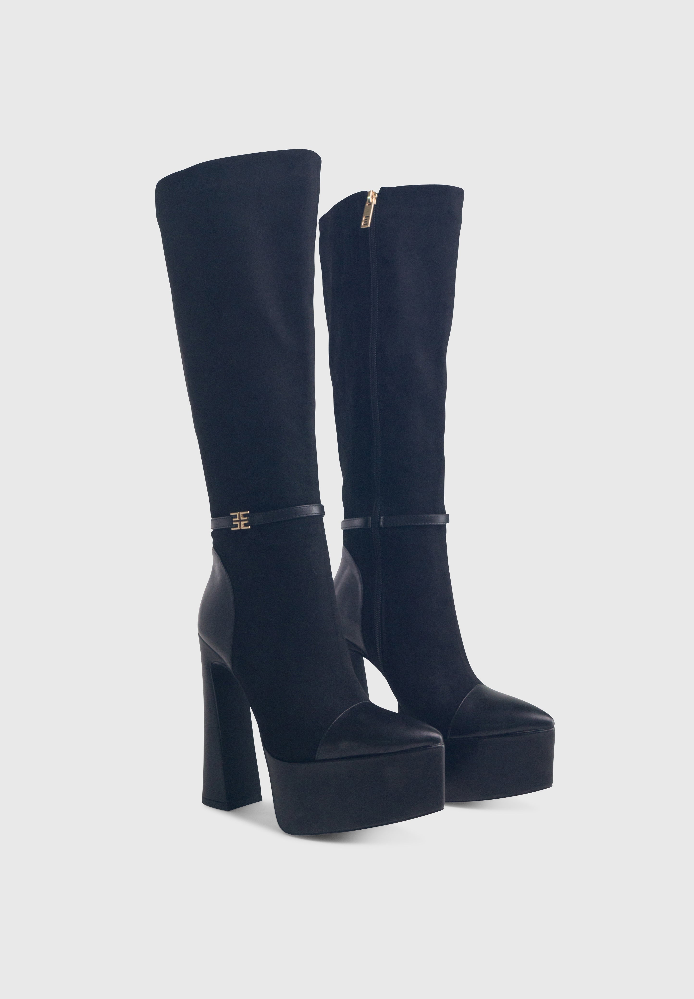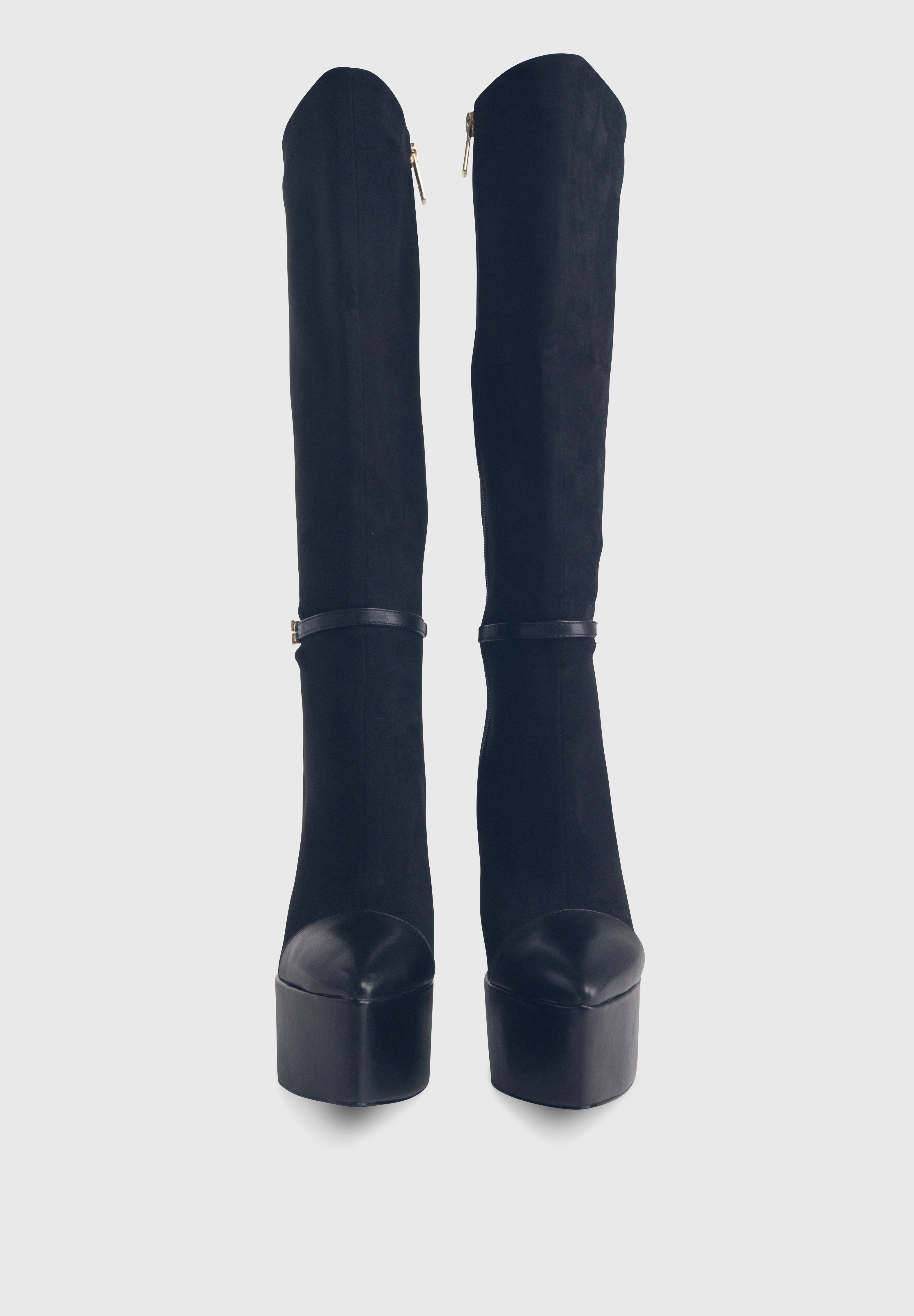 ARIANA Nero - Stivali al ginocchio a punta tacco largo plateau alto