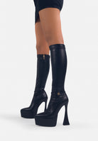 Gli stivali alti al ginocchio con plateau a punta e tacco sottile a clessidra Bryanna, sono una creazione che combina stile e comfort. Il plateau a punta assicura il massimo comfort, mentre il tacco alto a clessidra dona un'eleganza inconfondibile a ogni passo.