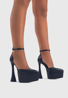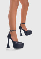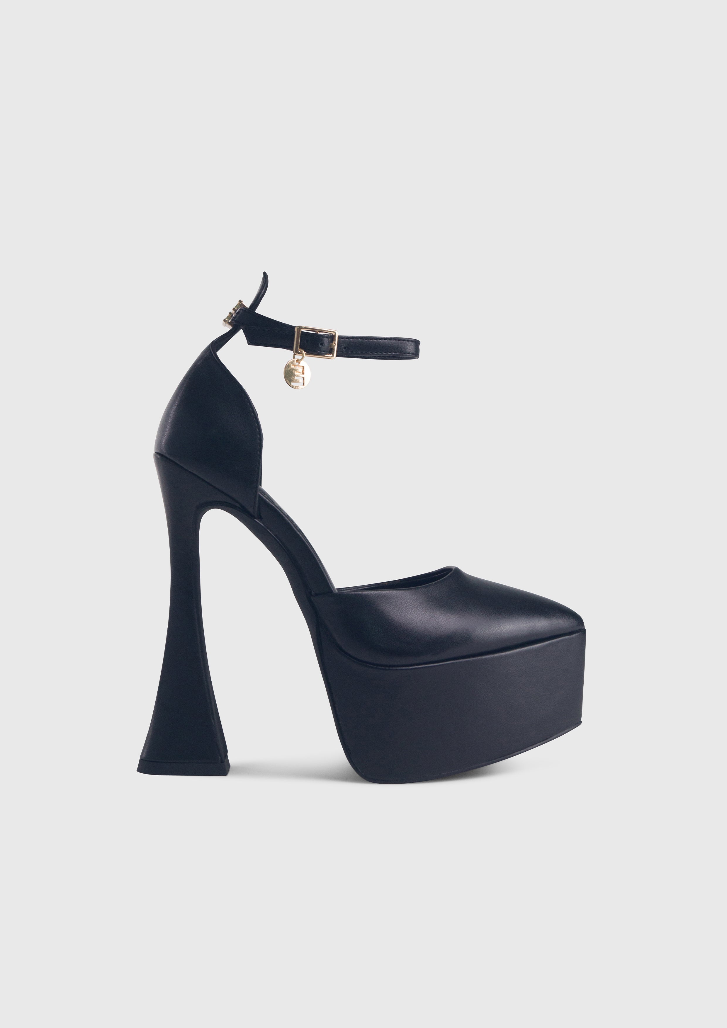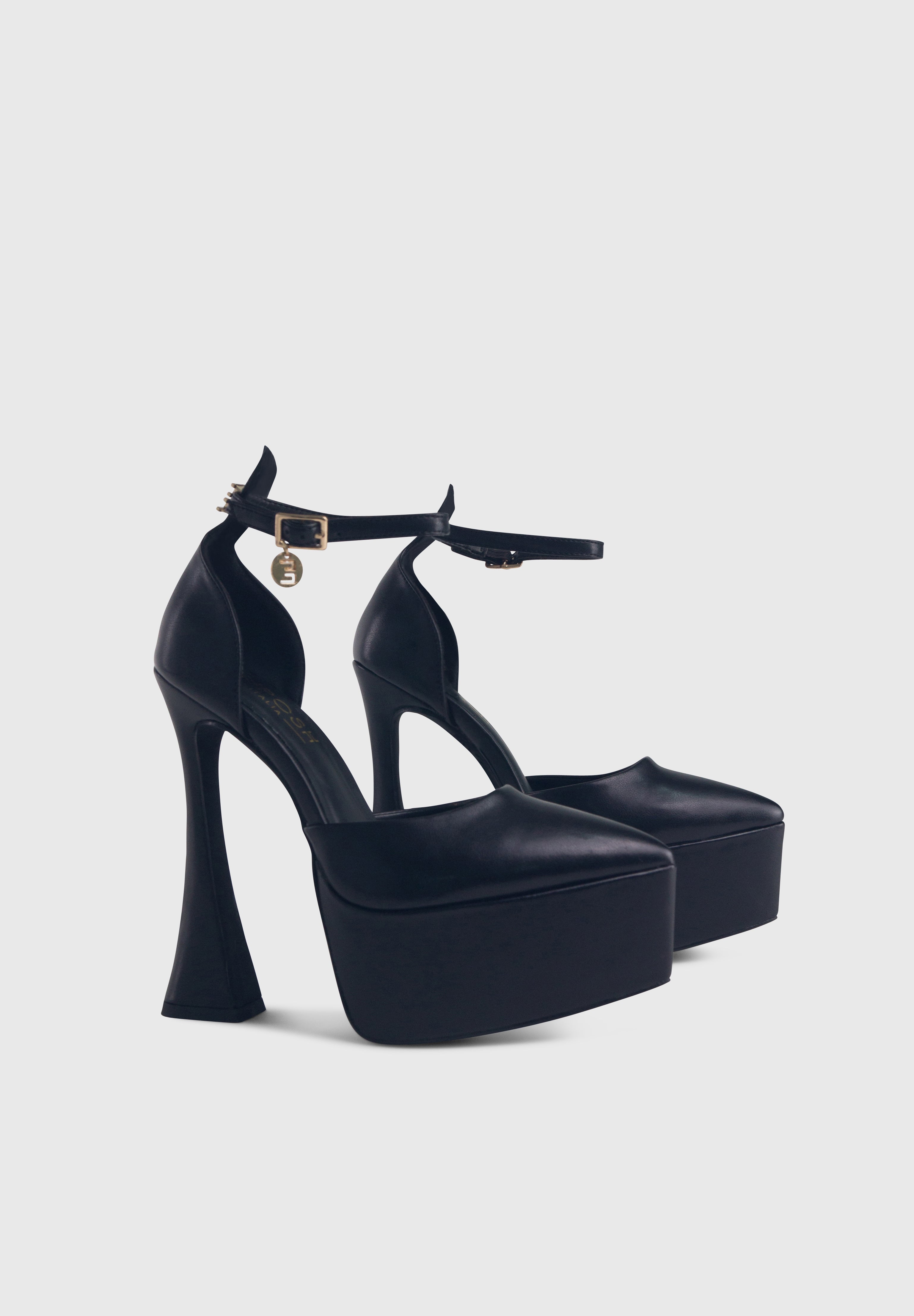 La punta affusolata aggiunge un tocco di raffinatezza, mentre il plateau offre un comfort straordinario che vi permetterà di camminare con self-confidence per tutto il giorno. Il cinturino regolabile alla caviglia non solo assicura una vestibilità perfetta ma aggiunge un elemento di fascino e versatilità al vostro look.