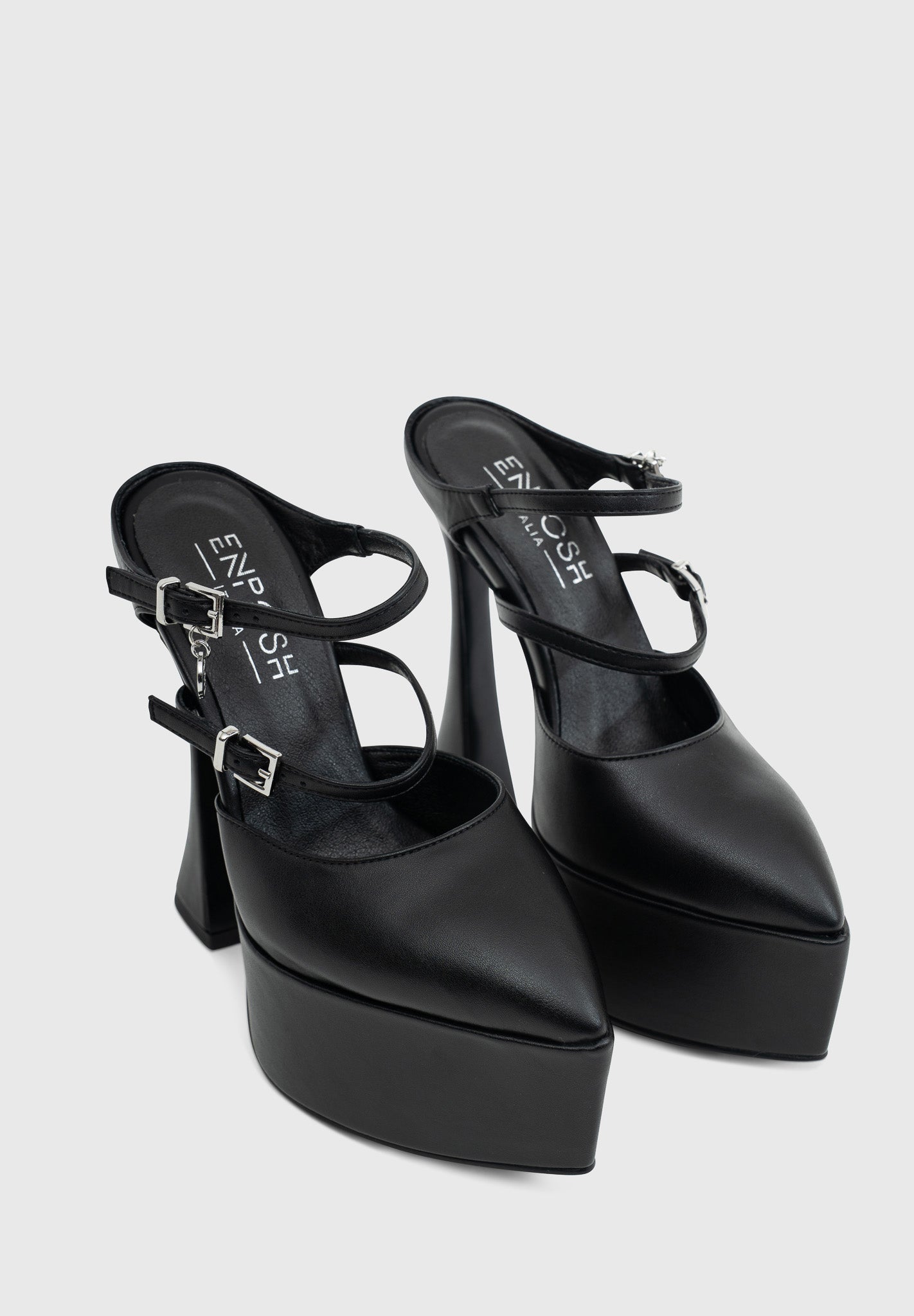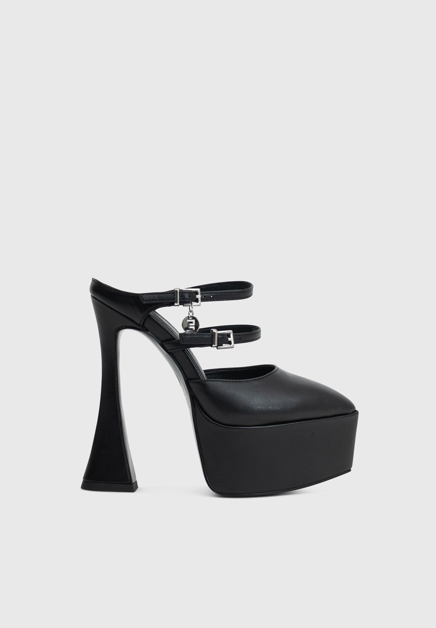 SILA Nero – Décolleté platform con doppio cinturino e tacco a clessidra